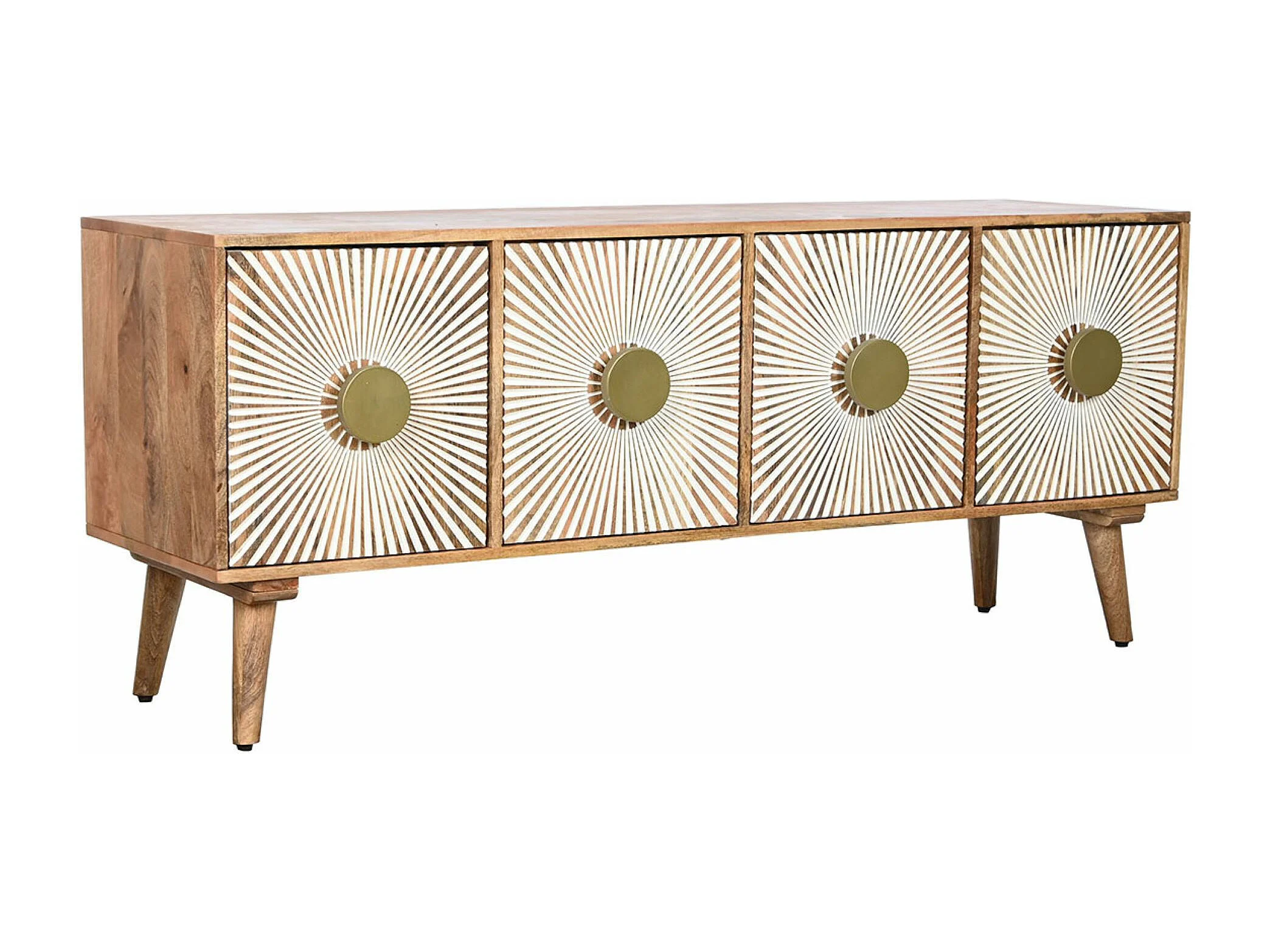Meuble TV en bois de manguier coloris naturel, blanc - longueur 145 x profondeur 40 x Hauteur 60 cm