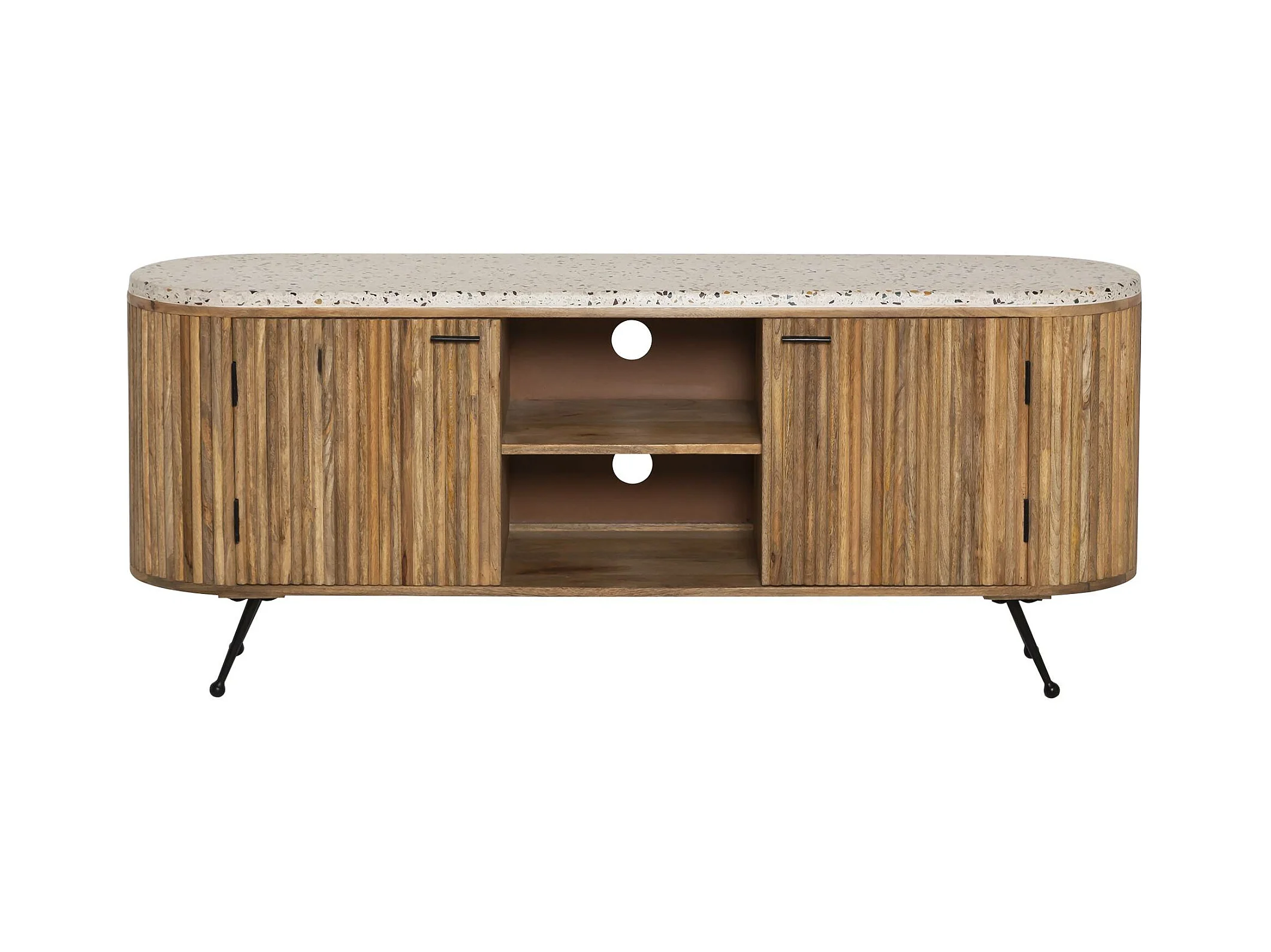 Meuble TV en bois de manguier et terrazzo Ambrine