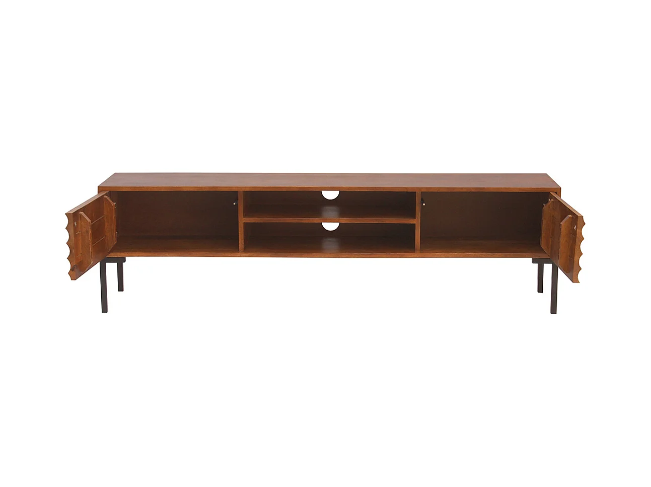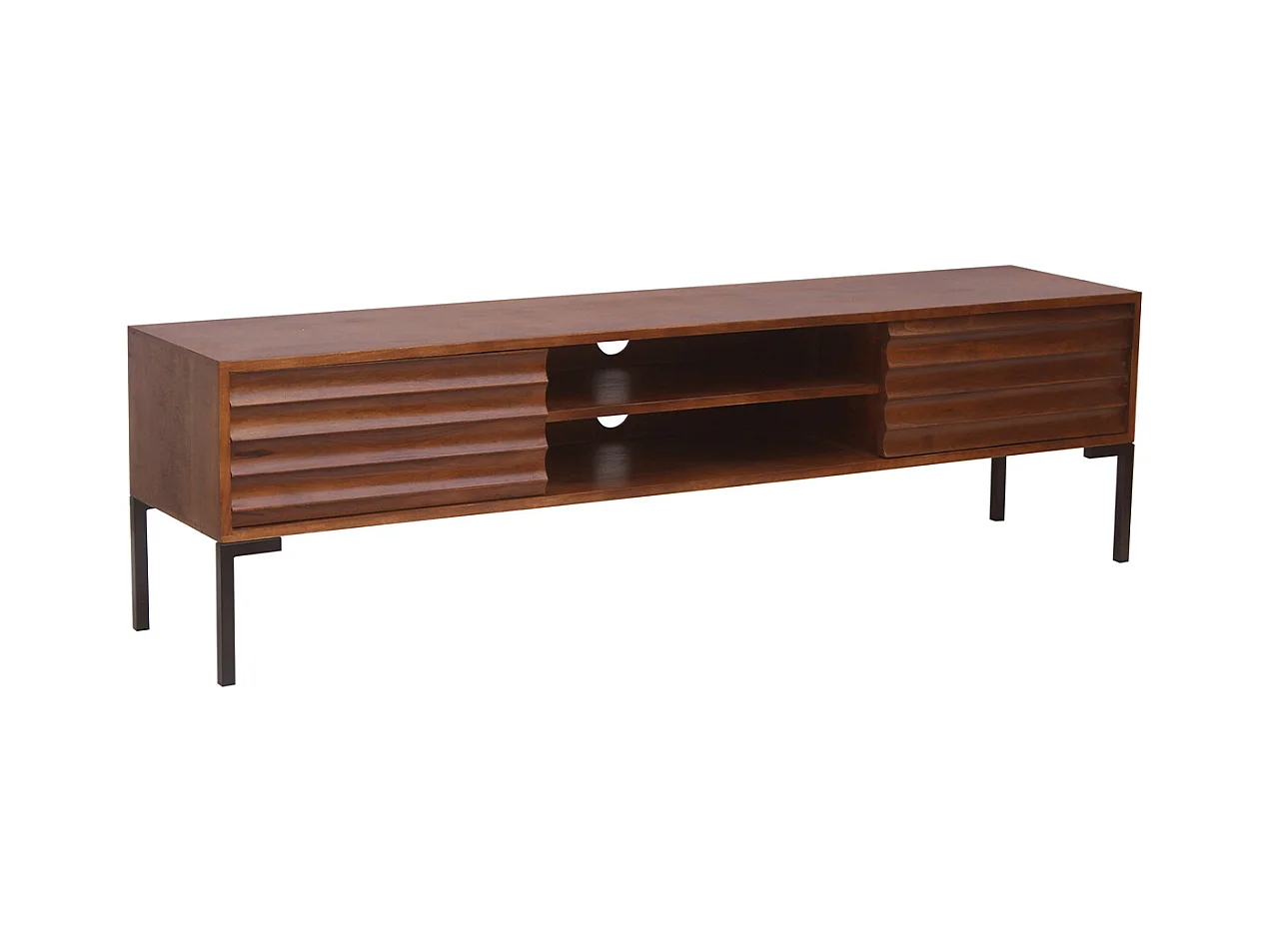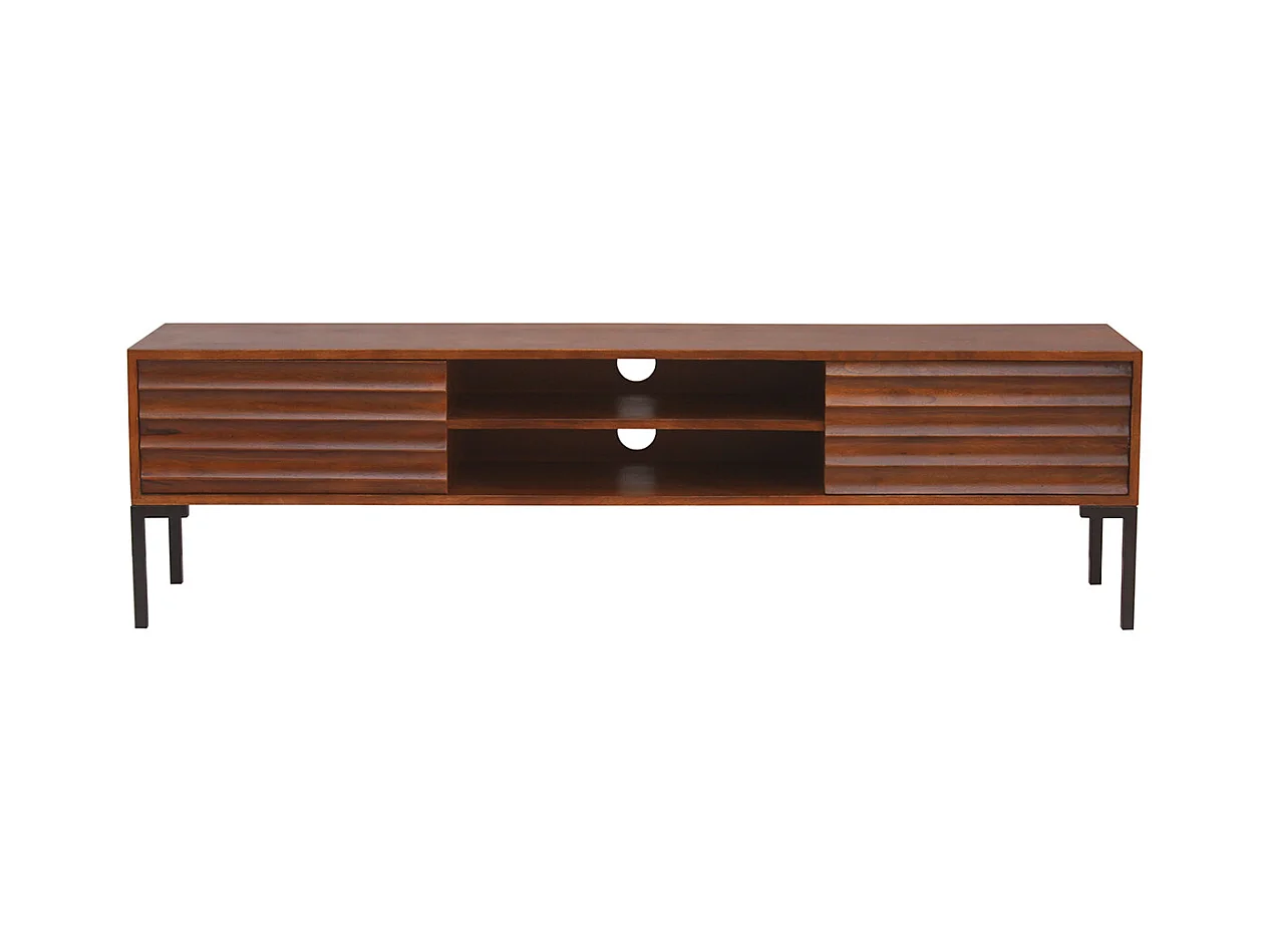 Meuble TV en bois foncé manguier massif et métal noir 2 portes L160 cm ONDA