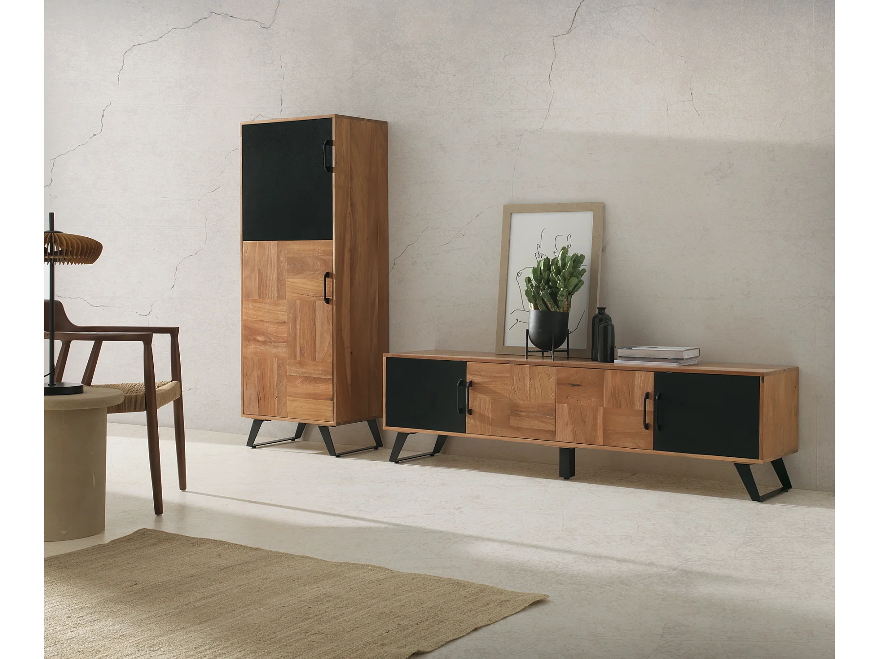 Meuble TV en bois massif d'acacia recyclé