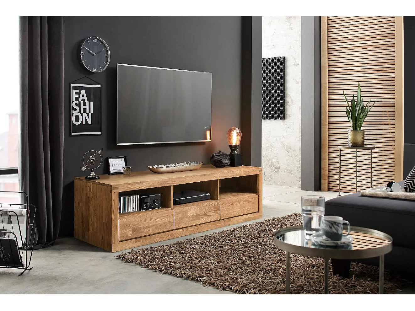 Meuble TV en chêne massif 3 tiroirs Mariza 175cm