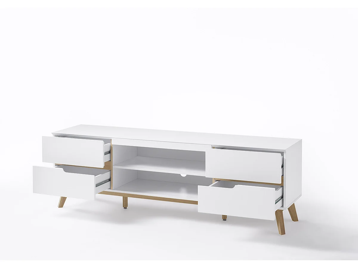 Meuble TV en laqué blanc mat avec piètement en chêne - L169 x H56 x P40 cm