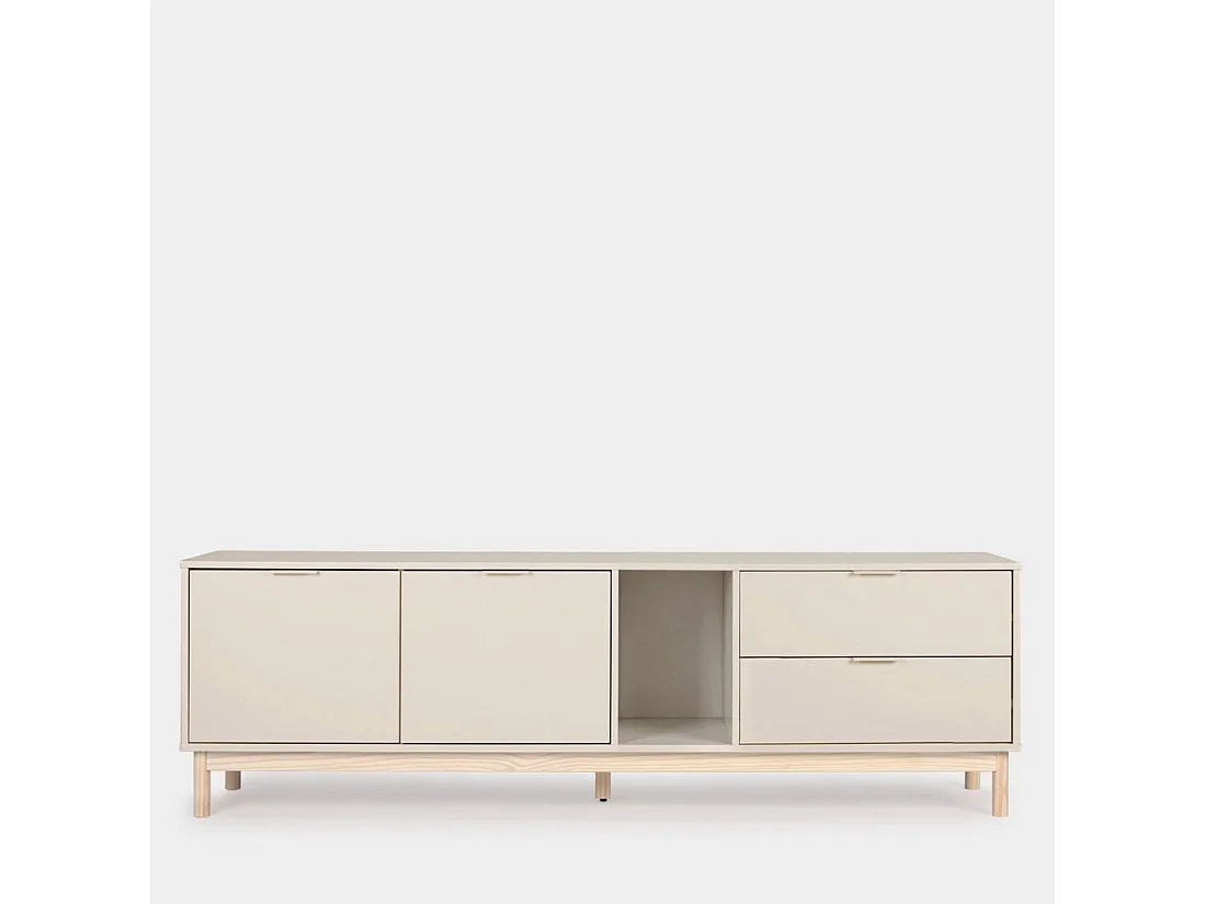 Meuble TV en laqué gris perle 180x54 cm-Elian