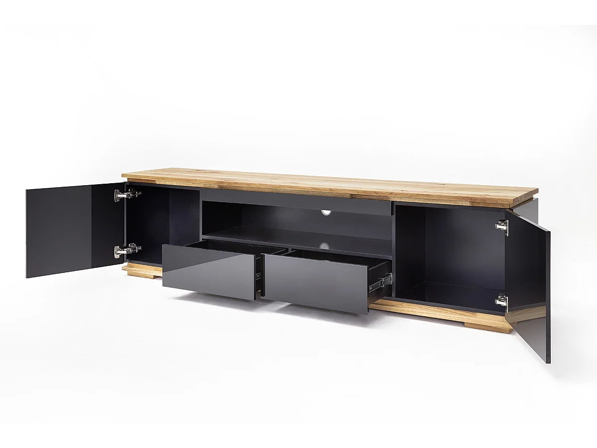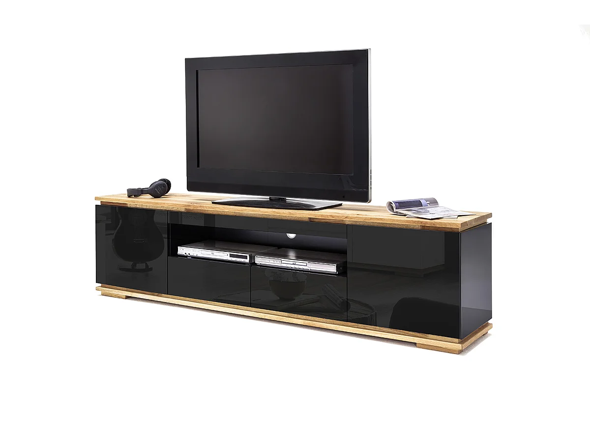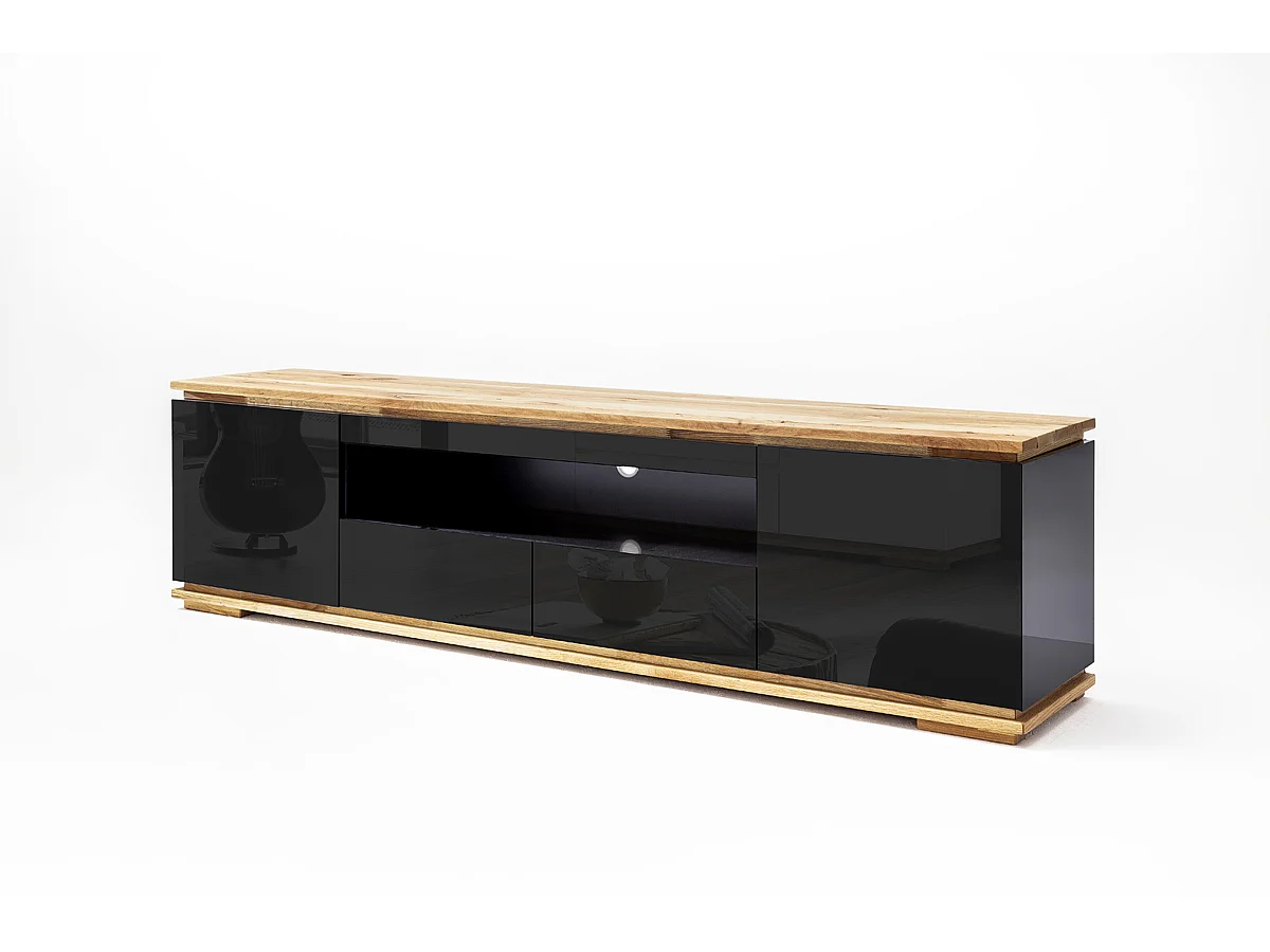 Meuble TV en laqué noir brillant - L202 x H54 x P40 cm