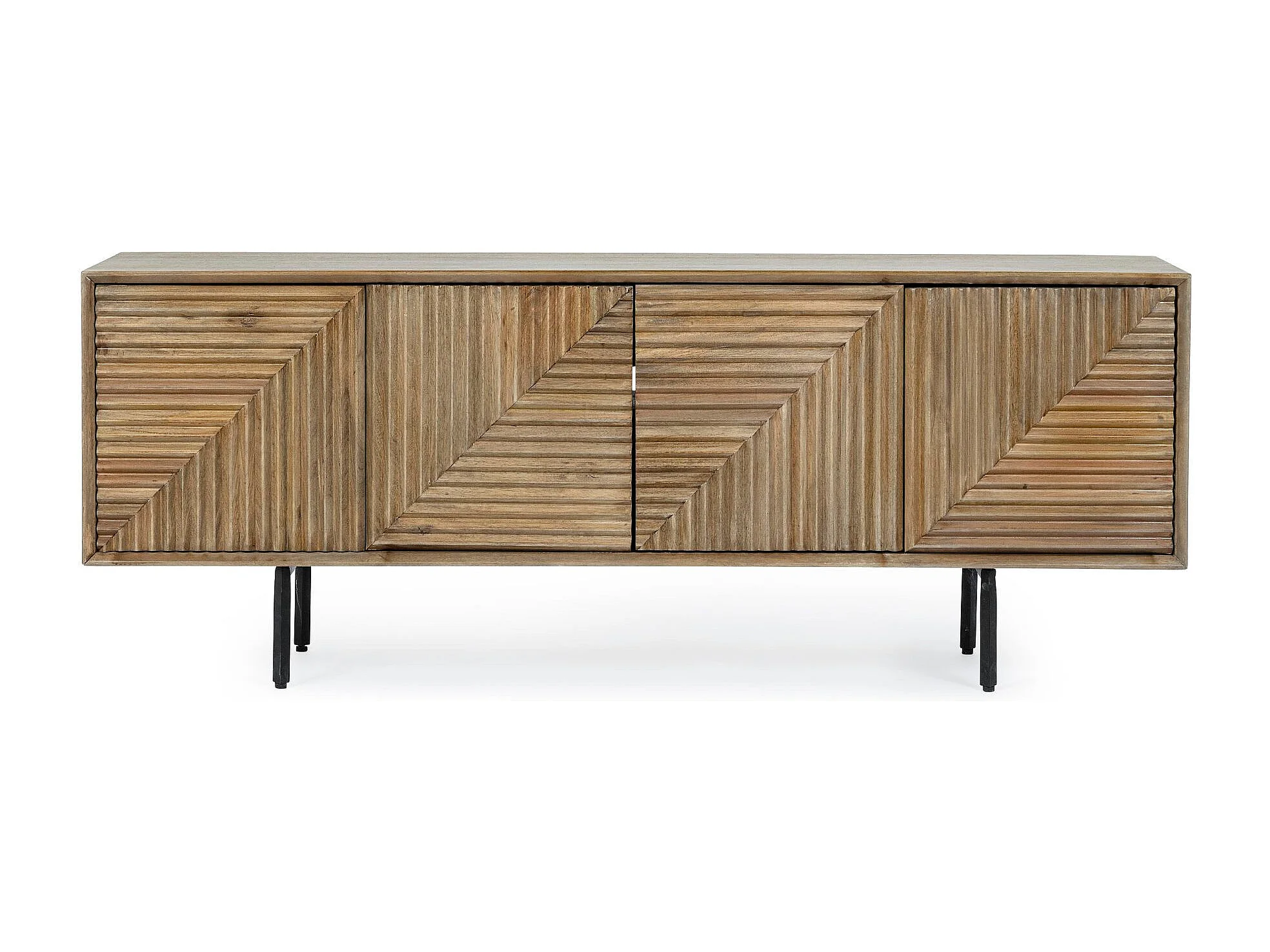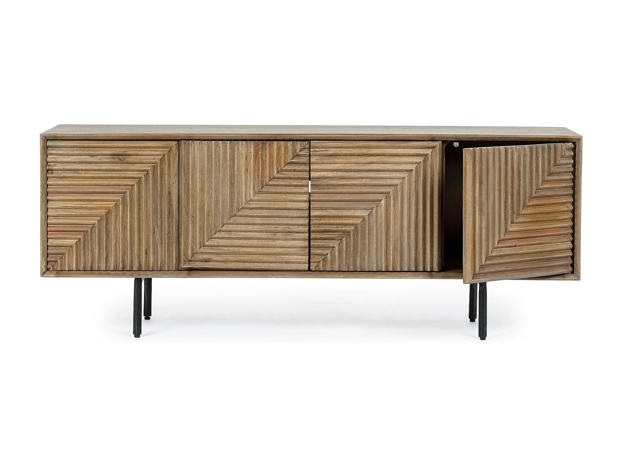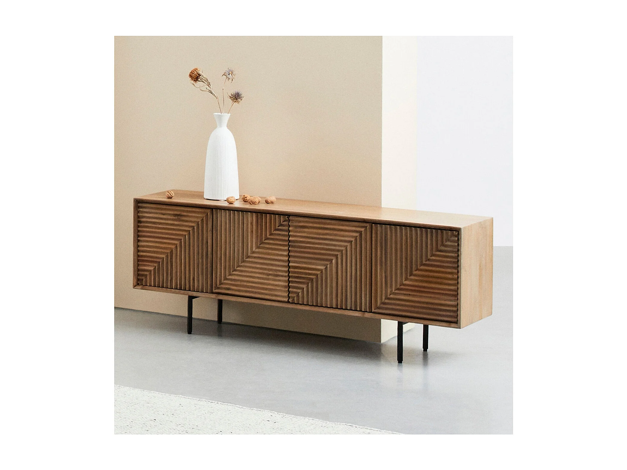 Meuble TV en manguier 4 portes et pieds métal noir L140 - MANAUS