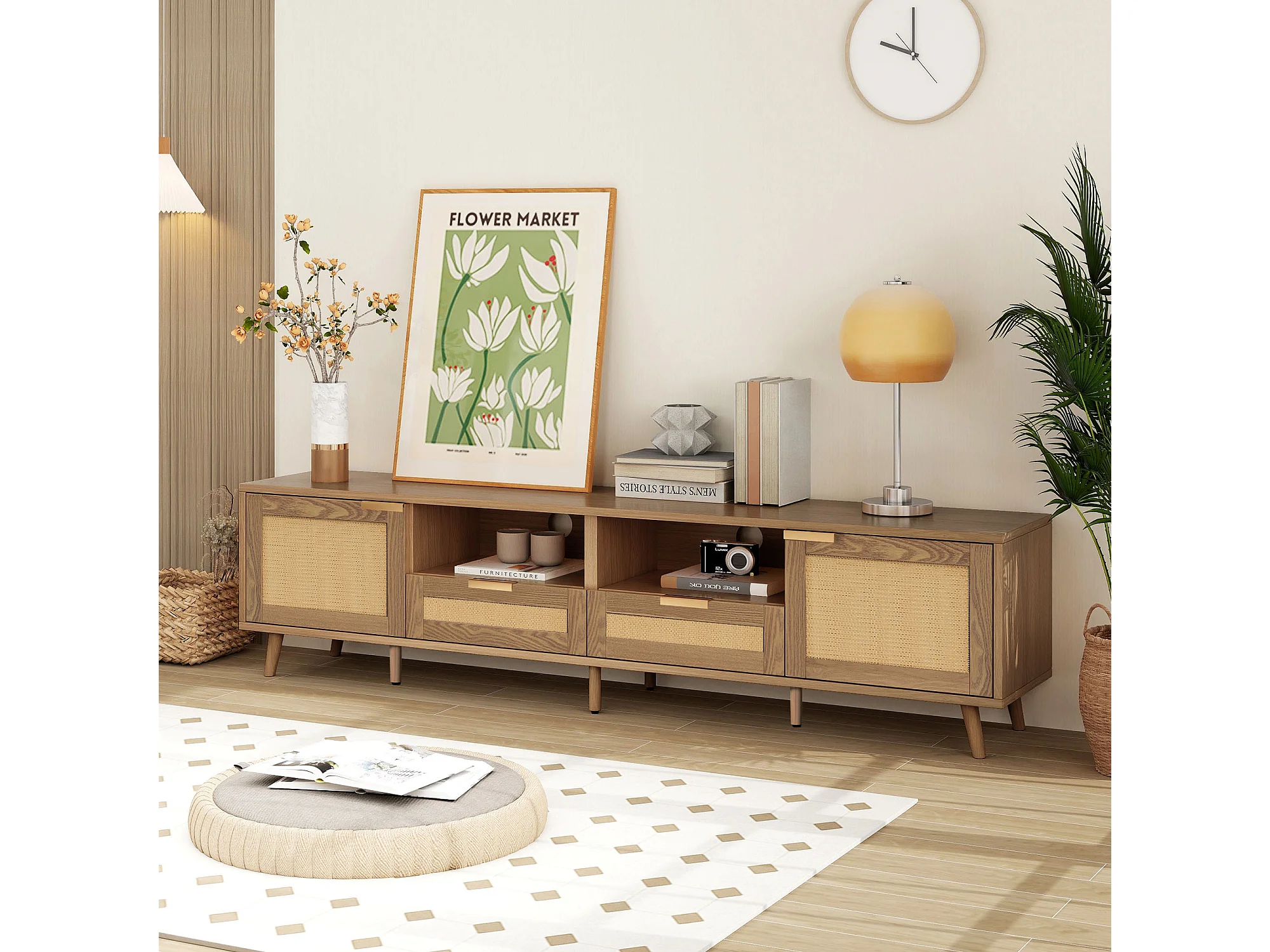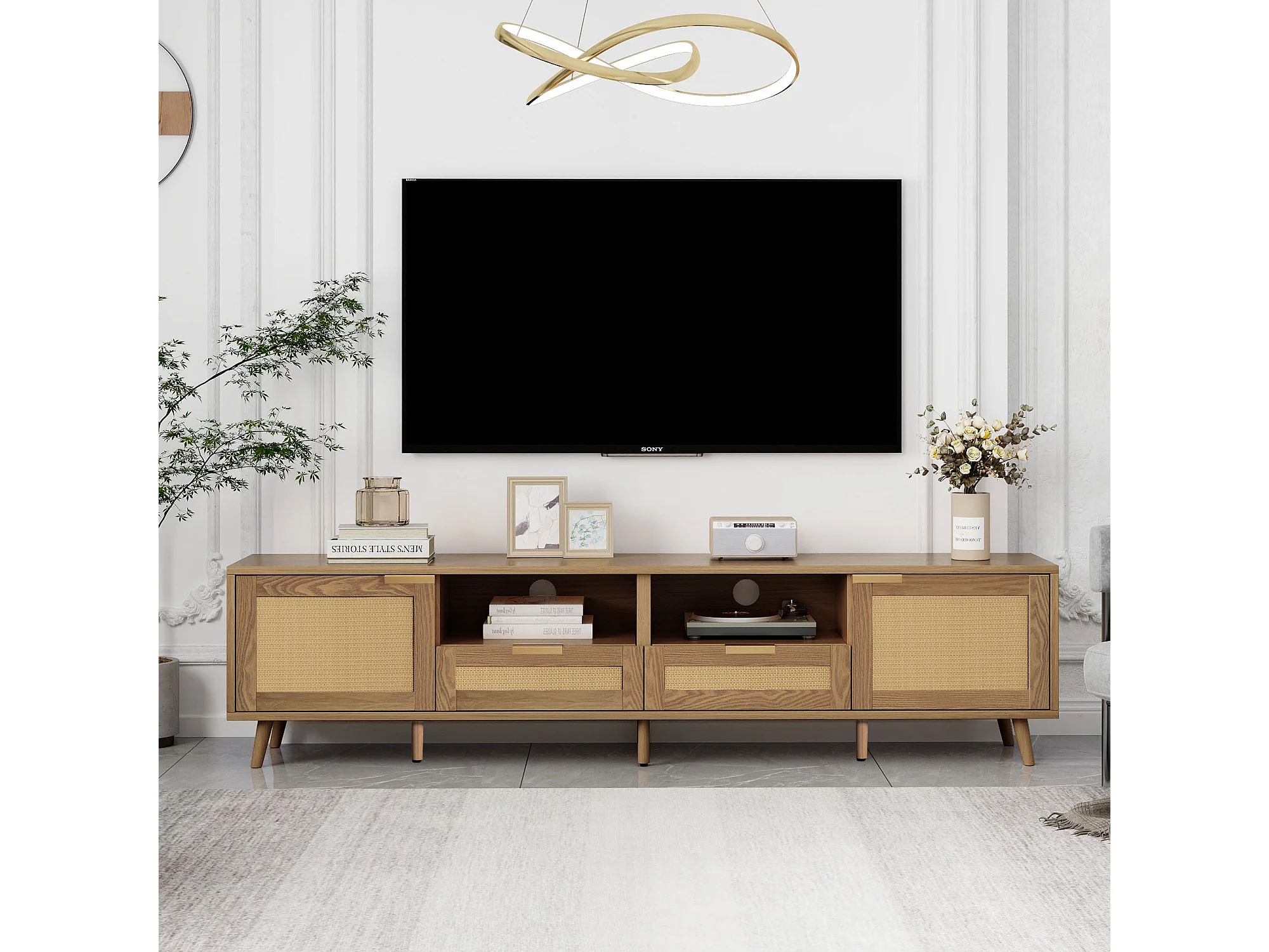 Meuble TV en rotin tressé pieds en bois massif 200*37*49cm TORQEOLS