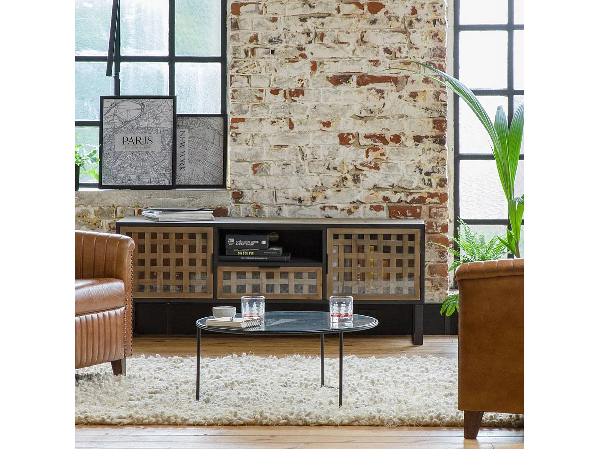 Meuble TV en sapin et métal noir Elise