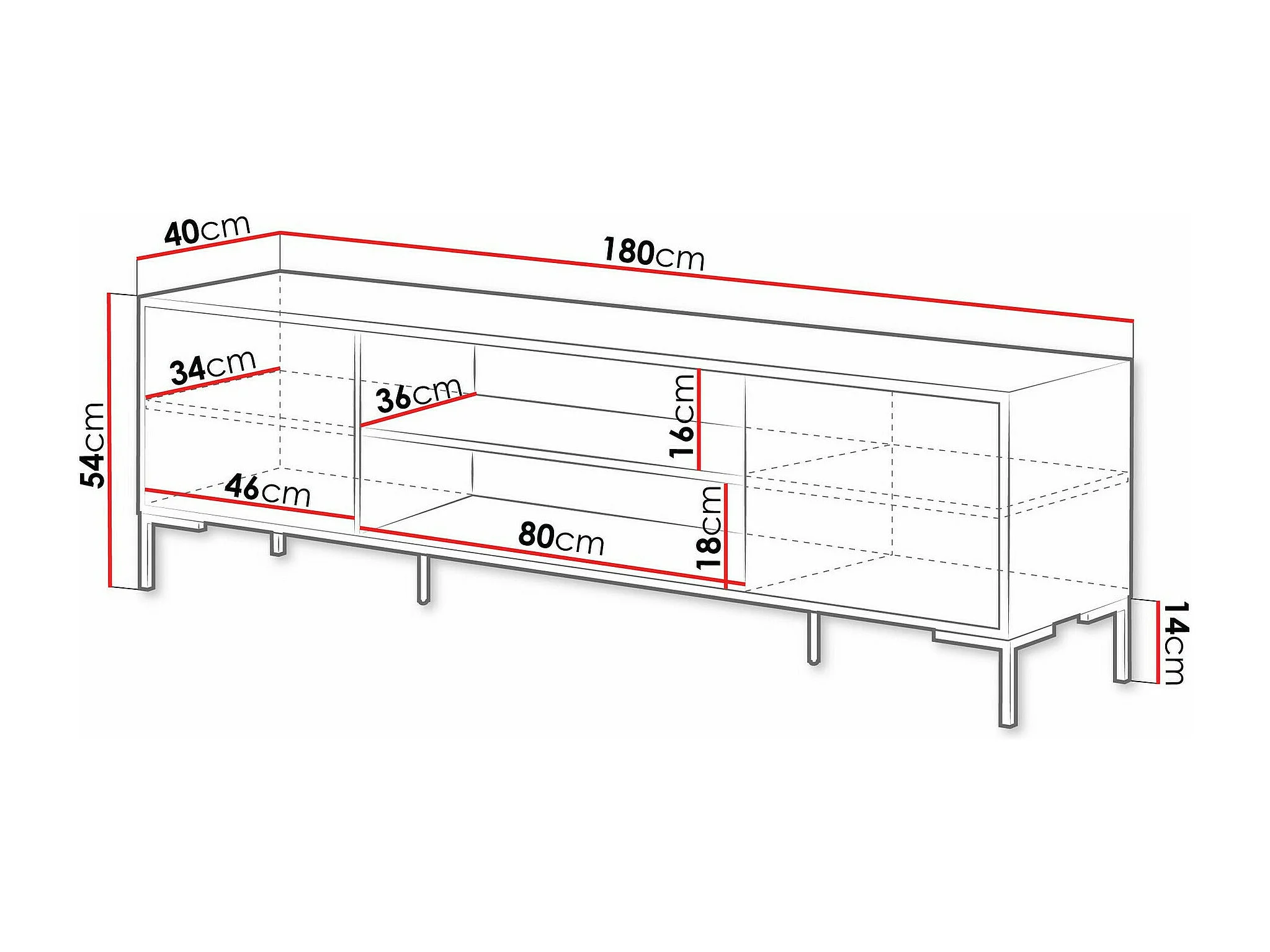 Meuble TV Etrfelu 105, Chêne Artisan|Noir, 180x54x40cm