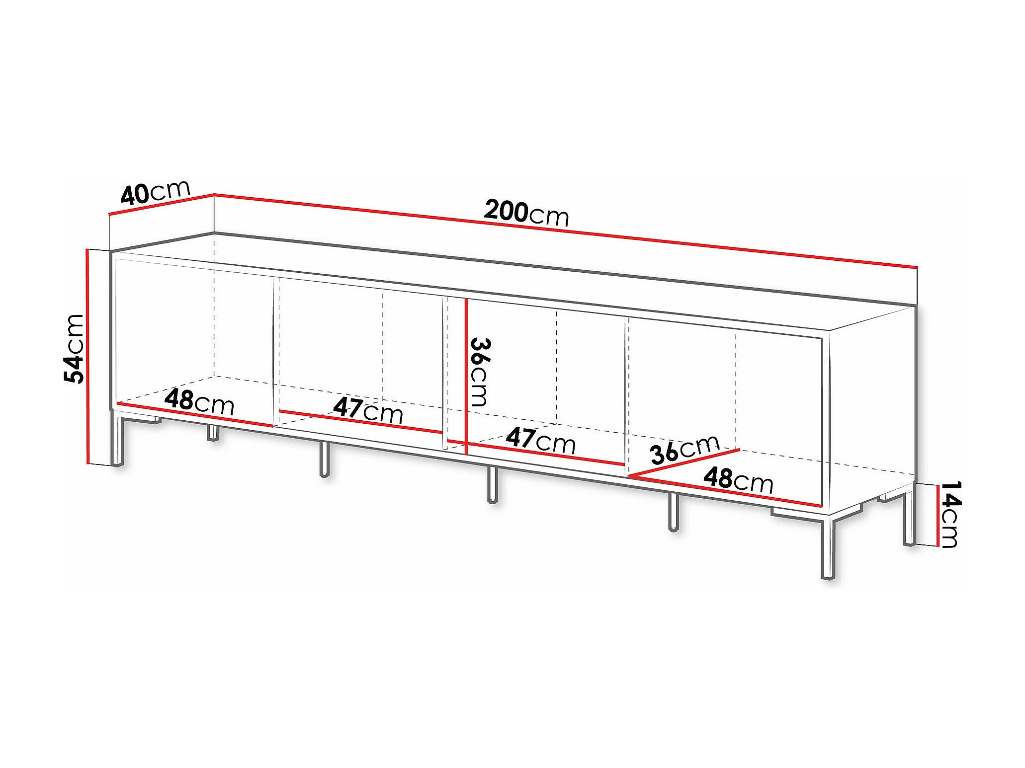 Meuble TV Etrfelu 106, Chêne Artisan|Noir, 200x54x40cm