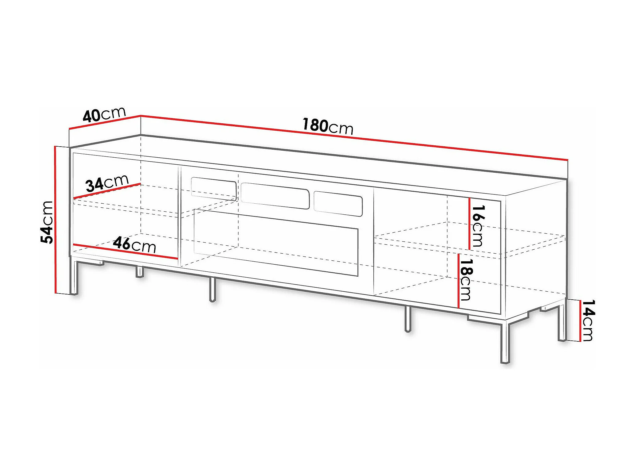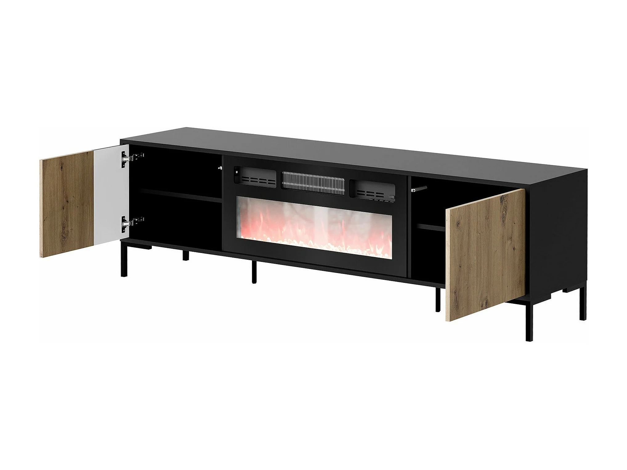Meuble TV Etrfelu 109, Chêne Artisan|Noir, 180x54x40cm