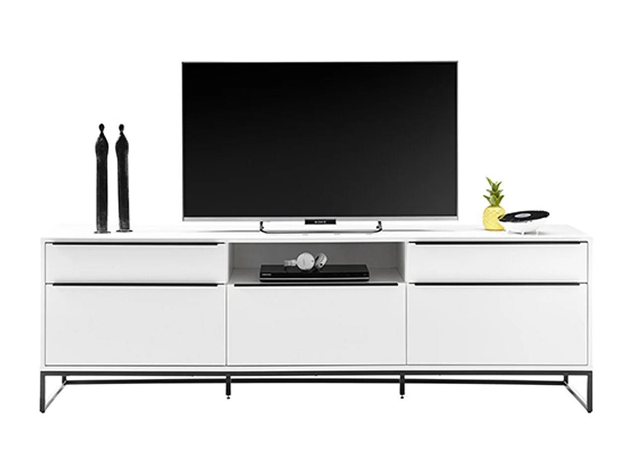Meuble TV finition laquée blanc mat - Longueur 215 x Hauteur 69 x Profondeur 40 cm
