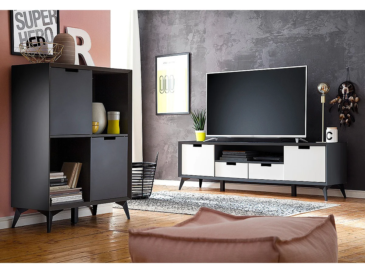 Meuble TV finition laquée gris mat - Longueur 180 x Hauteur 55 x Profondeur 40 cm