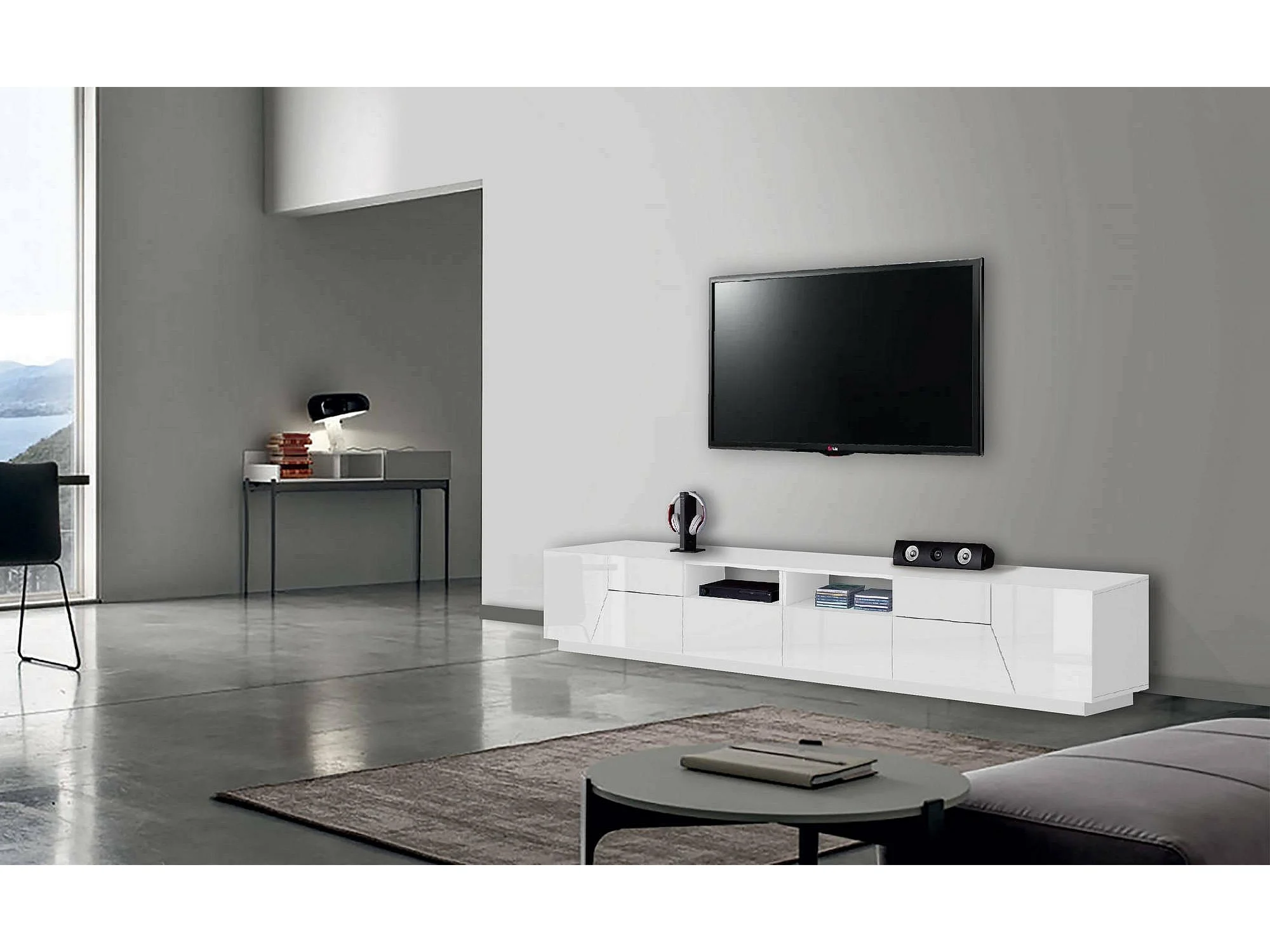 Meuble TV Gregorio, Buffet bas de salon avec 4 portes, Base pour meuble TV, 100% Made in Italy, 260x43h46 cm, Blanc brillant