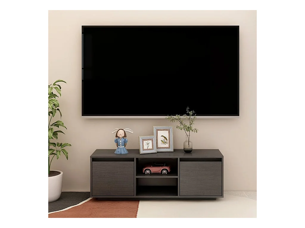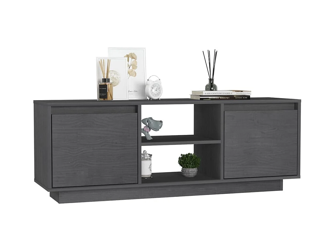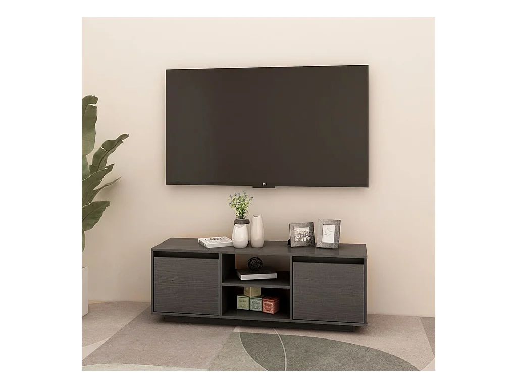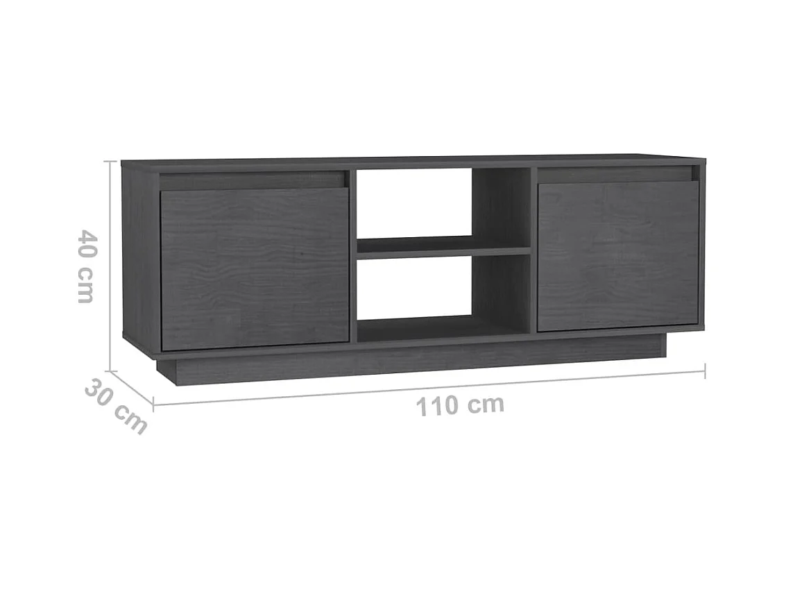 Meuble TV Gris 110x30x40 cm Bois de pin massif BE19017