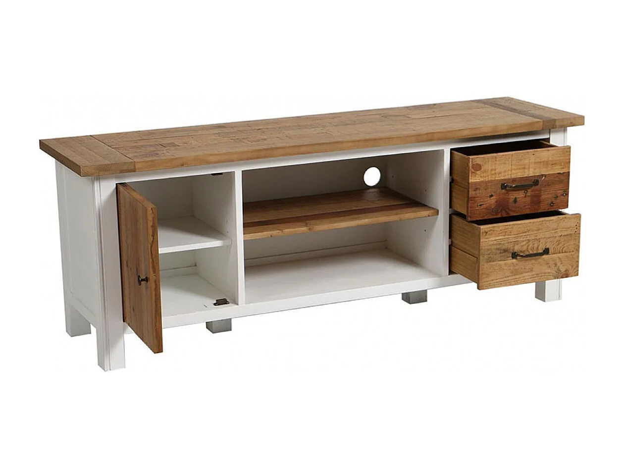 Meuble tv avec rangements Bois Blanc - Rivages Interior's