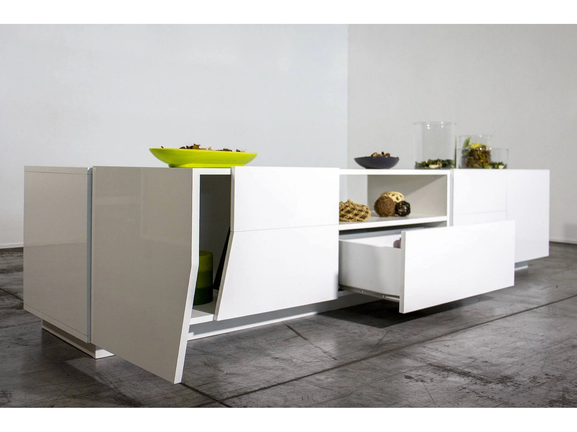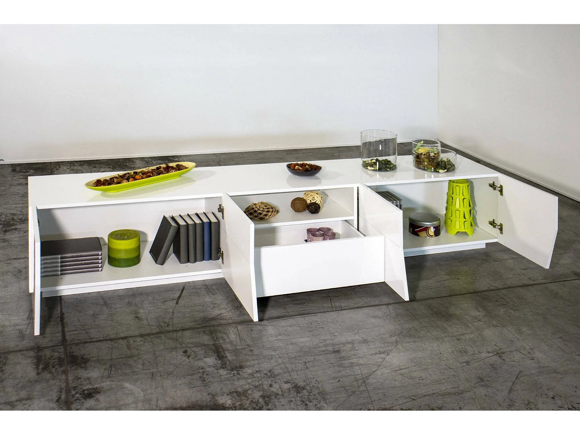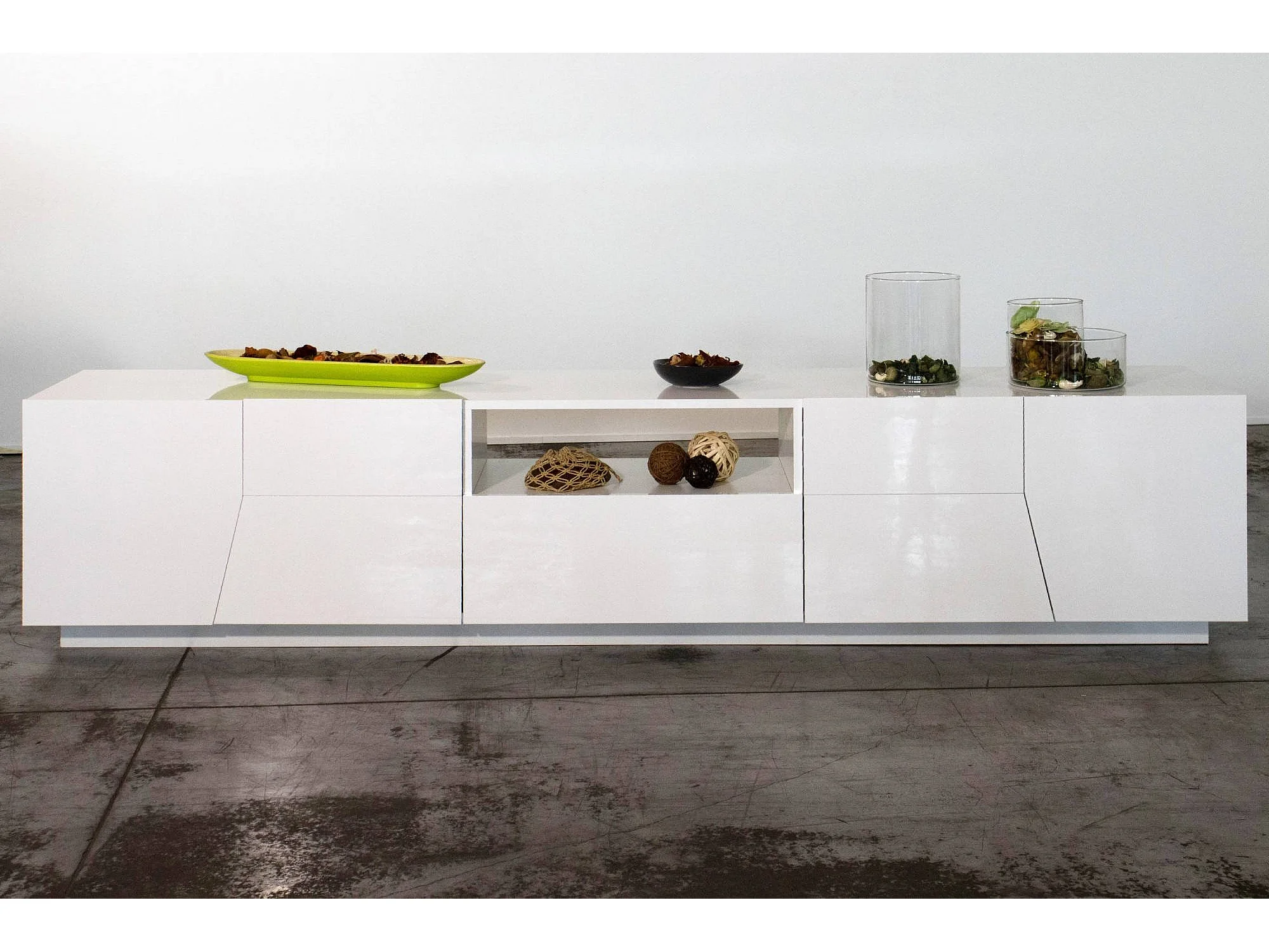 Meuble TV Jacopo, Buffet bas de salon, Base pour meuble TV, 100% Made in Italy, 220x43h46 cm, Blanc brillant