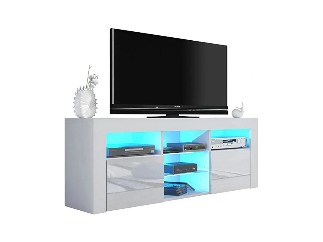 Meuble TV JIVE BLANC A LED 145 cm avec 2 portes laquées