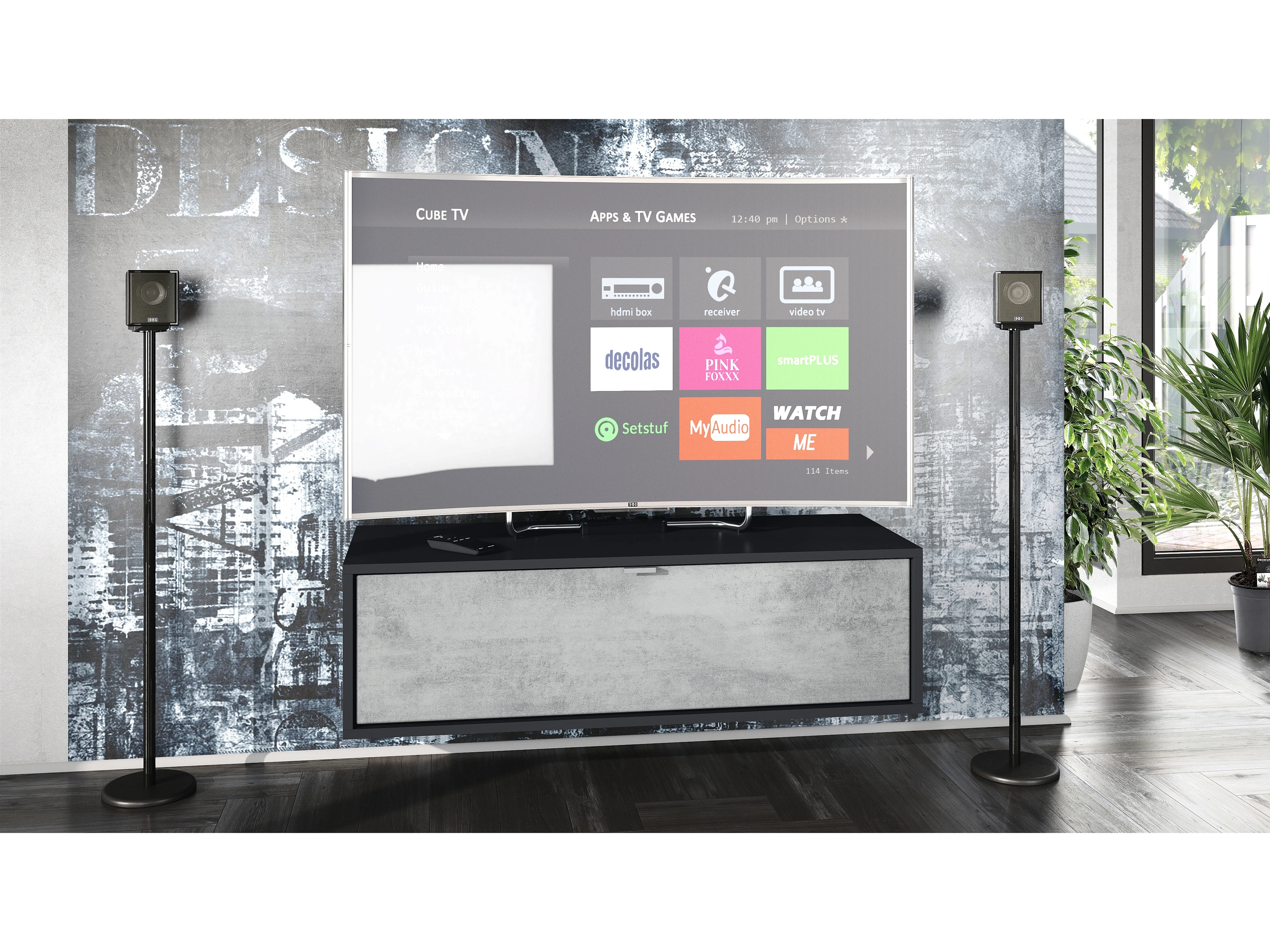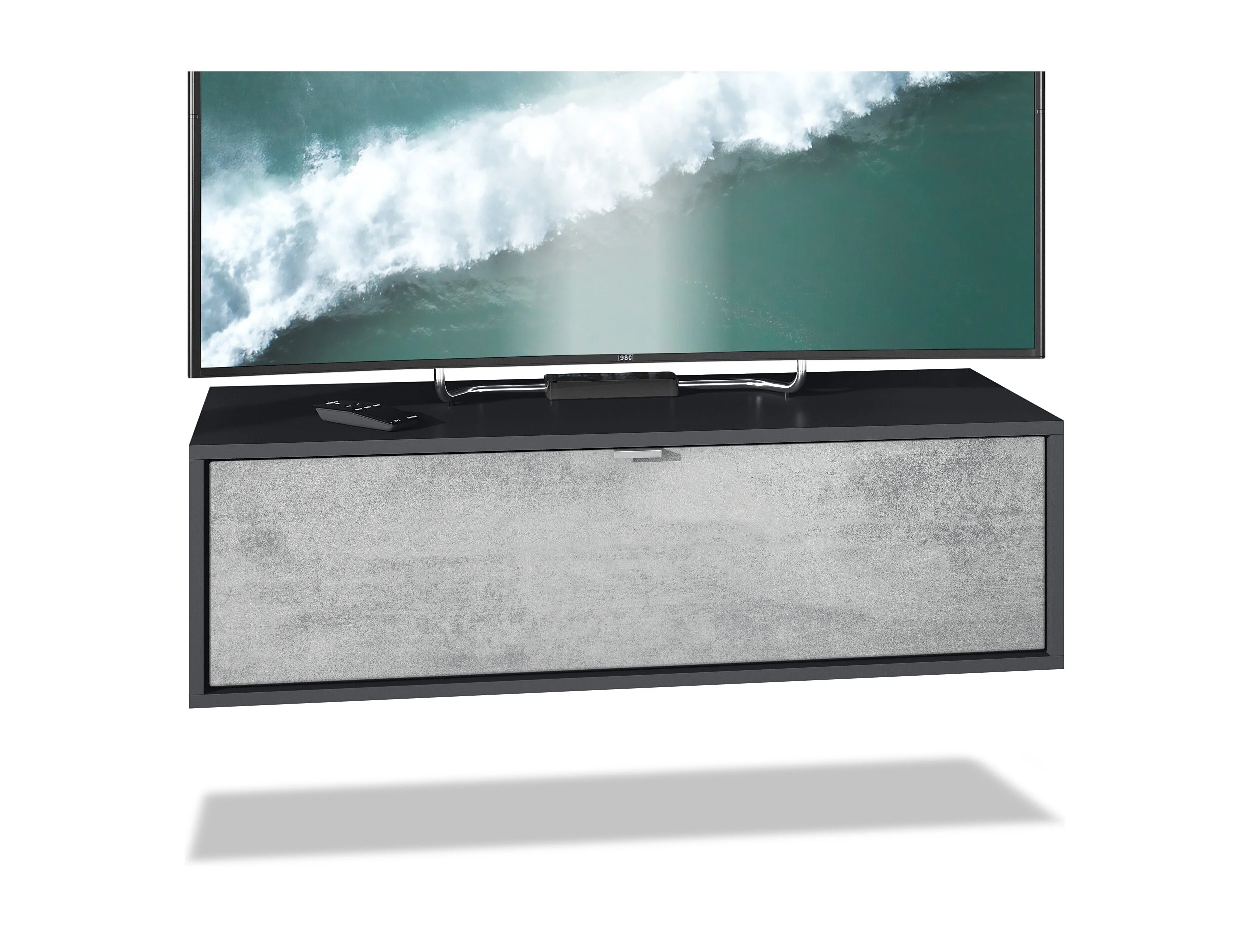 Meuble TV Lana 120 armoire murale lowboard 120 x 29 x 37 cm, caisson en Noir mat, façades en aspect béton oxyde | Grand choix de couleurs