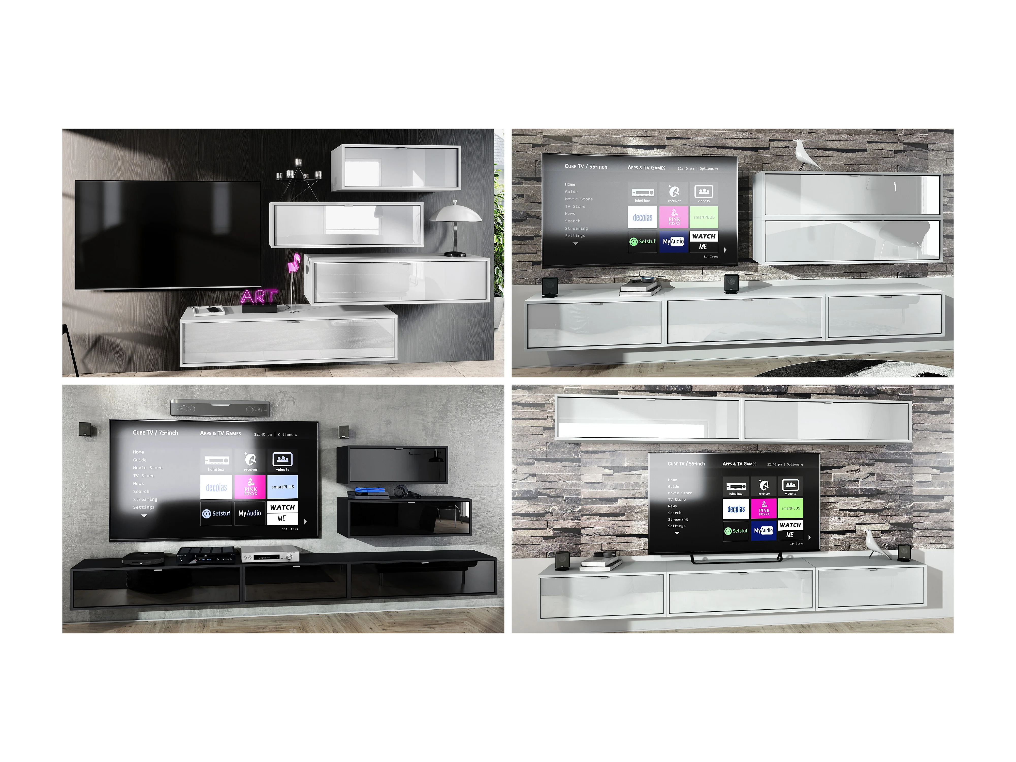 Meuble TV Lana 100 armoire murale lowboard 100 x 29 x 37 cm, caisson en Blanc mat, façades en Aspect Béton Oxyde | Grand choix de couleurs