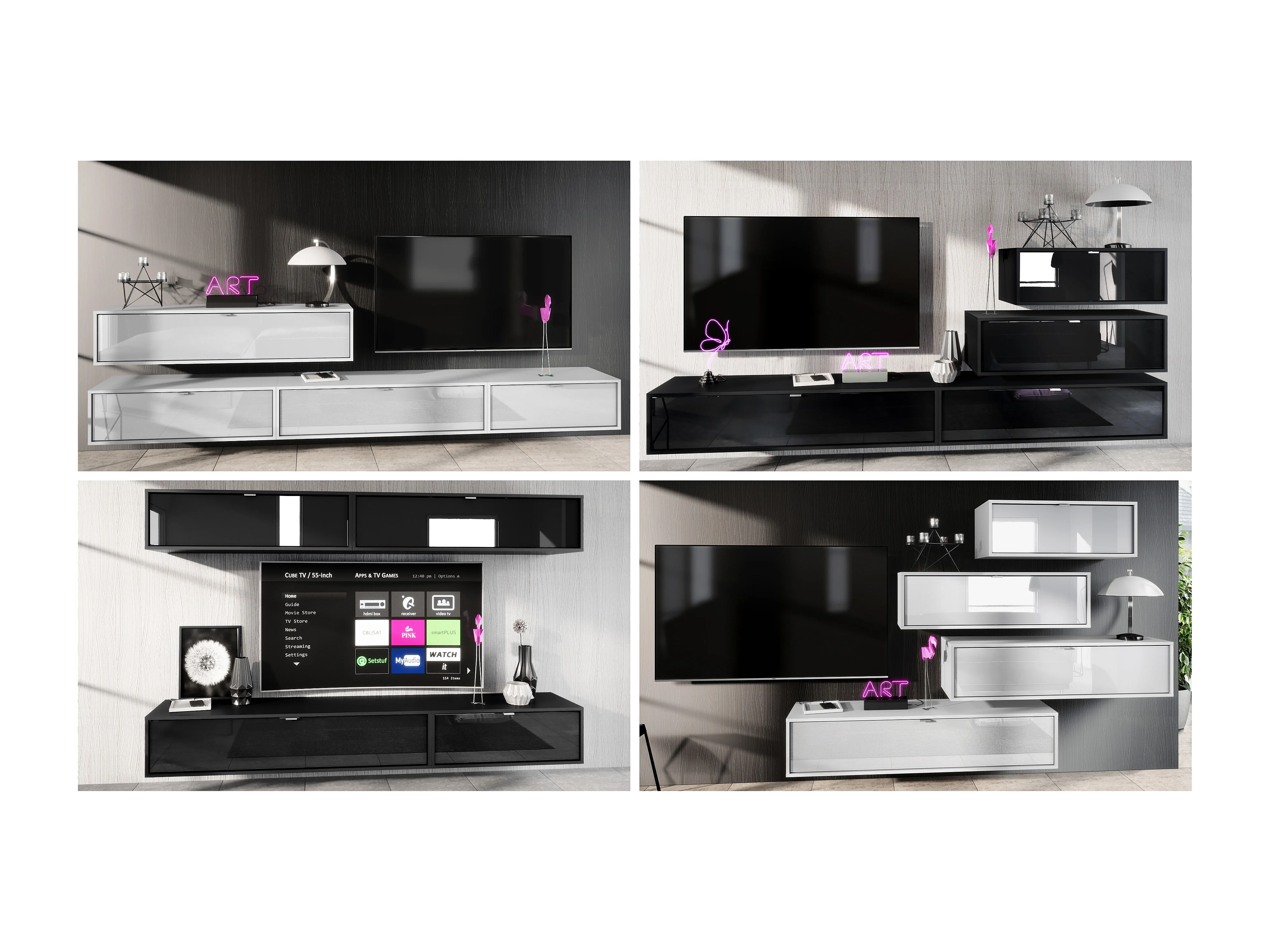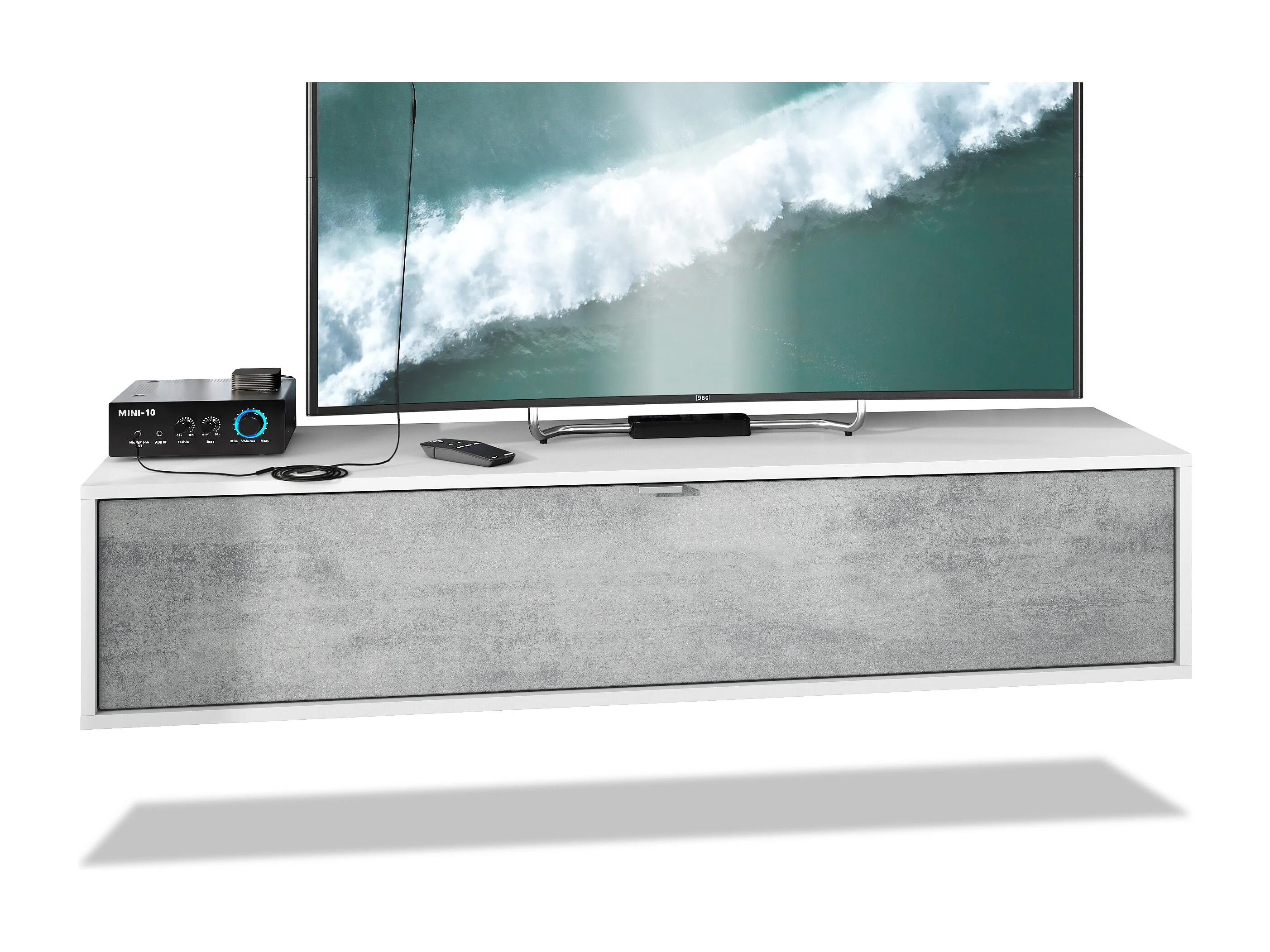 Meuble TV Lana 140 armoire murale lowboard 140 x 29 x 37 cm, caisson en blanc mat, façades en Aspect Béton Oxyde | Grand choix de couleurs