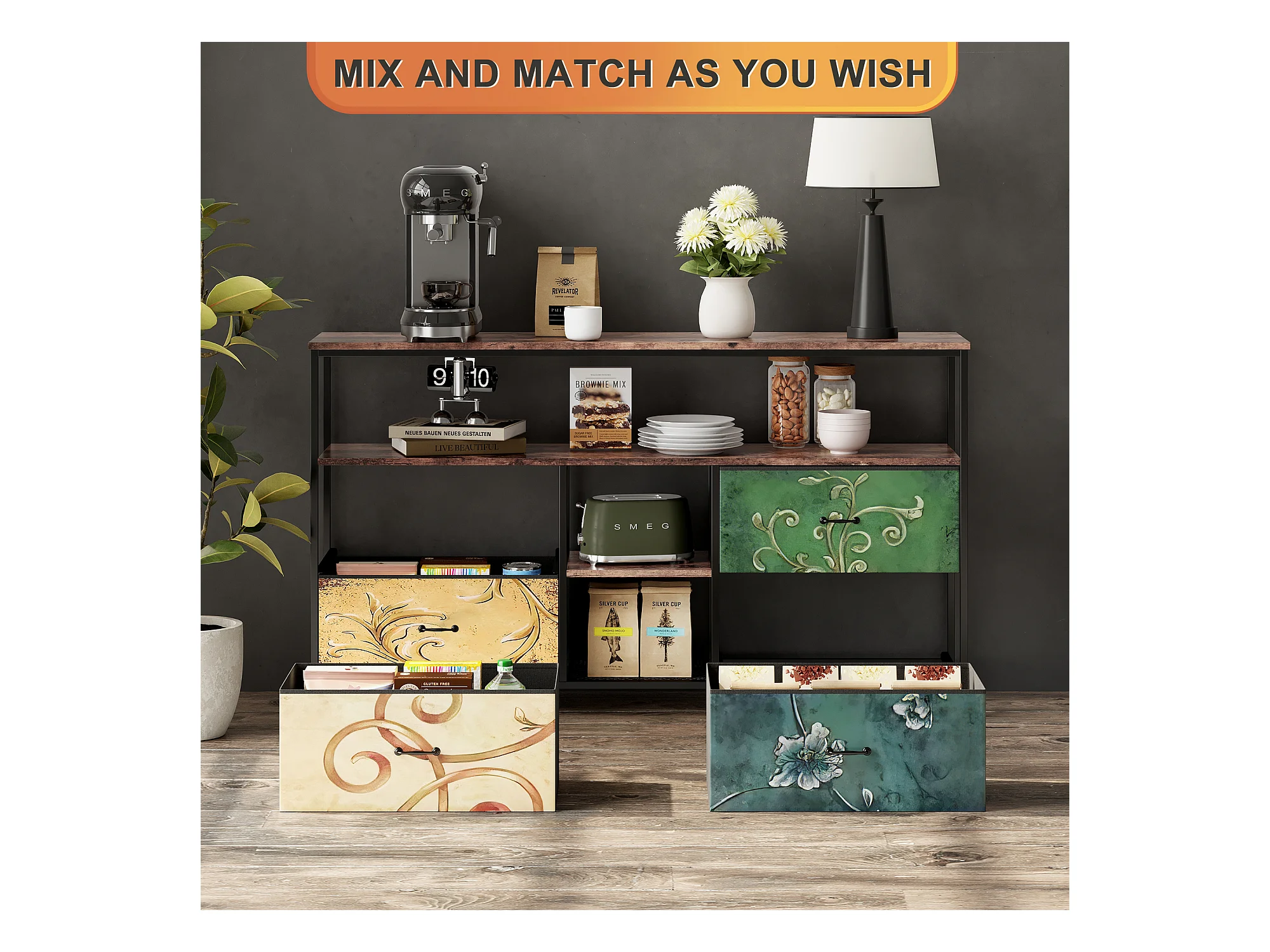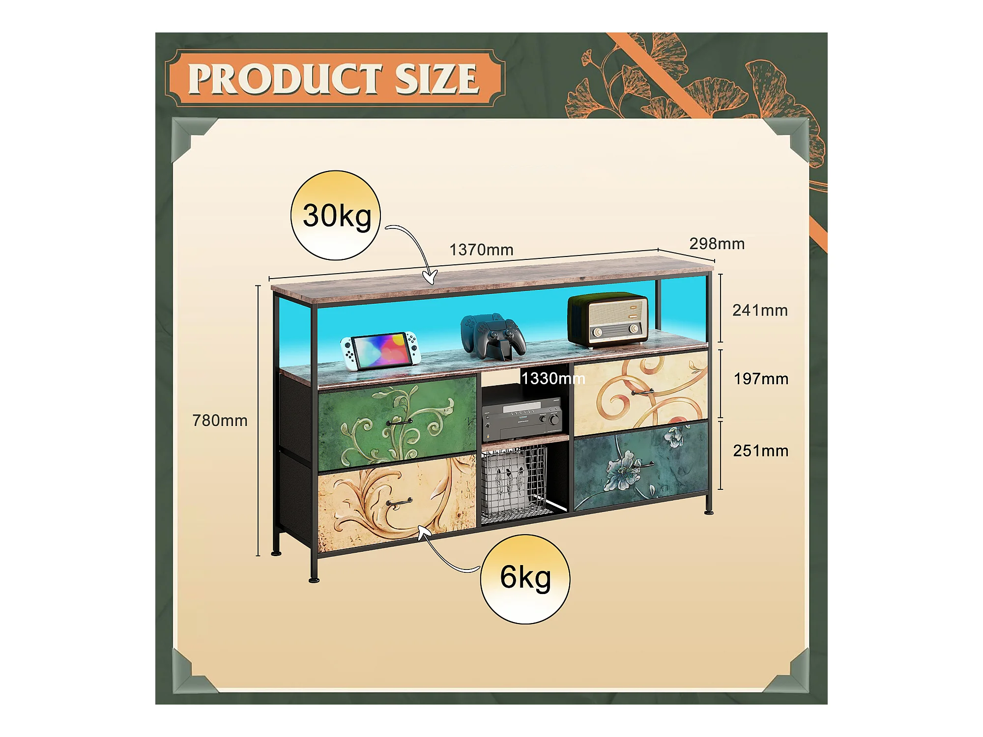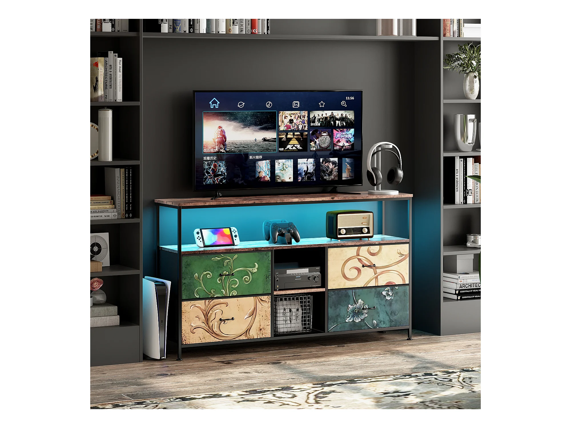 Meuble TV LED avec 4 Tiroirs, 137x30x78cm Banc TV Rétro Buffet, Tiroirs colorés