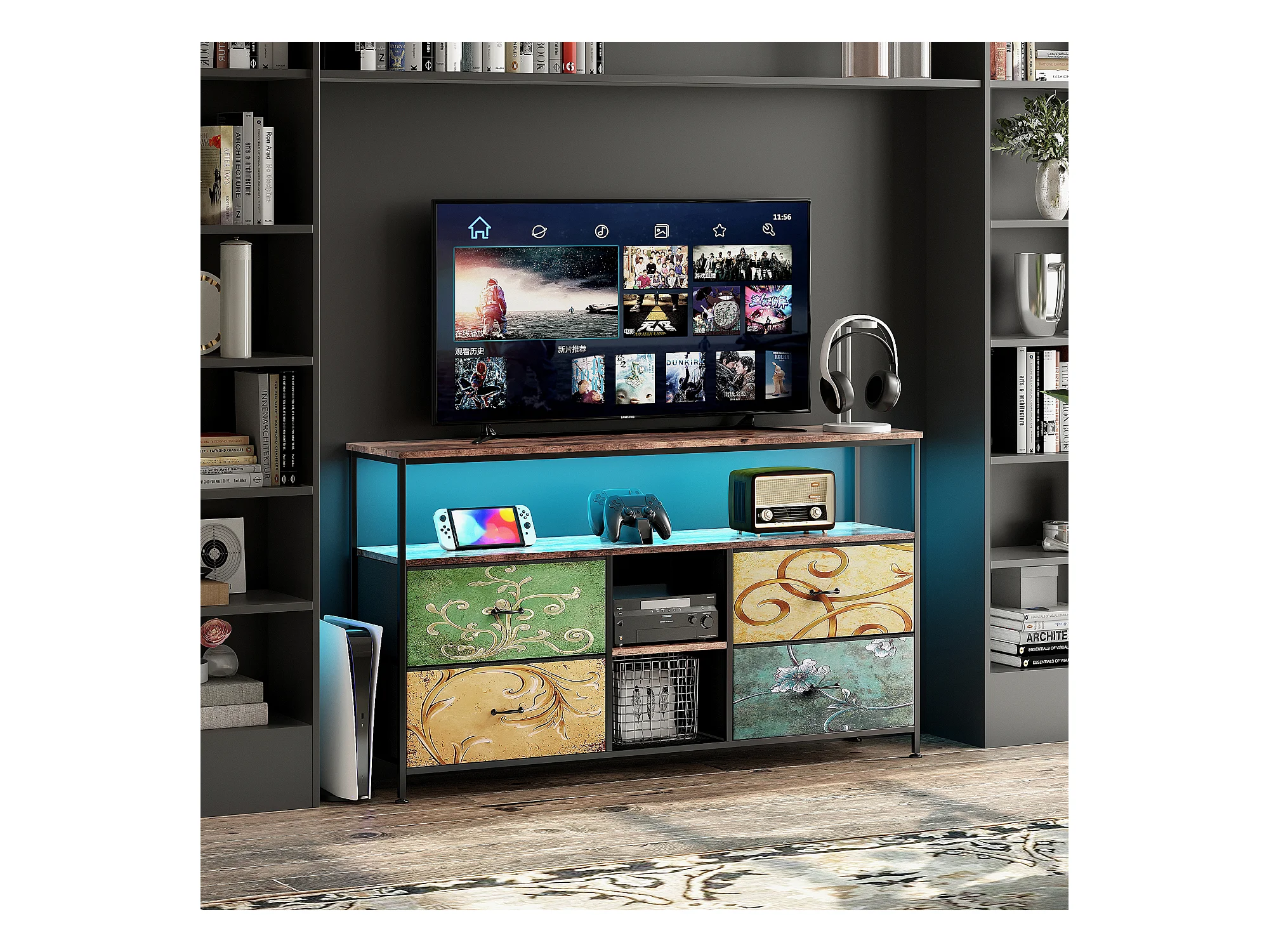 Meuble TV LED avec 4 Tiroirs, Petit Meuble Tele avec Rangement, Banc TV, Support Télé, Commode en Tissu pour Le Salon Chambre à Coucher Entrée Rustique, Colorés