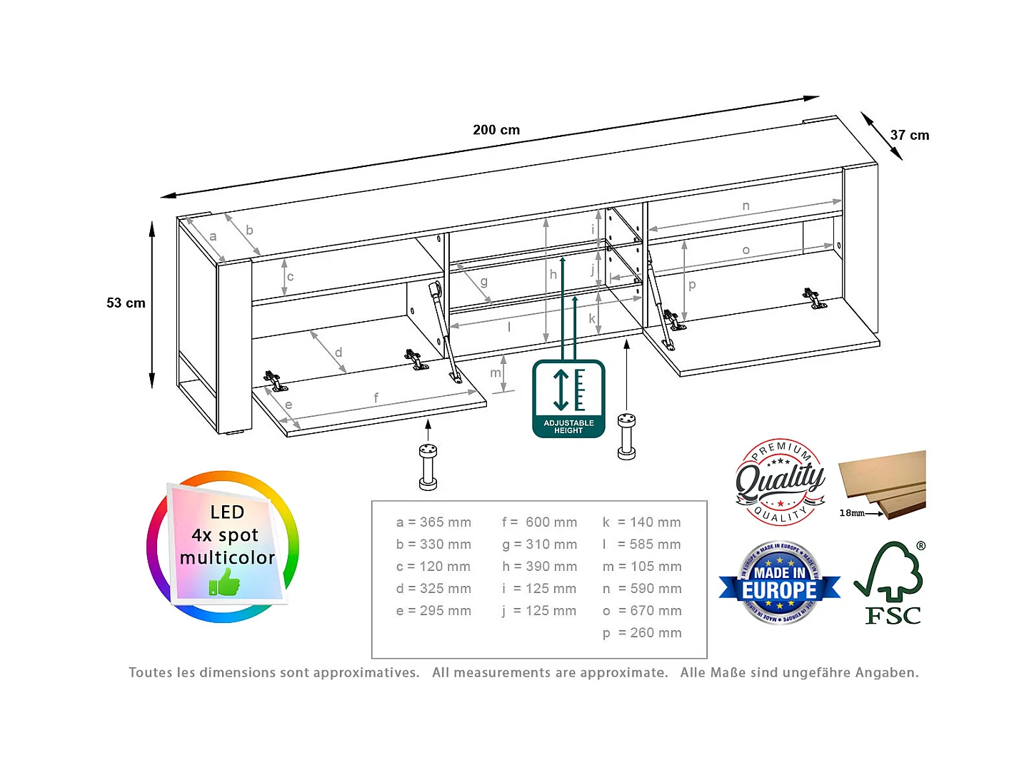 Meuble TV LOVY Cachemire Beige Gris 200 CM LED RGB - Style Glamour Industriel