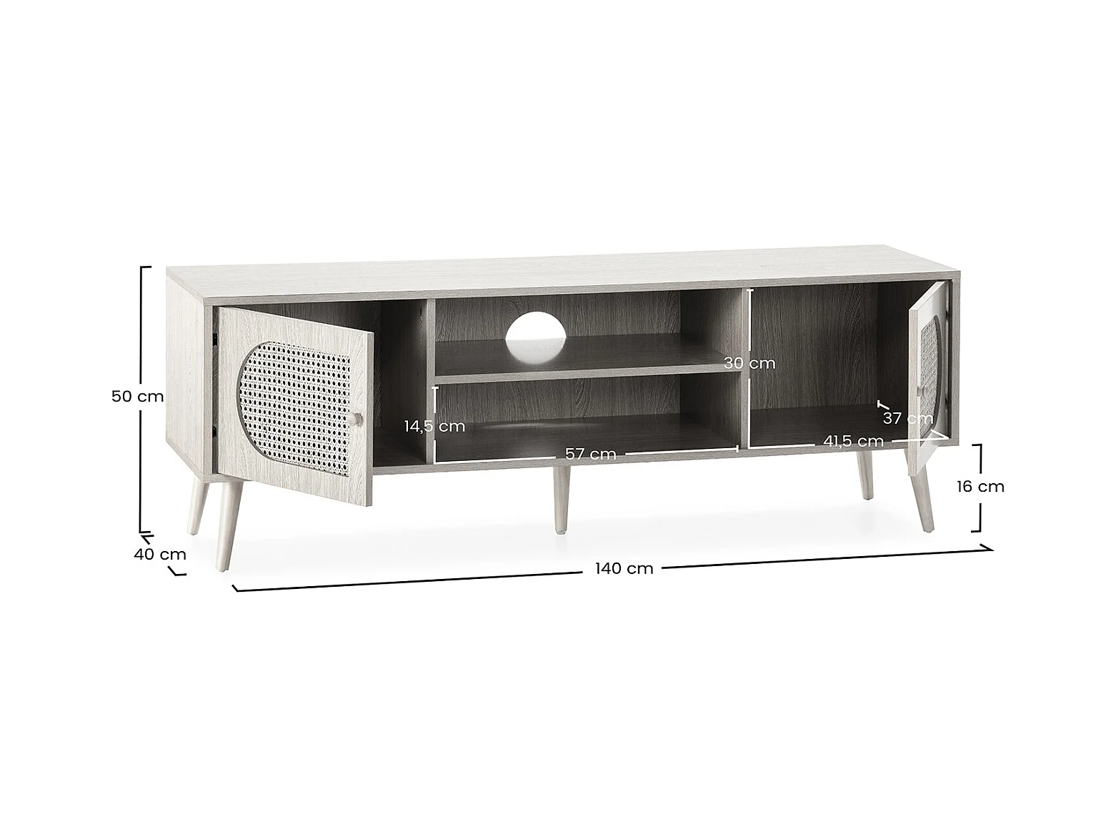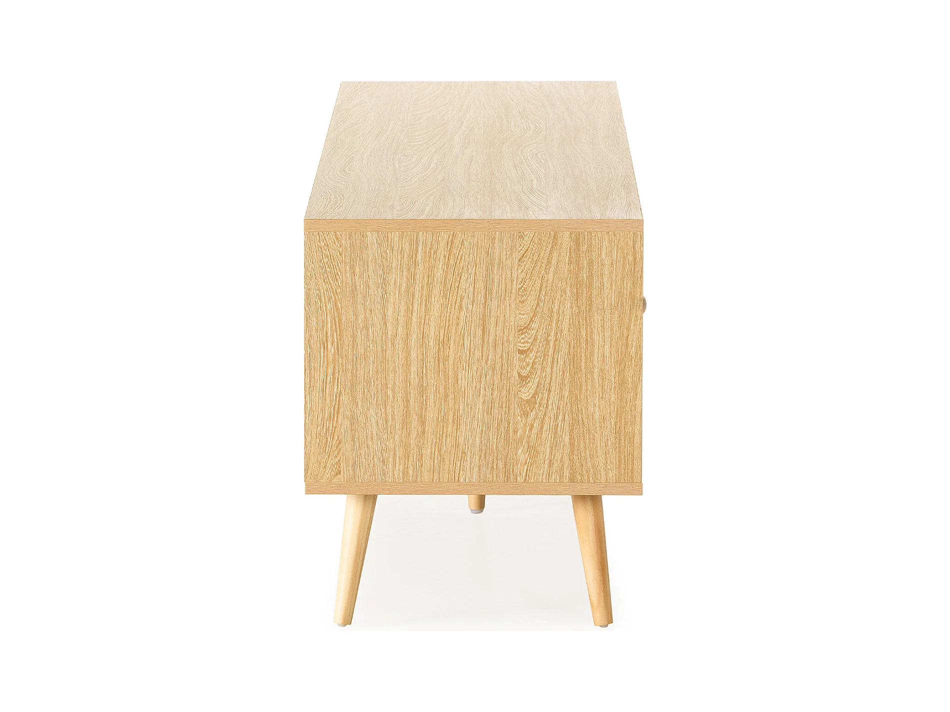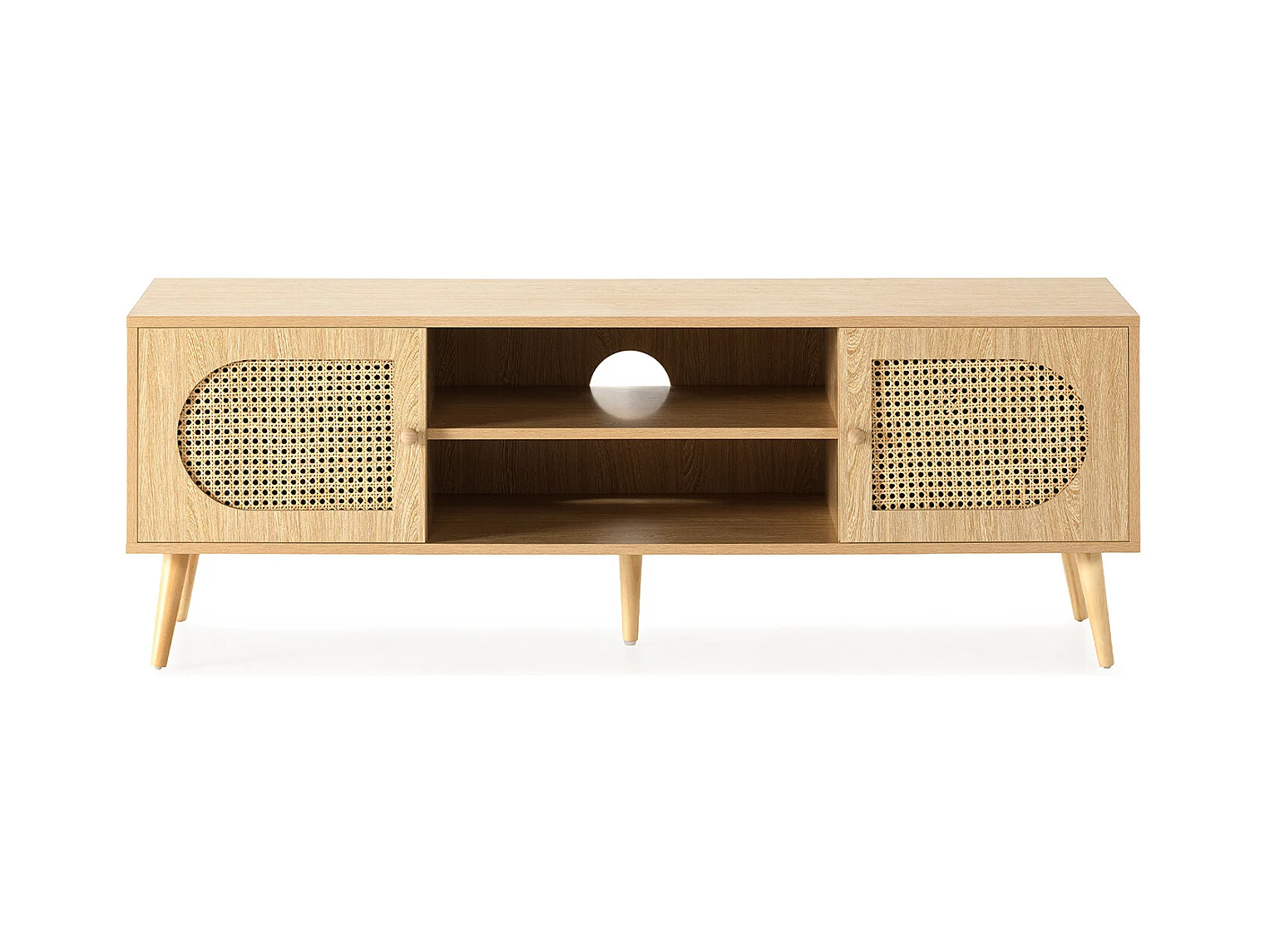 Meuble TV 2 portes avec cannage Evelis L160cm Bois et Rotin clair