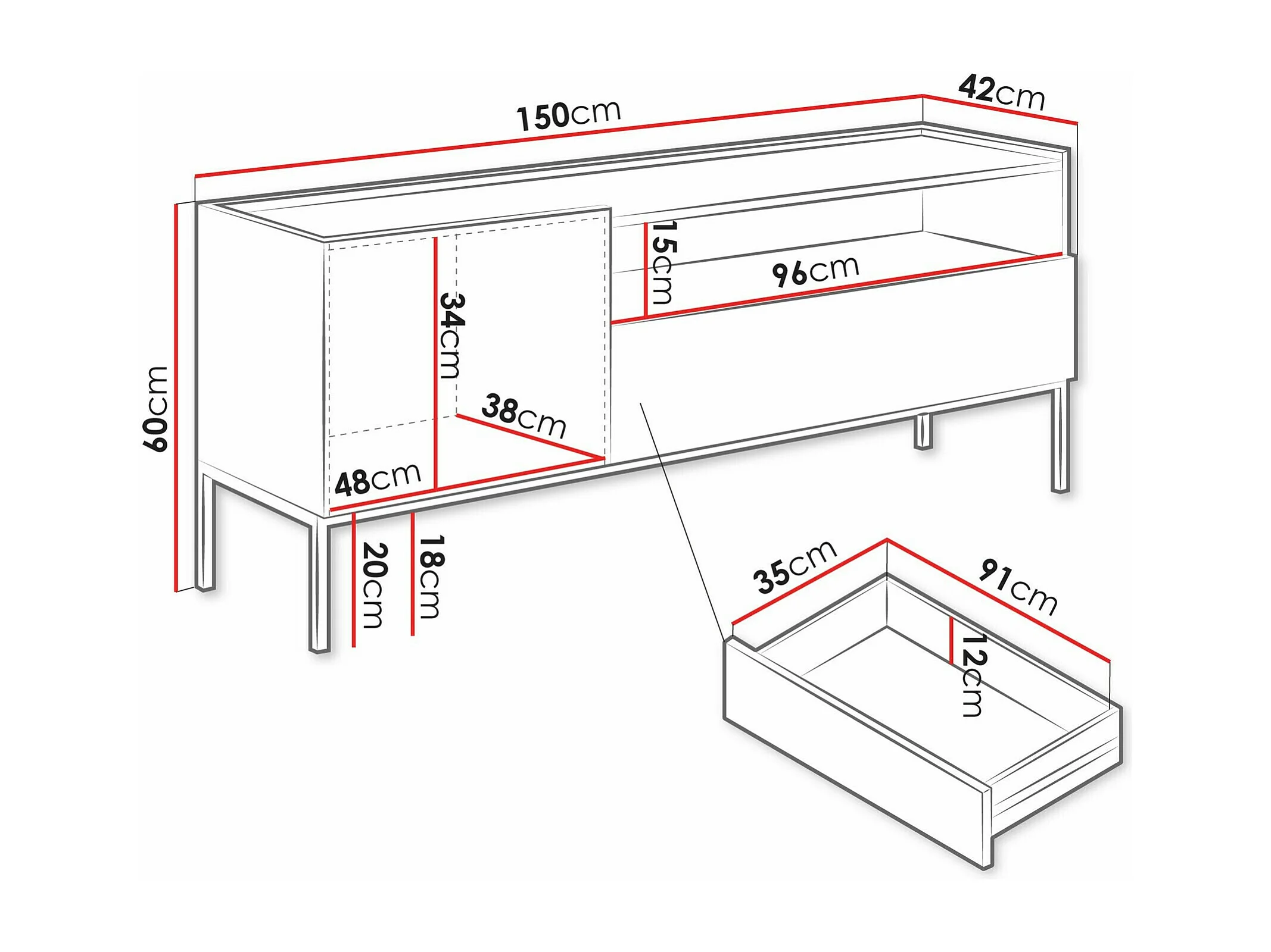 Meuble TV Lunole 108, Noir|Chêne Artisan, 150x60x42cm