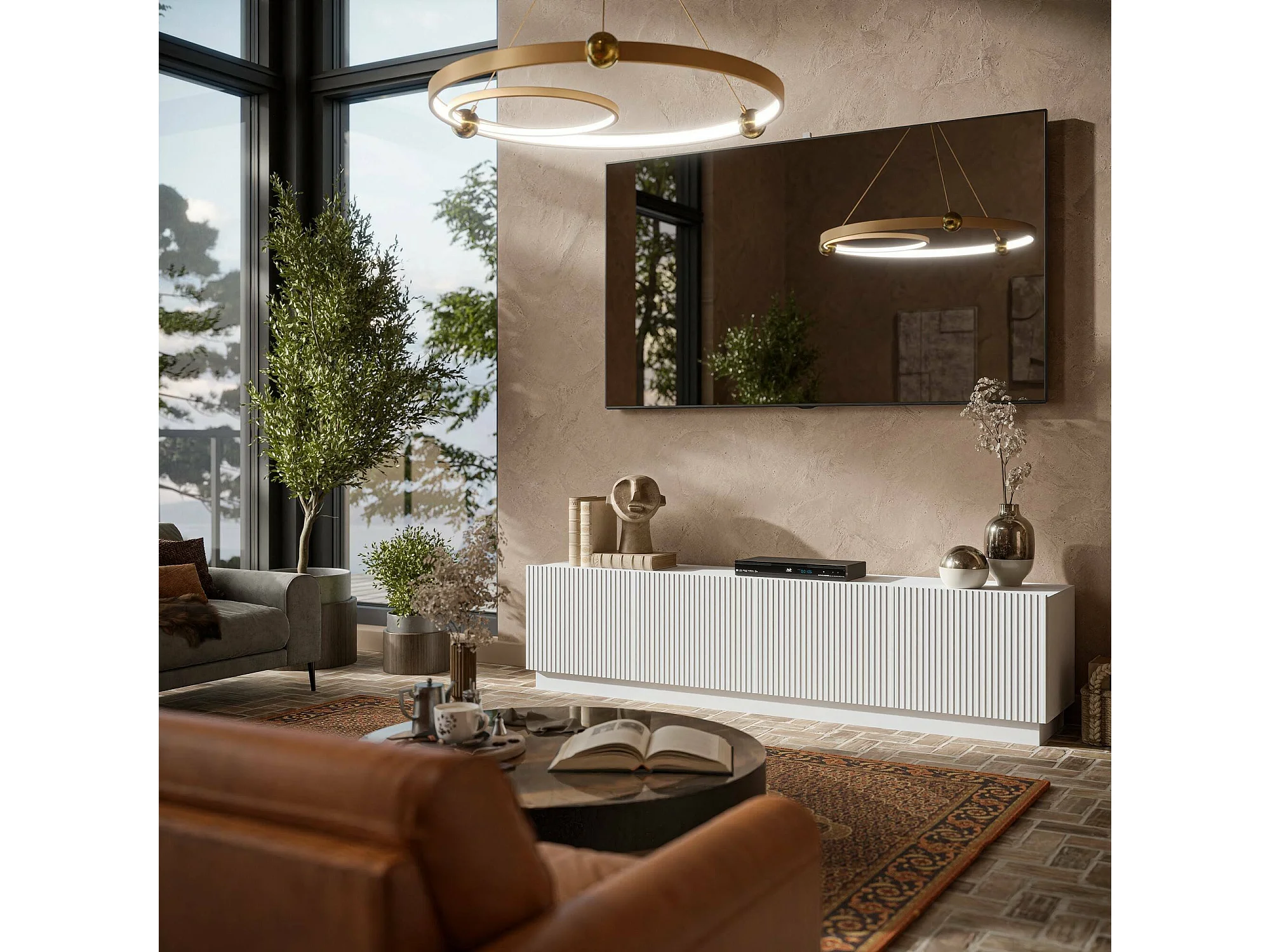 Meuble TV Horta, 4 Étagères, 40x200x48h cm Blanc