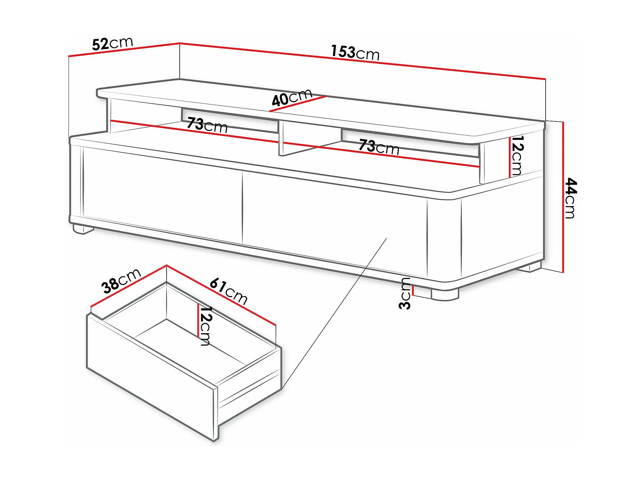 Meuble TV Melsali 104, Sonoma chêne|Graphite, 153x44x52cm