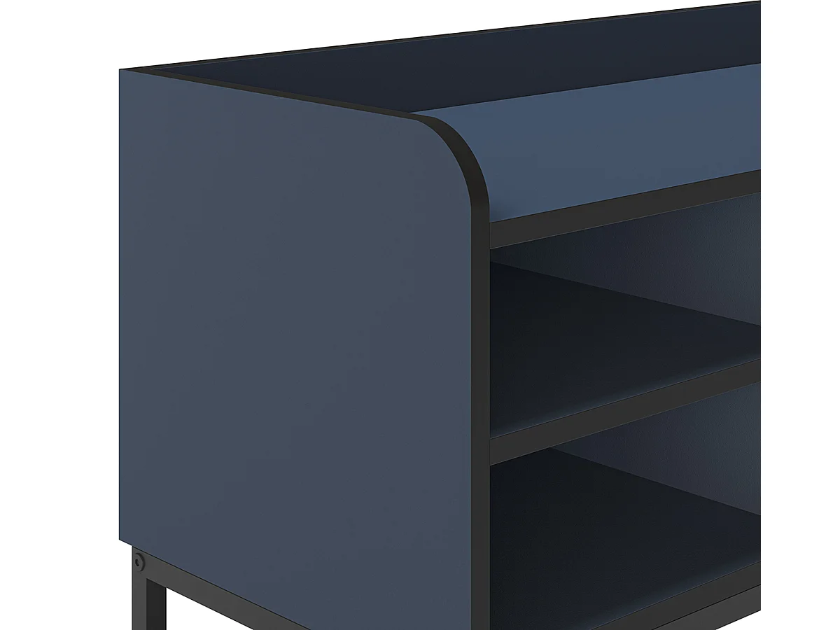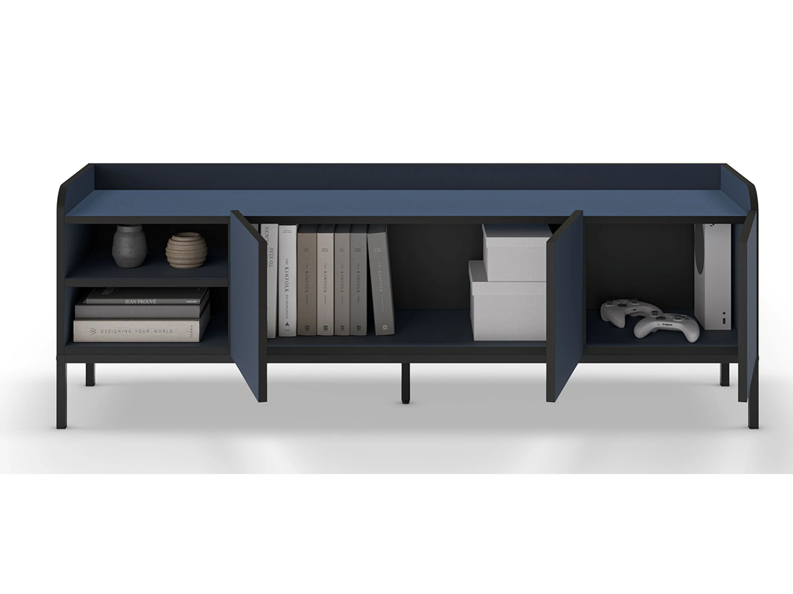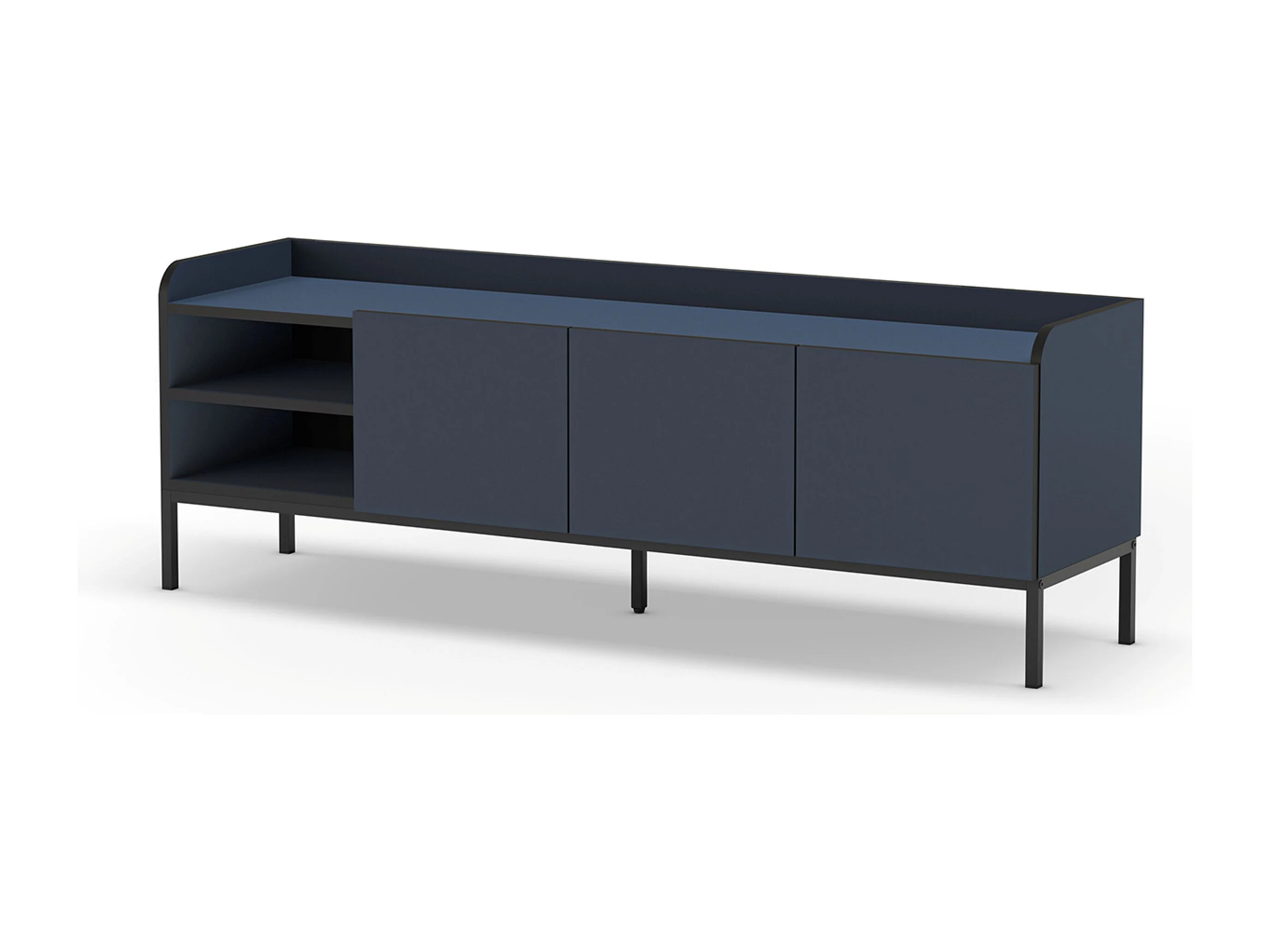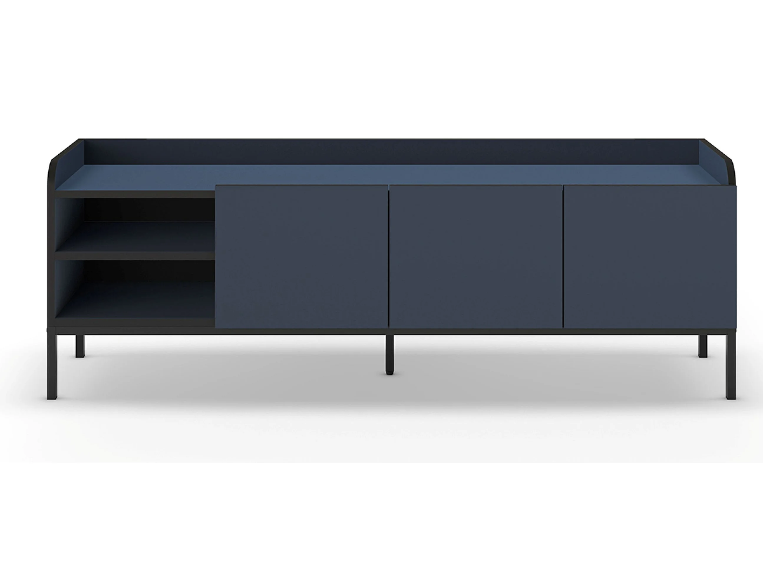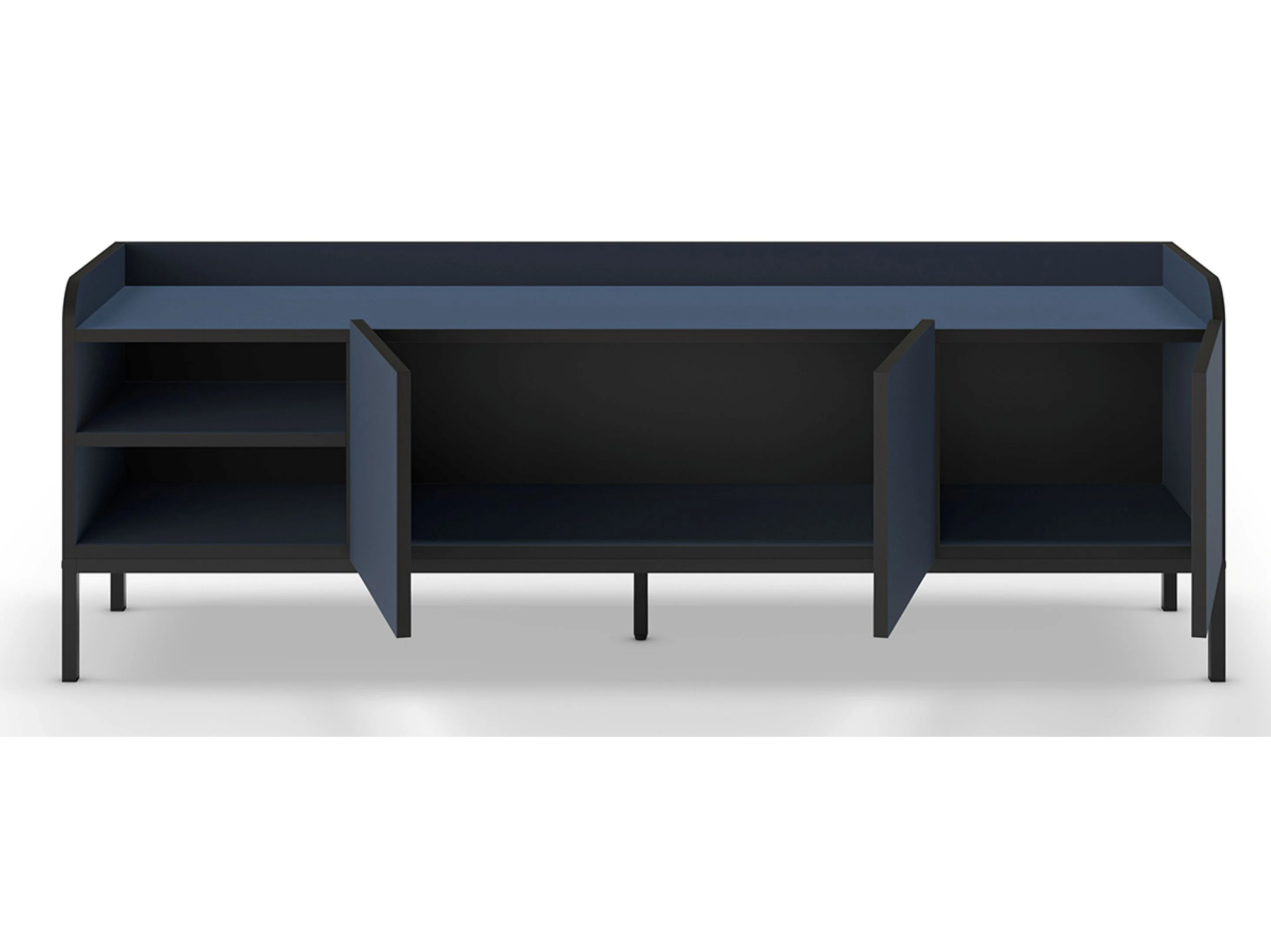 Meuble TV, Meuble de salon aspect bois coloris bleu, pieds en métal noir - Longueur 160 x Profondeur 42 x Hauteur 55 cm