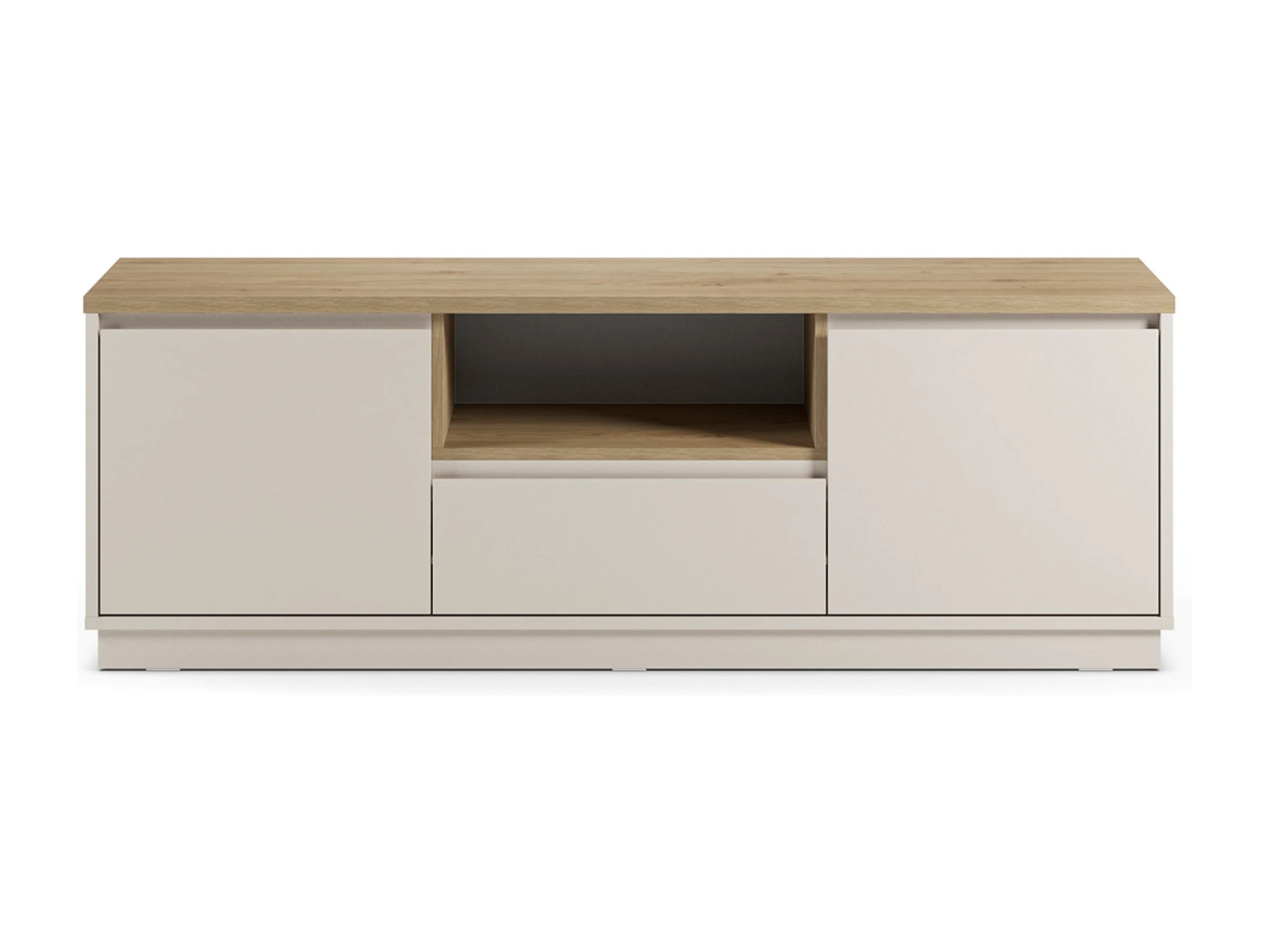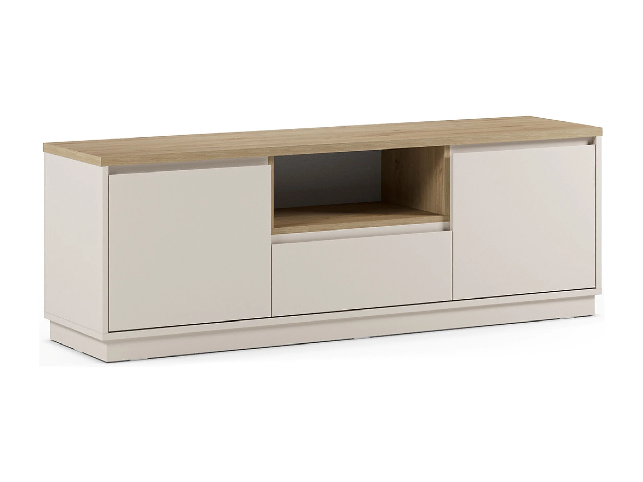 Meuble TV, Meuble de salon avec 2 portes et 1 tiroir aspect bois coloris blanc, chêne - Longueur 161 x Profondeur 40 x Hauteur 55 cm
