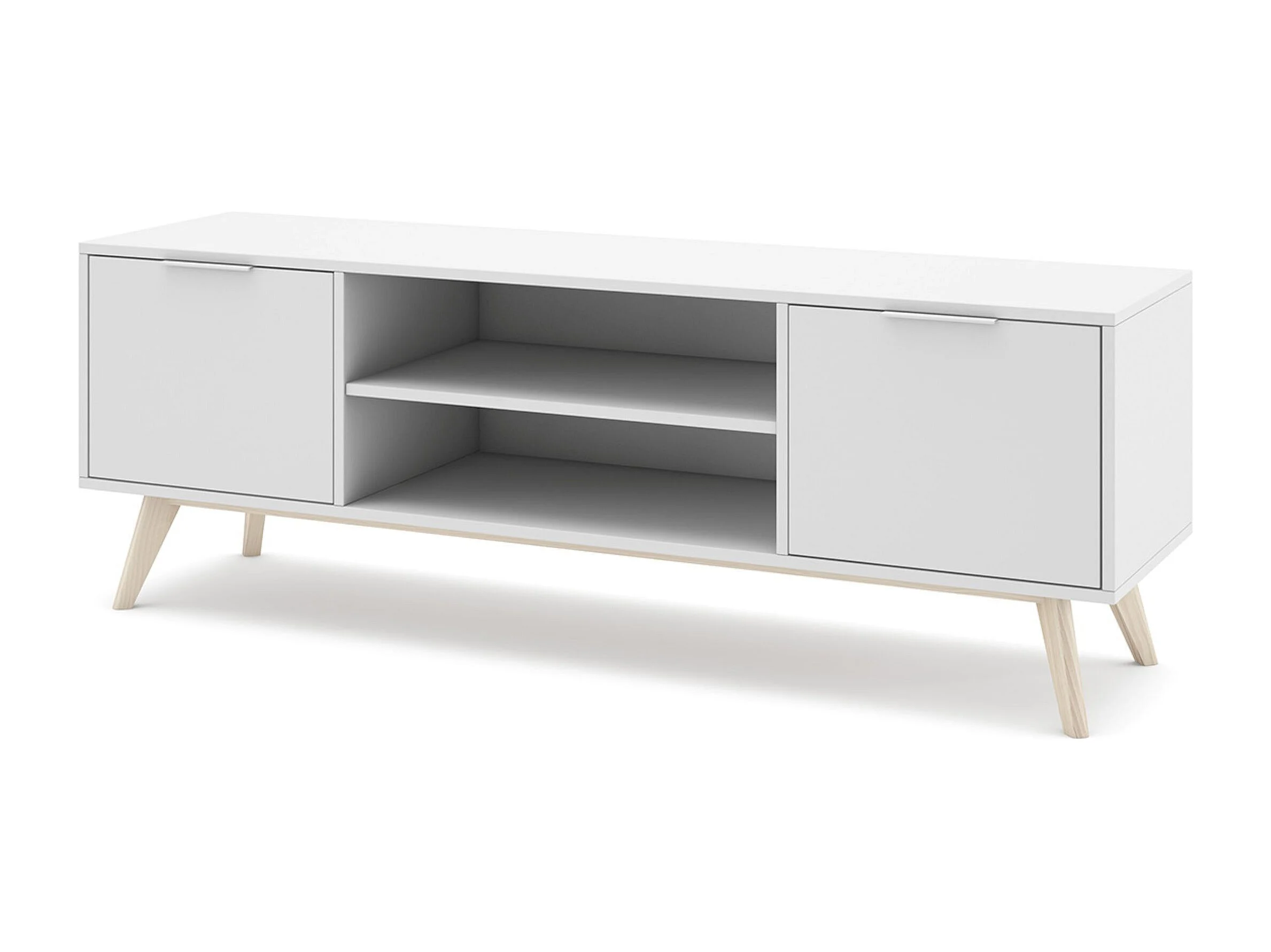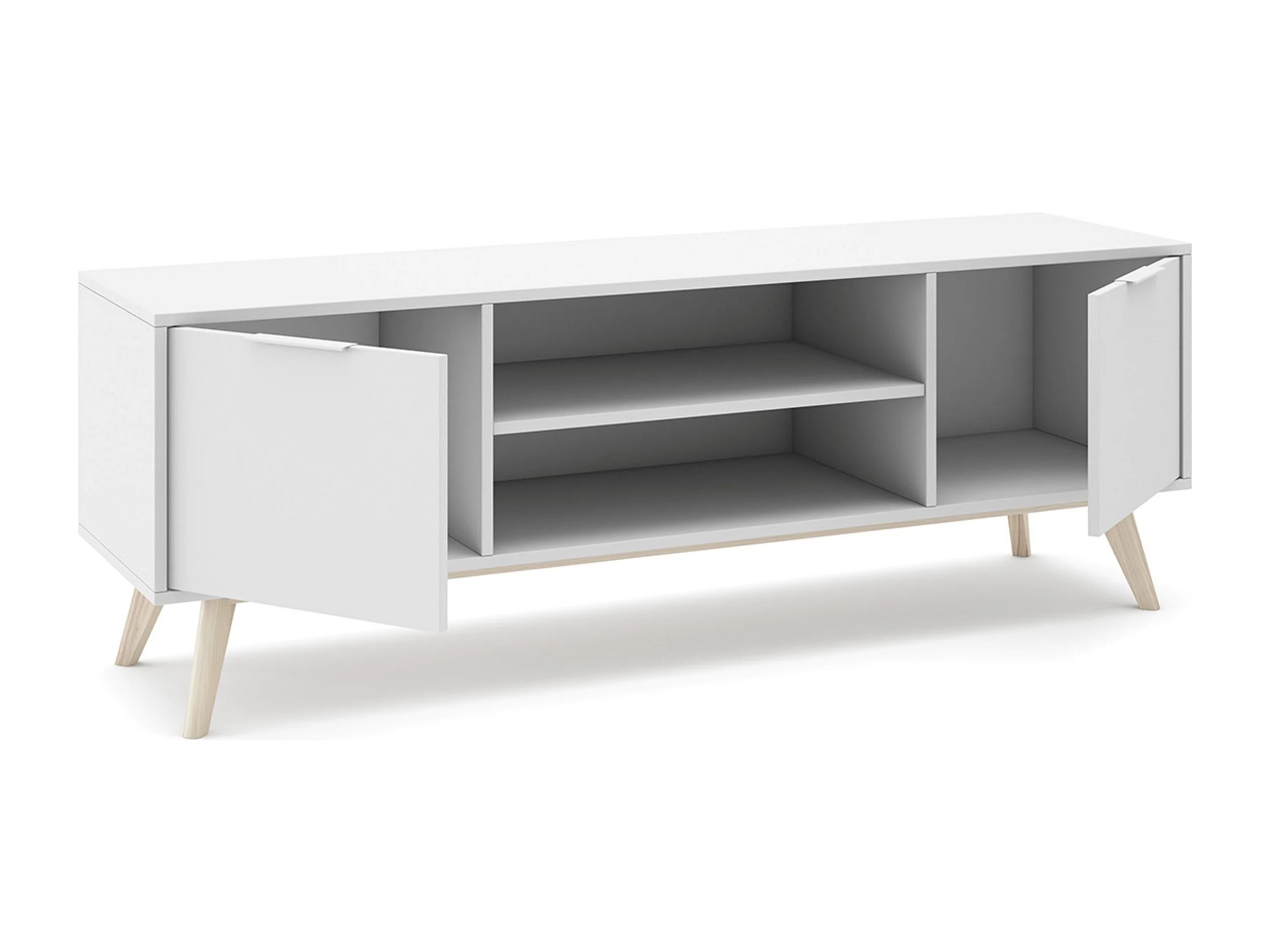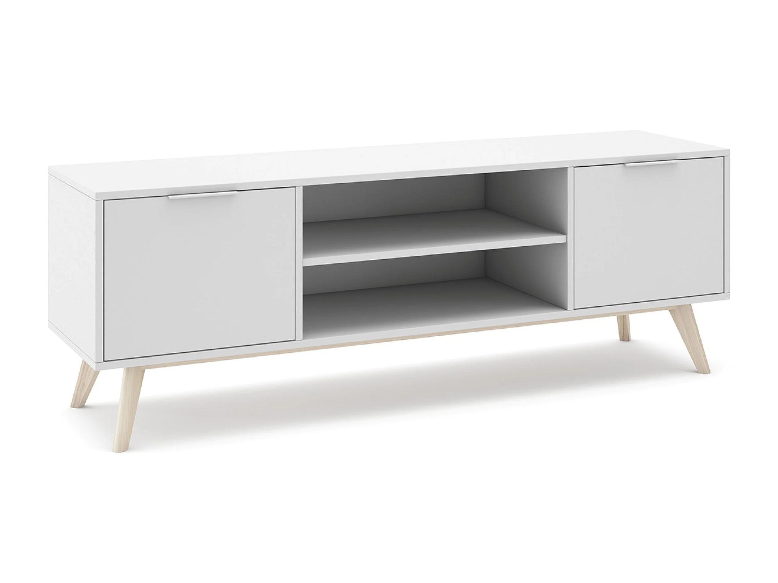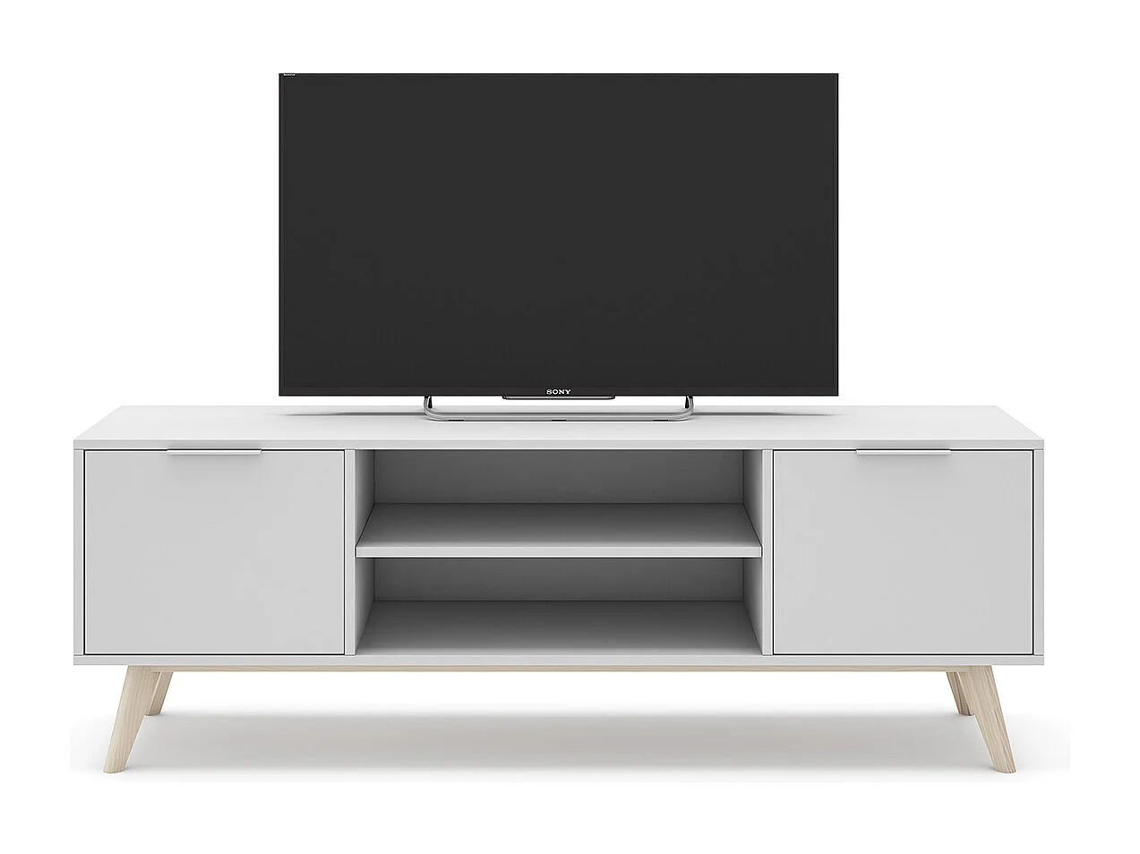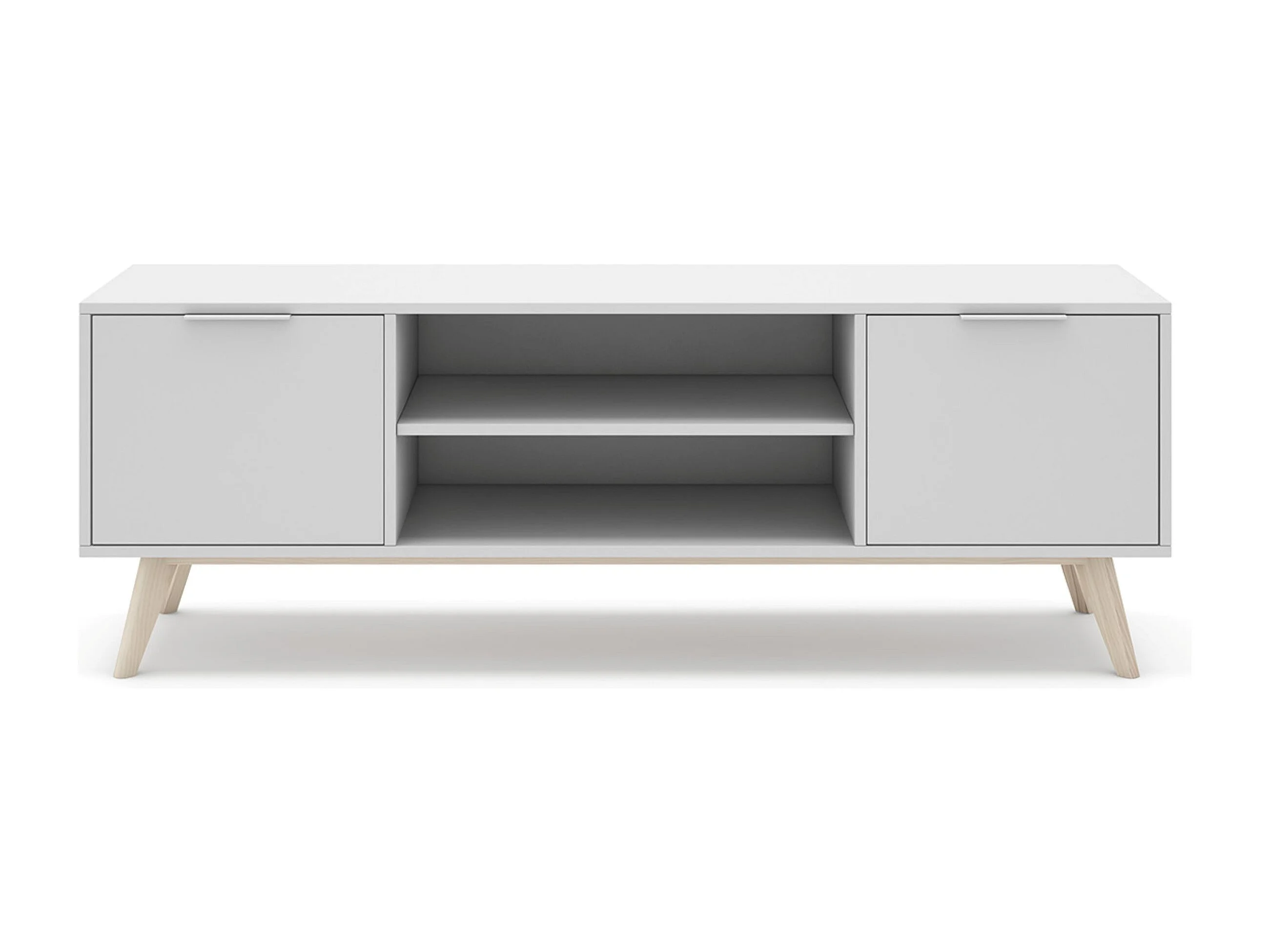 Meuble TV, meuble de salon avec 2 portes et 2 niches en pin colorisblanc/naturel - Longueur 140 x Profondeur 40 x Hauteur 53 cm