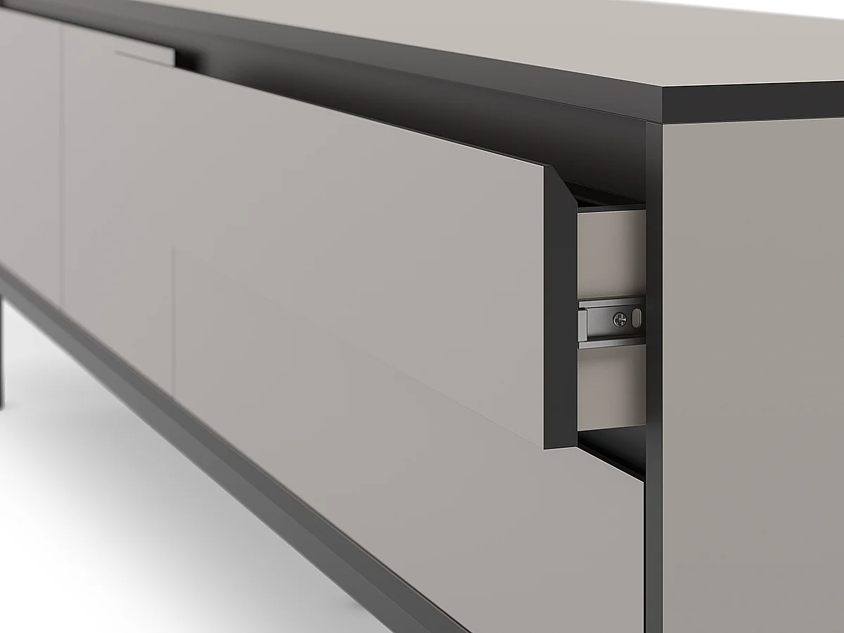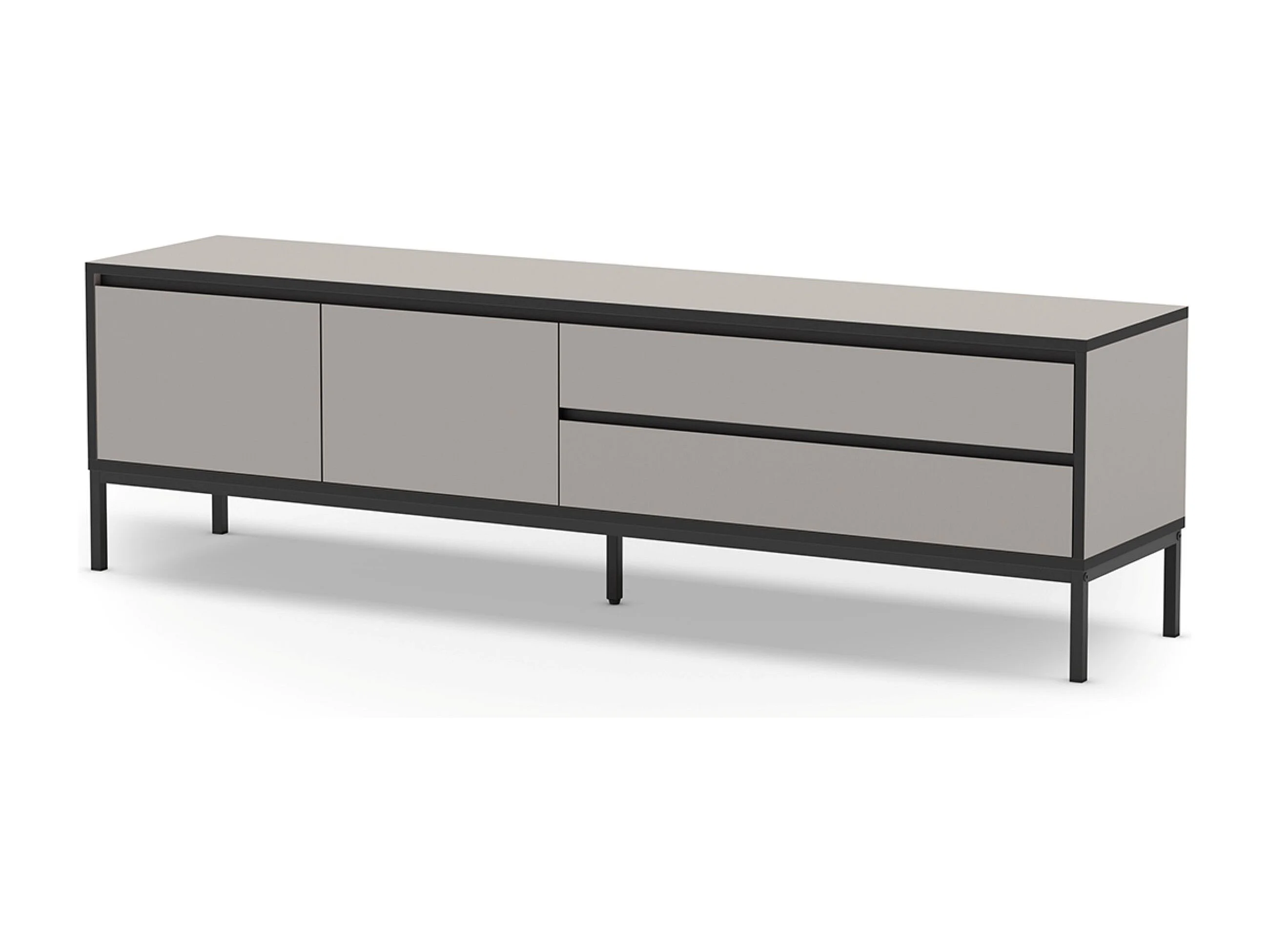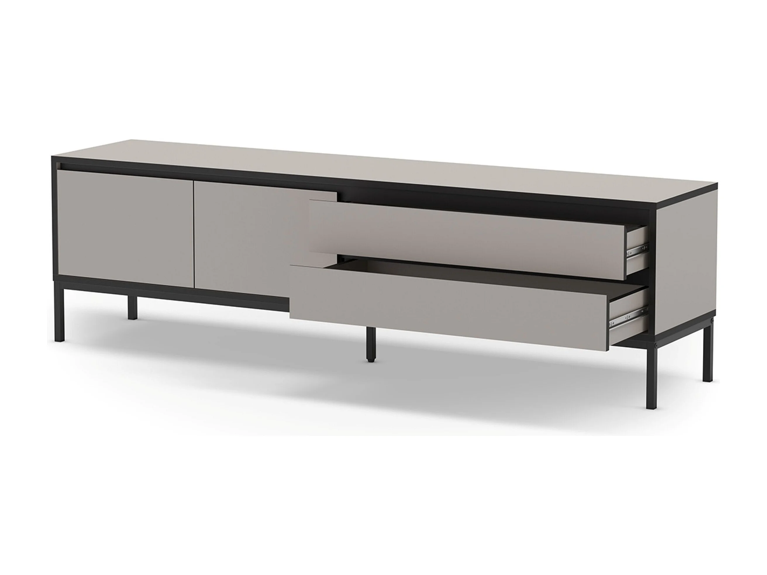 Meuble TV, Meuble de salon avec 2 portes et 2 tiroirs aspect bois coloris crème et pieds en métal noir - Longueur 180 x Profondeur 40 x Hauteur 55 cm
