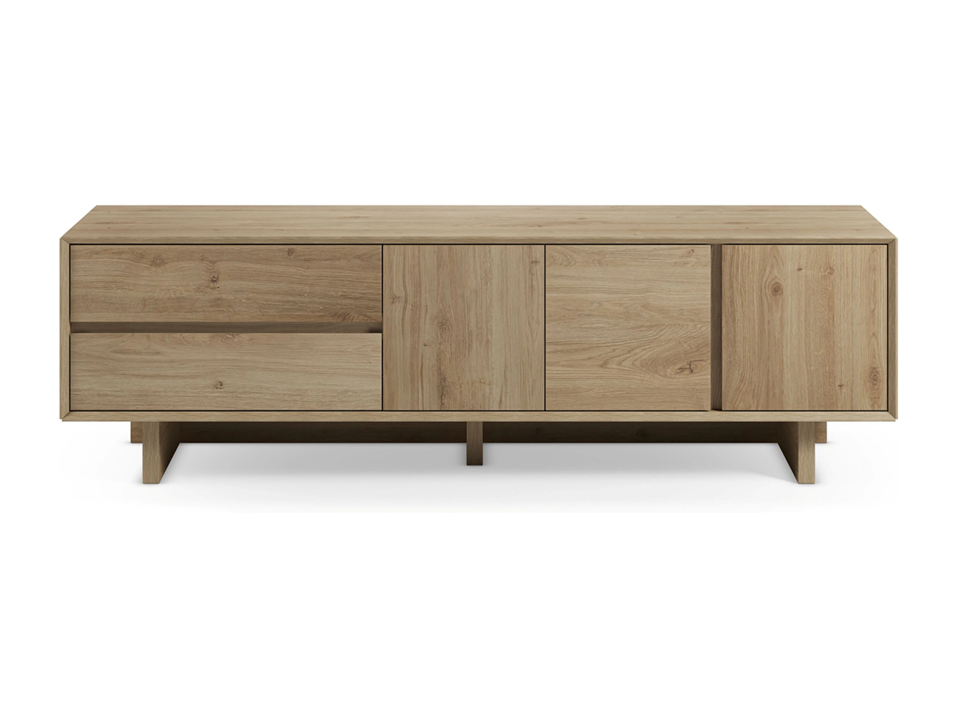 Meuble TV, meuble de salon avec 3 portes et 2 tiroirs aspect bois coloris chêne - Longueur 180 x Profondeur 45 x Hauteur 55,30 cm