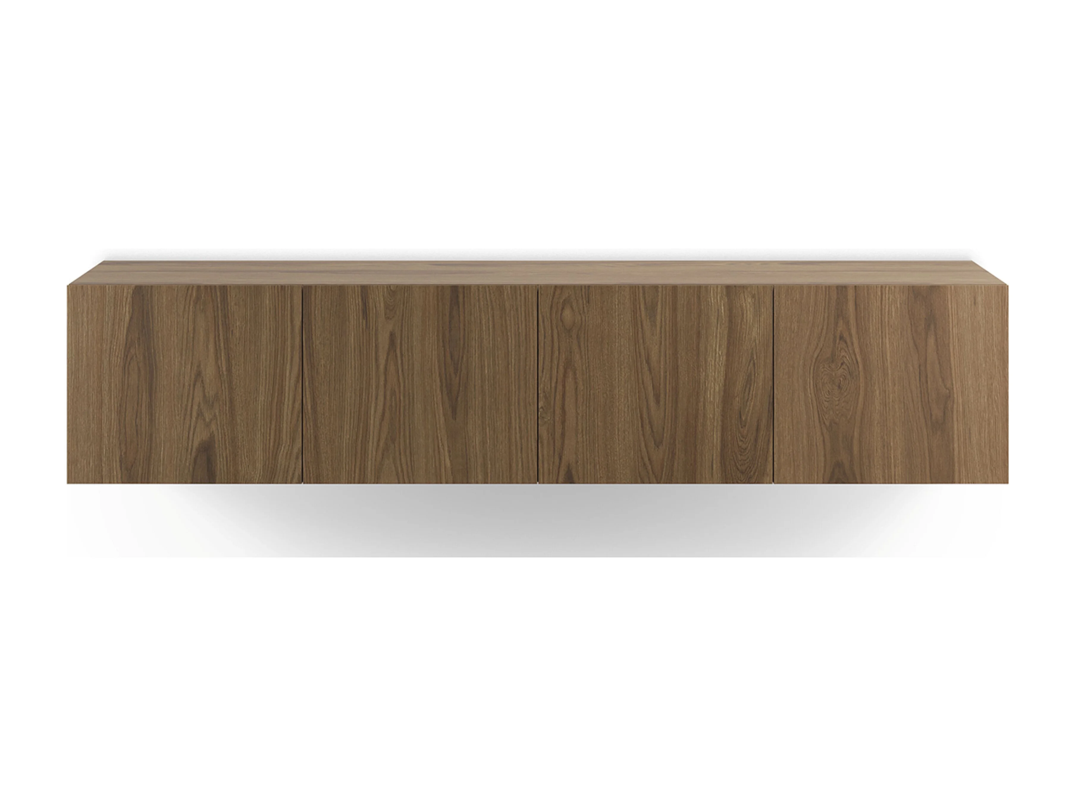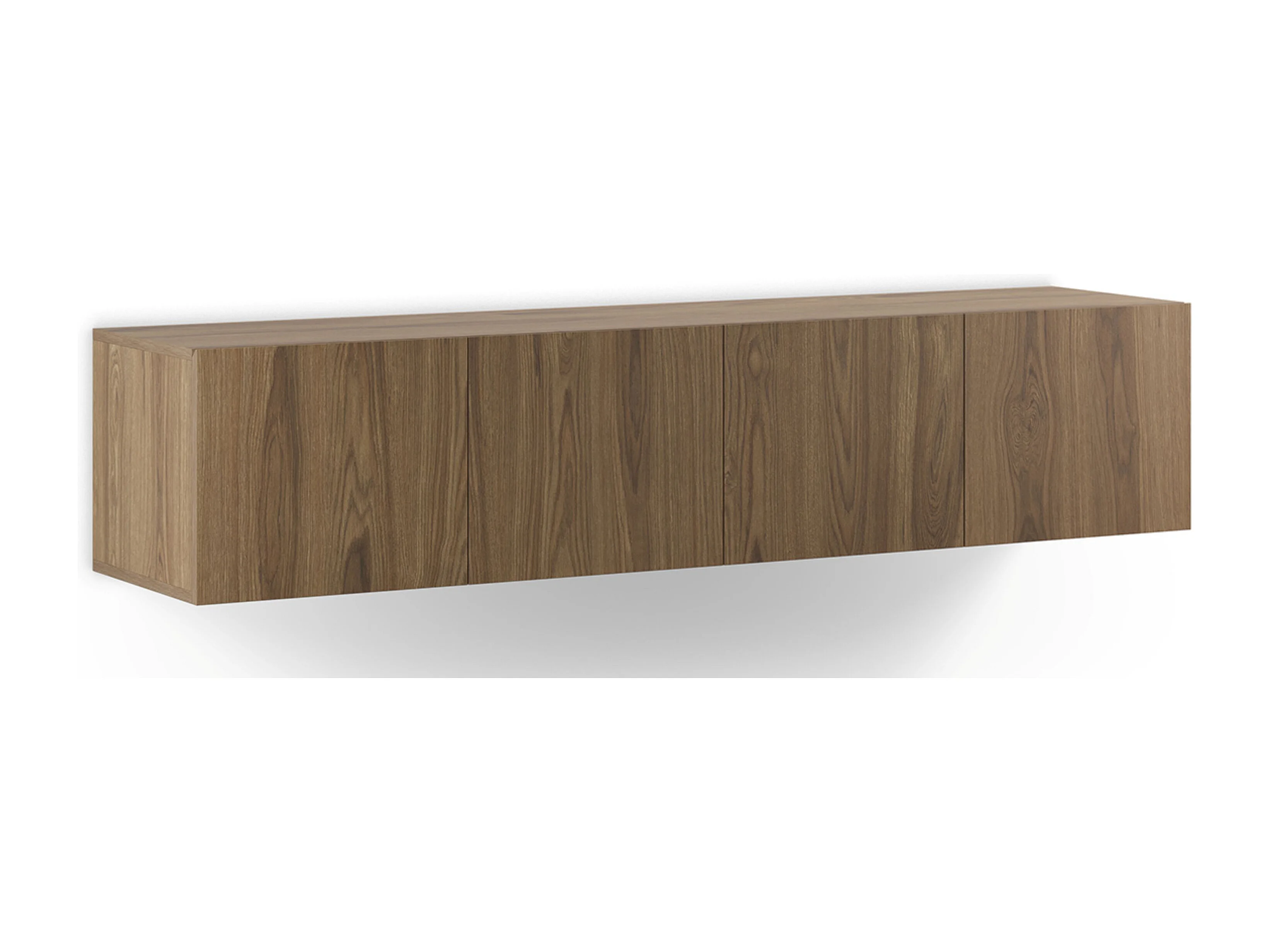 Meuble TV, Meuble de salon avec 4 portes aspect bois coloris chêne - Longueur 180 x Profondeur 35 x Hauteur 38 cm