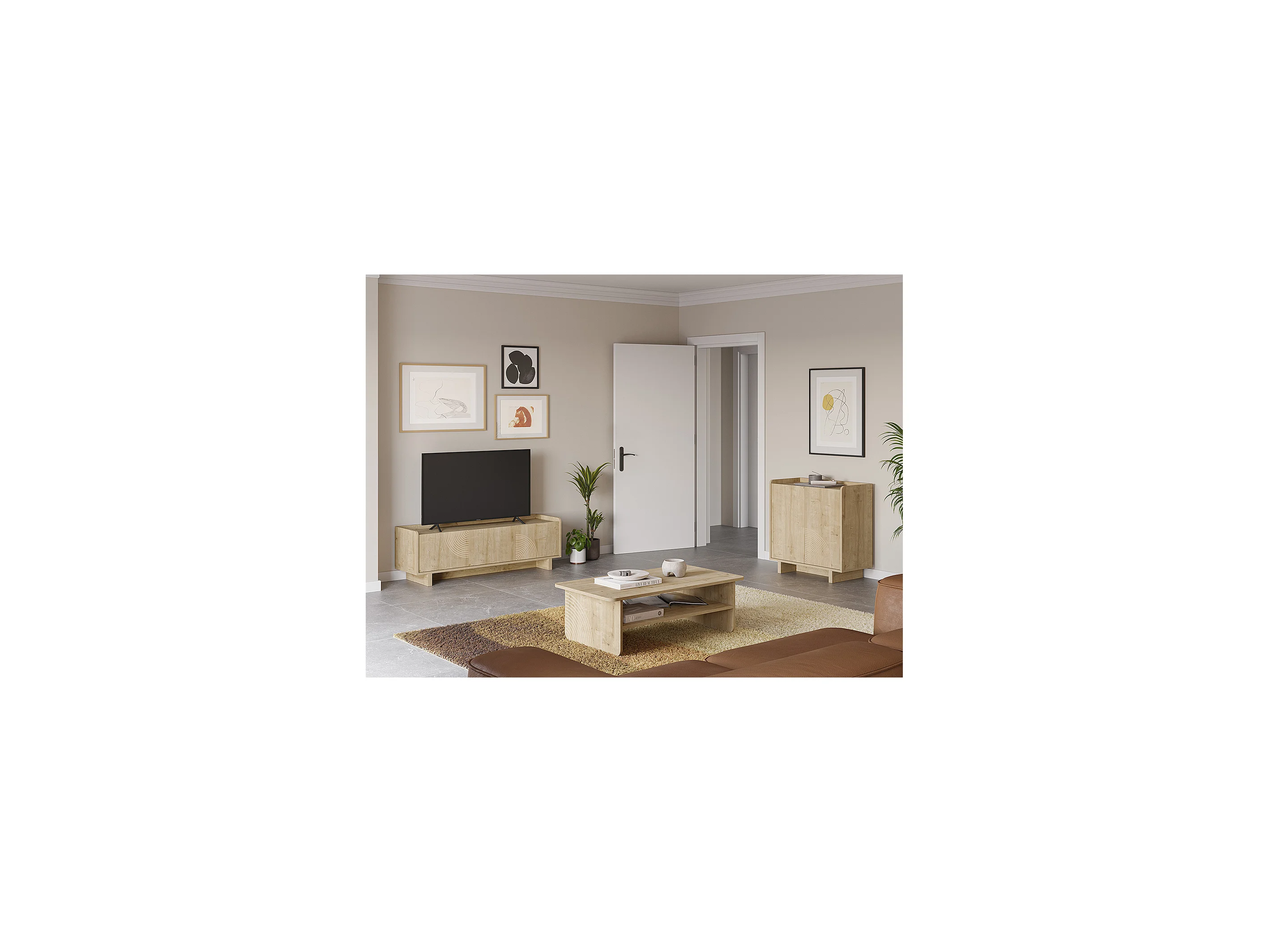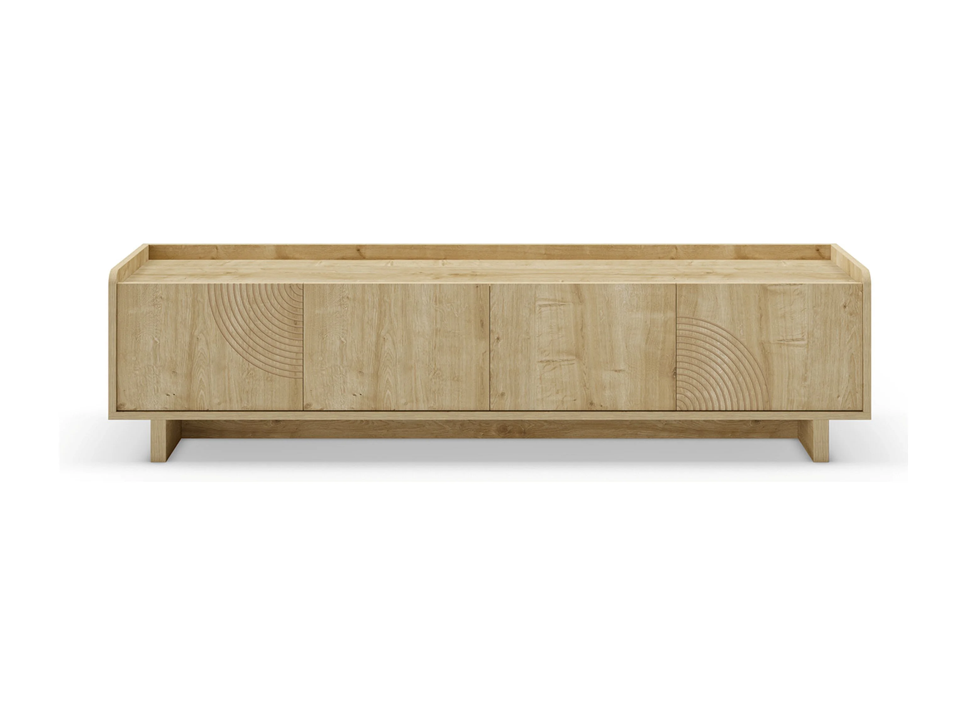Meuble TV, meuble de salon avec 4 portes aspect bois coloris chêne - Longueur 180 x Profondeur 40 x Hauteur 45 cm