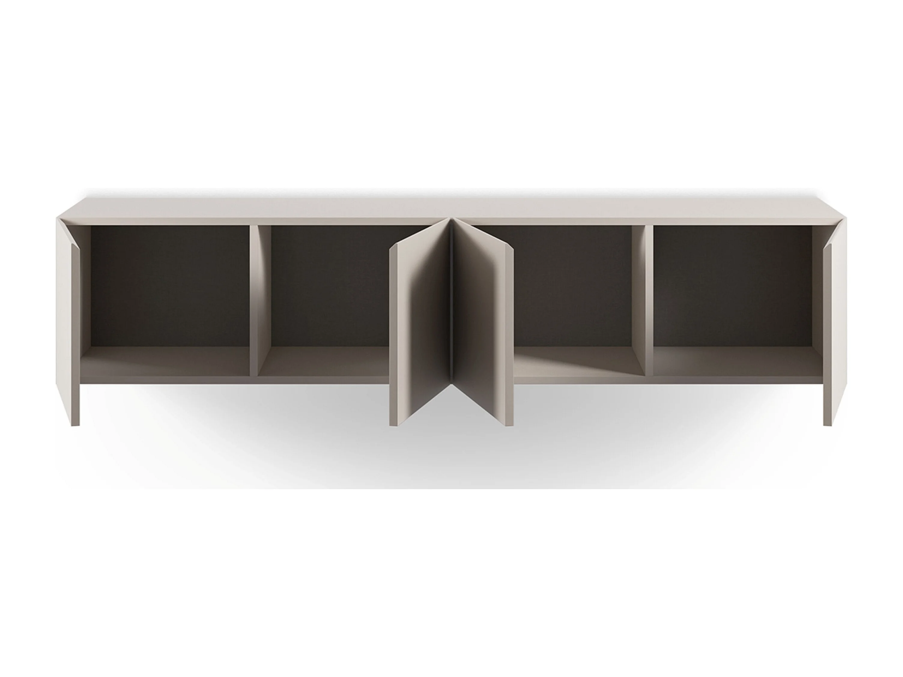Meuble TV, Meuble de salon avec 4 portes aspect bois coloris crème - Longueur 180 x Profondeur 35 x Hauteur 38 cm