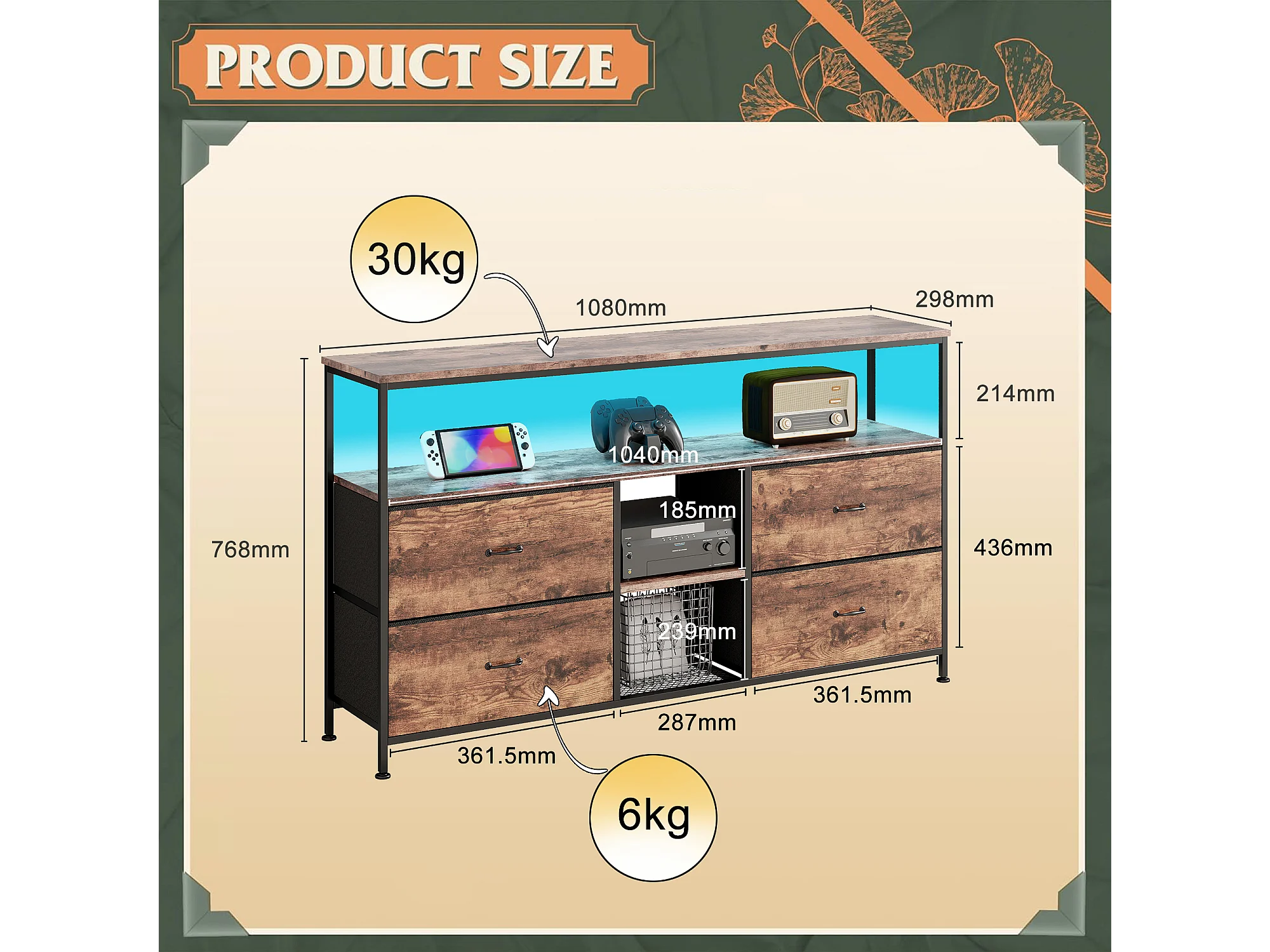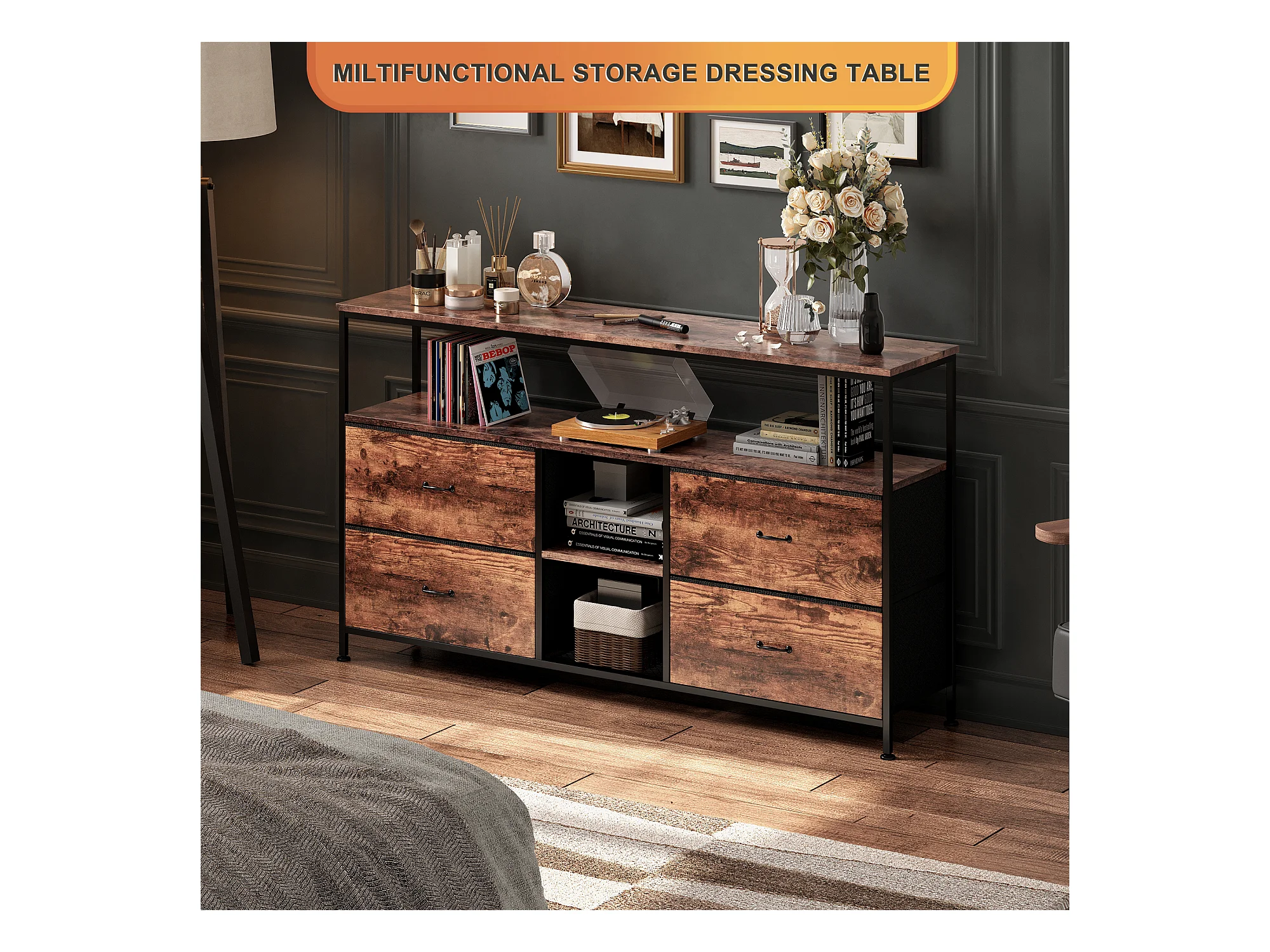 Meuble TV, Meuble TV avec 4 tiroirs, salon, salle de divertissement,chambre à coucher, Marron