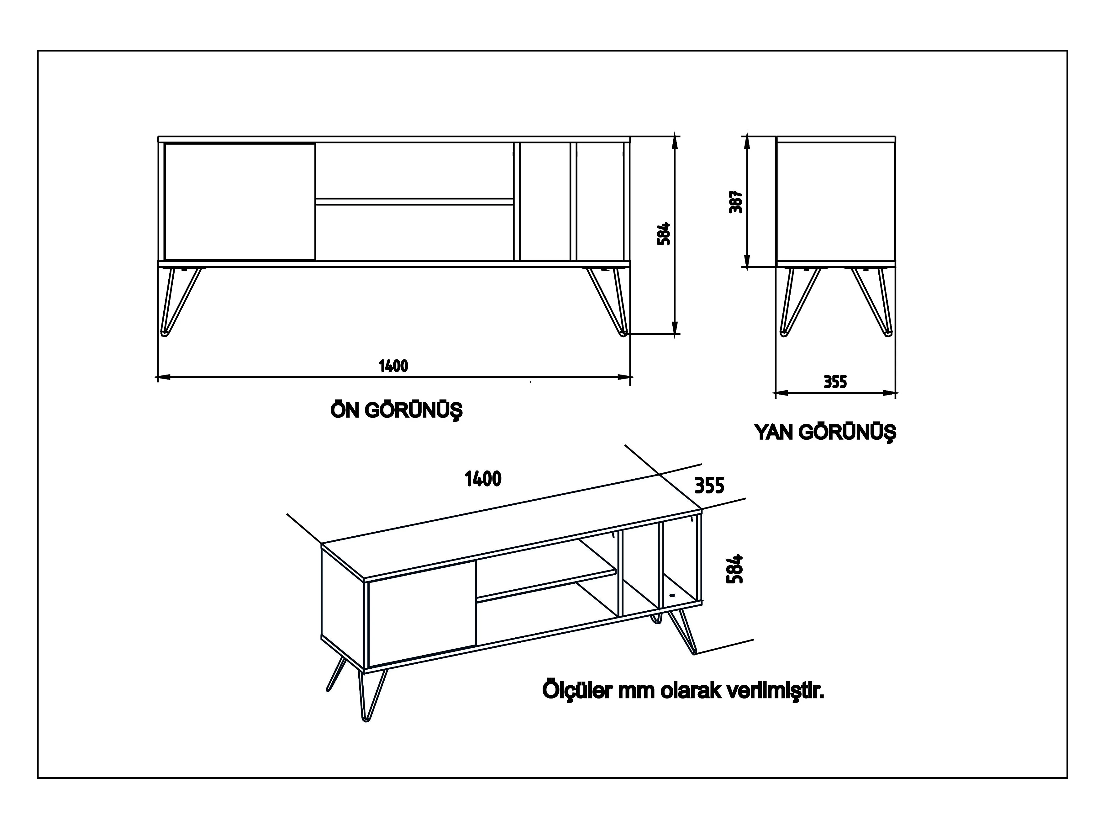Krog 160 cm Meuble TV | Étagères ouvertes et Armoires battantes (Blanc et Wenge)