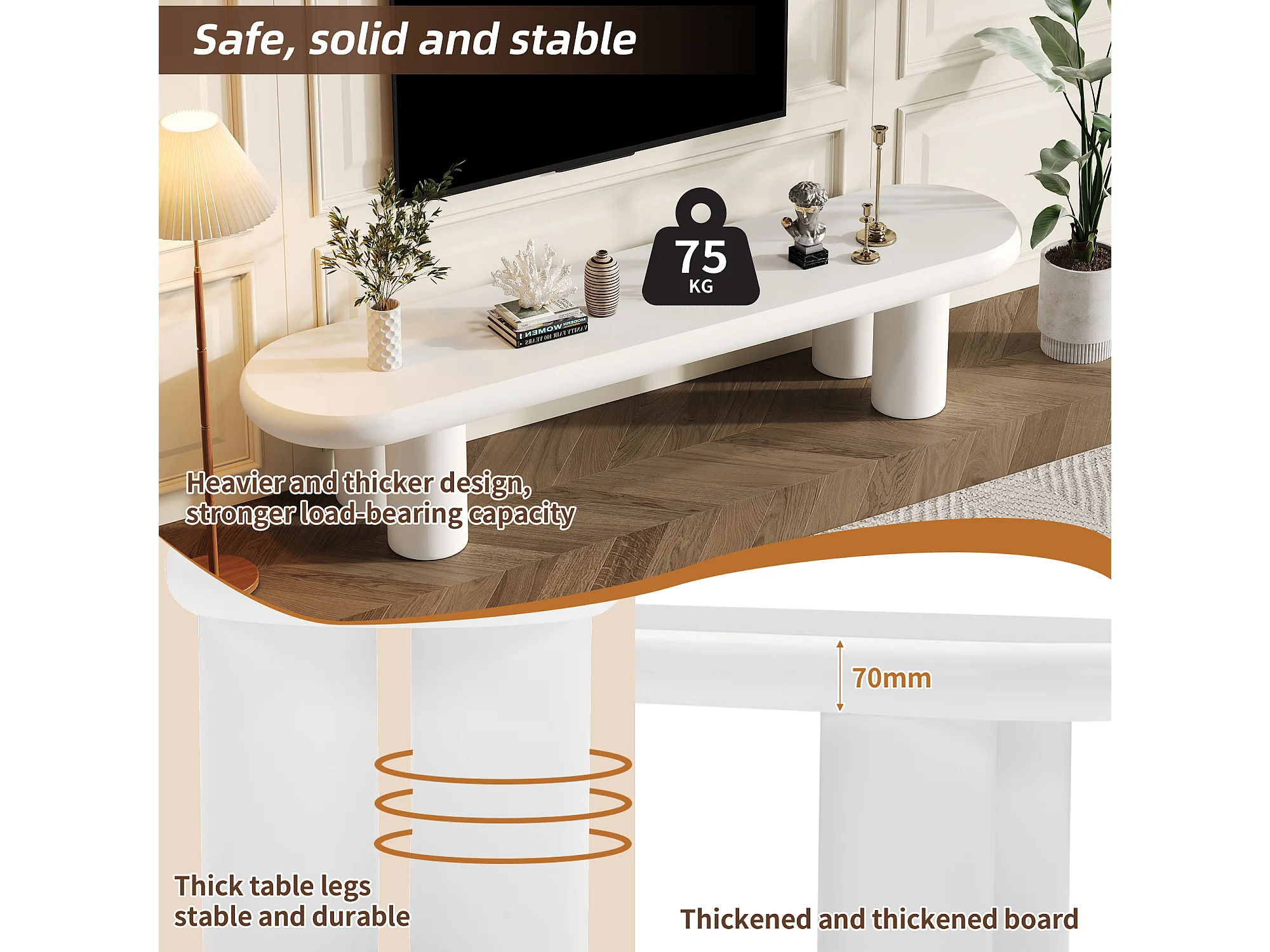 Meuble TV Moderne 160x40x40 cm,Blanc Minimaliste TV Table Aves 4 Pieds Stables pour Salon/Chambre