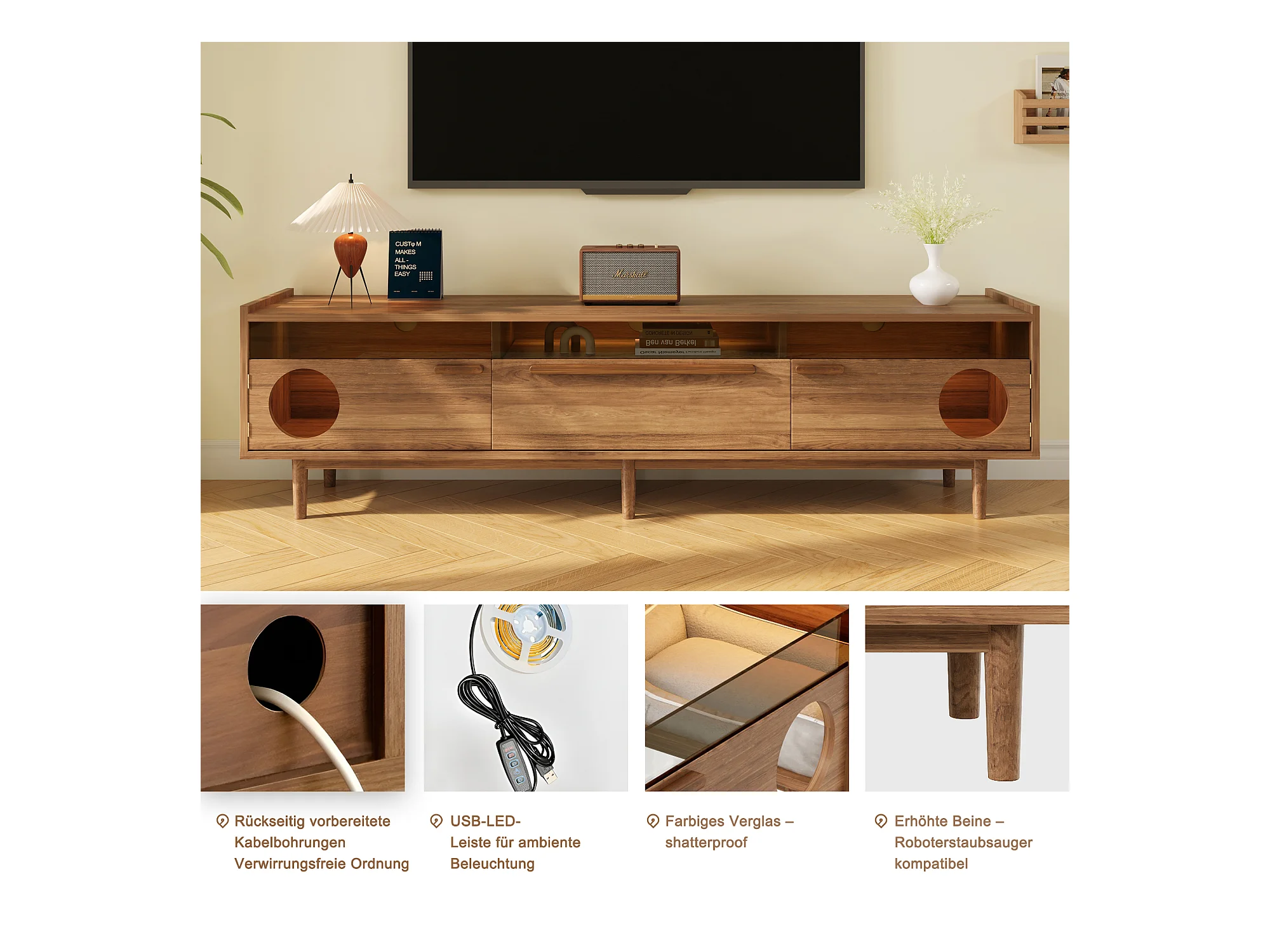 Meuble TV en bois naturel 160x50 cm-Elton