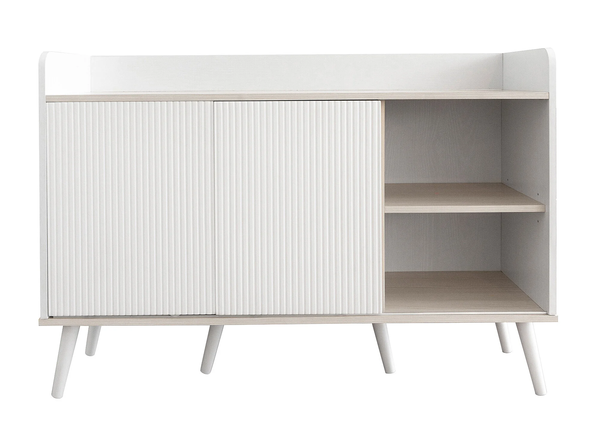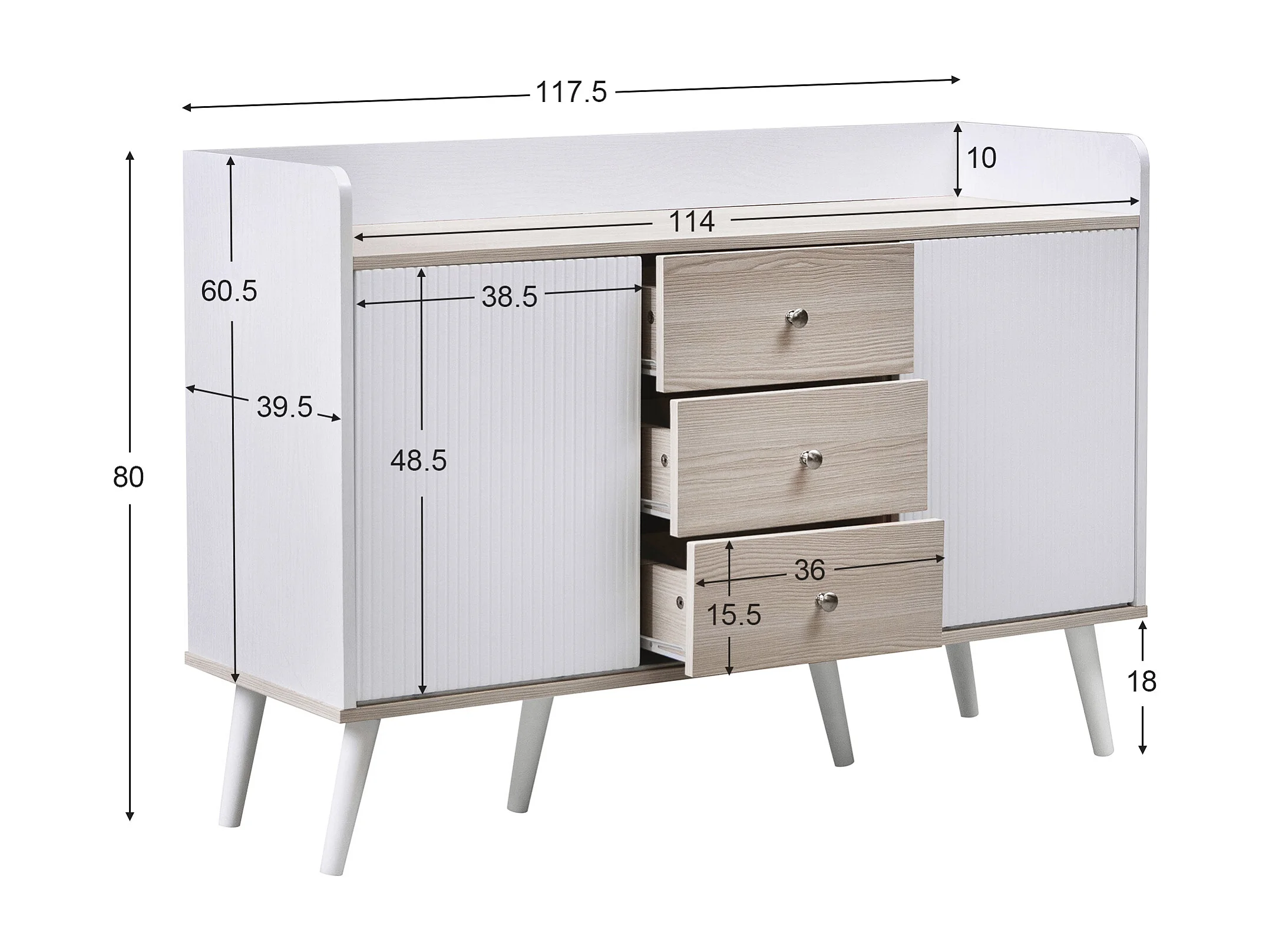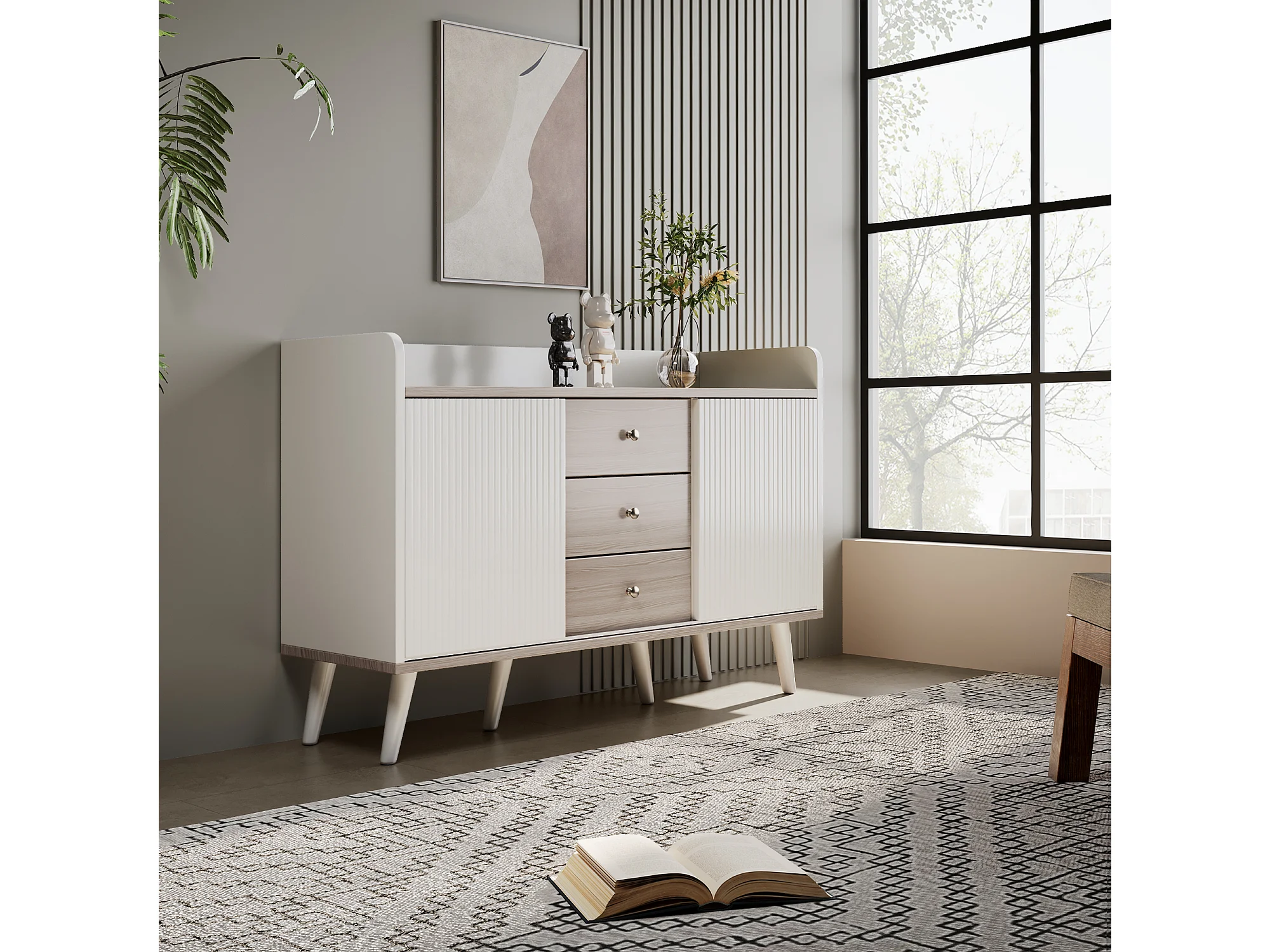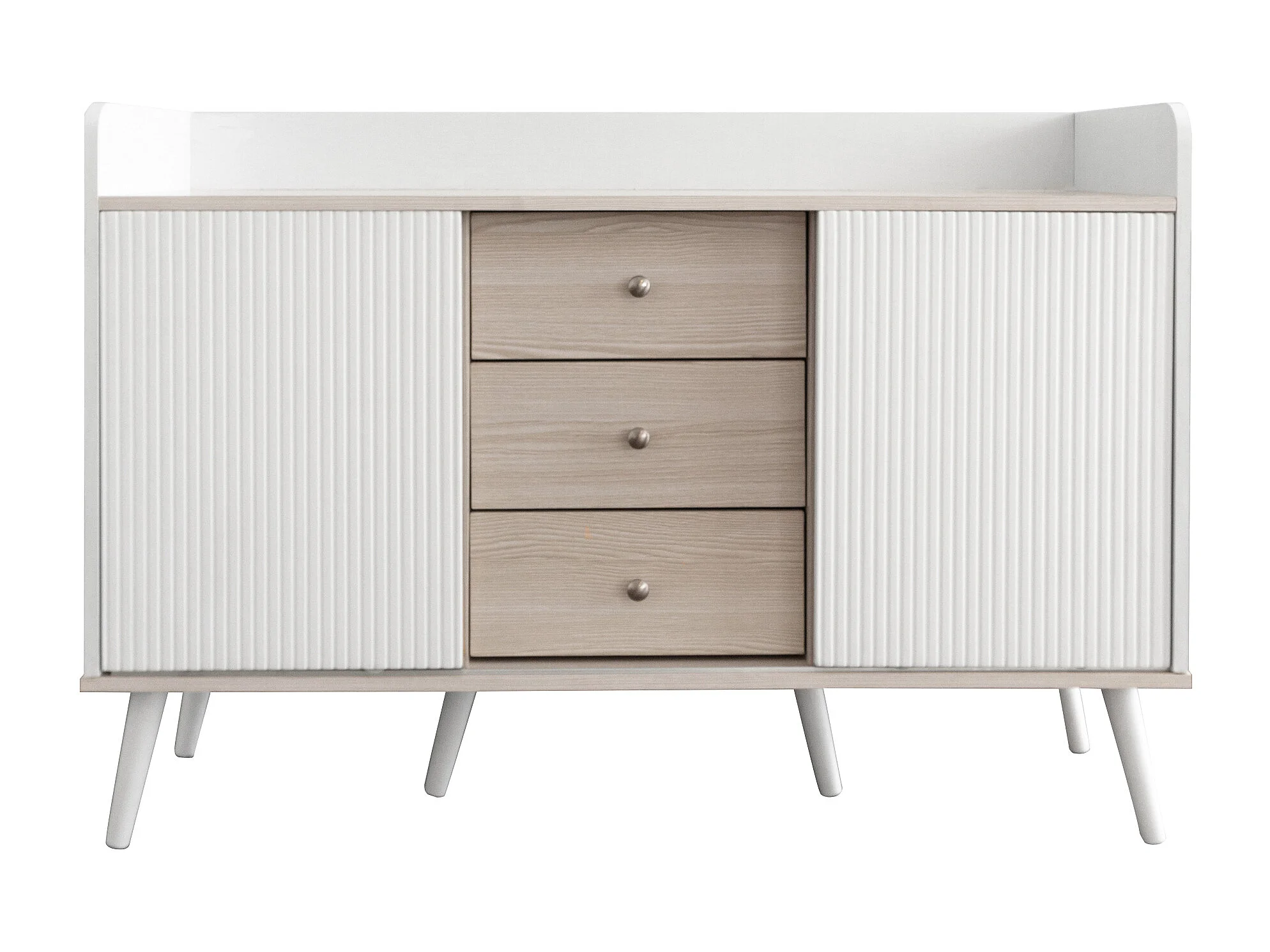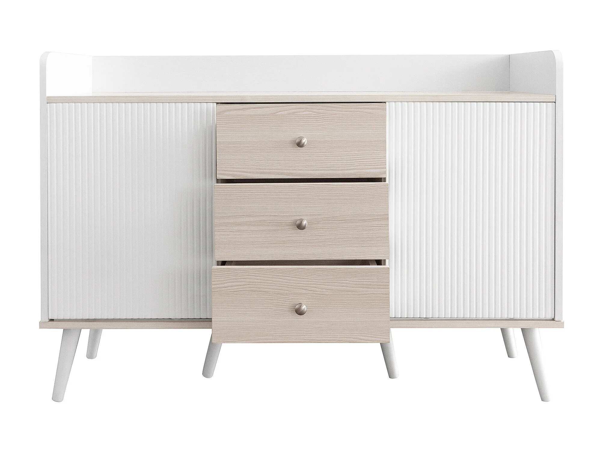 Meuble TV moderne avec 3 portes et 2 niches - LEDs - bois MDF et verre - coloris chêne et blanc