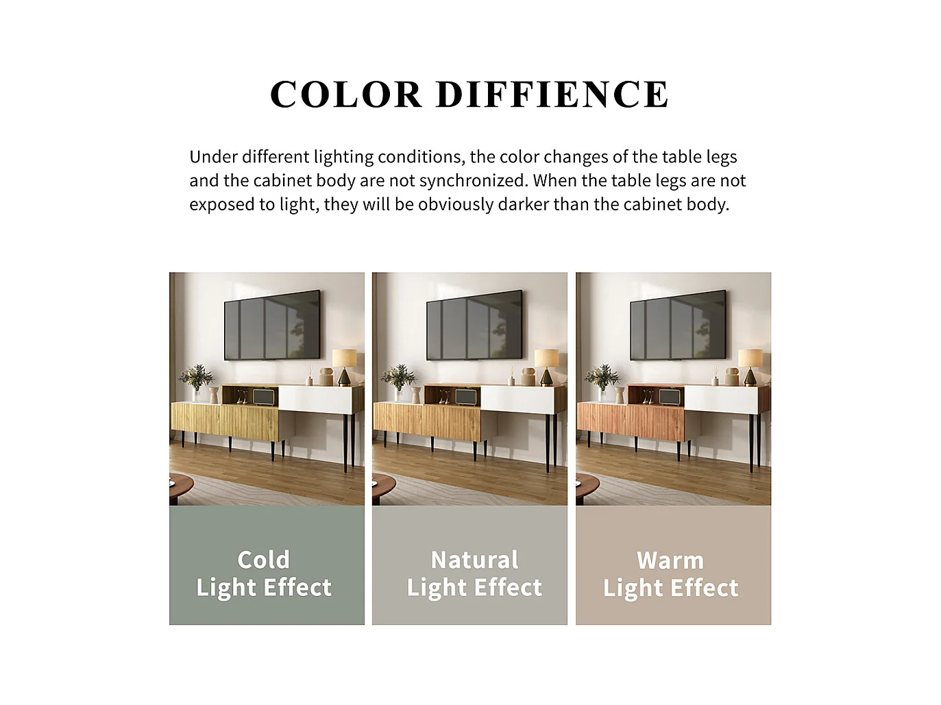 Meuble TV moderne longueur réglable modulaire 2 parties aspect bois blanc mat pieds métal noir multifonction