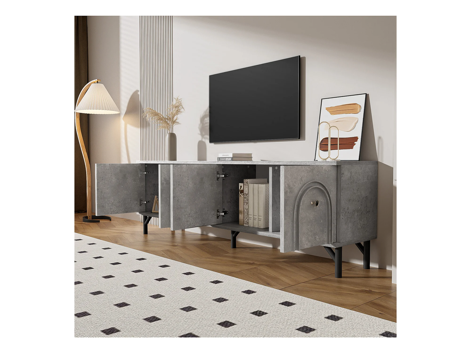 Meuble TV gris avec 4 portes cintrées - Meuble TV moderne - pieds noirs - pour salon et bureau