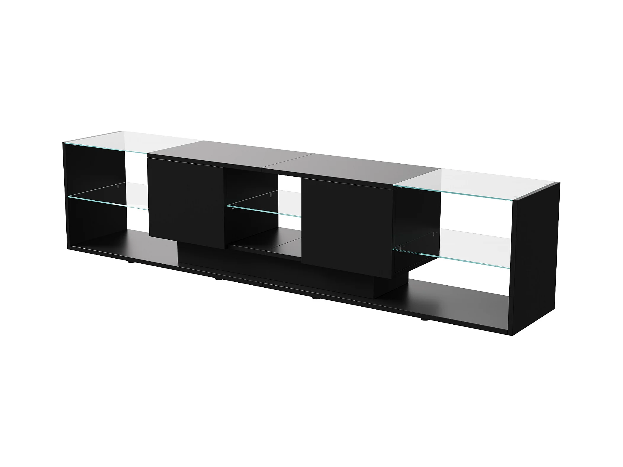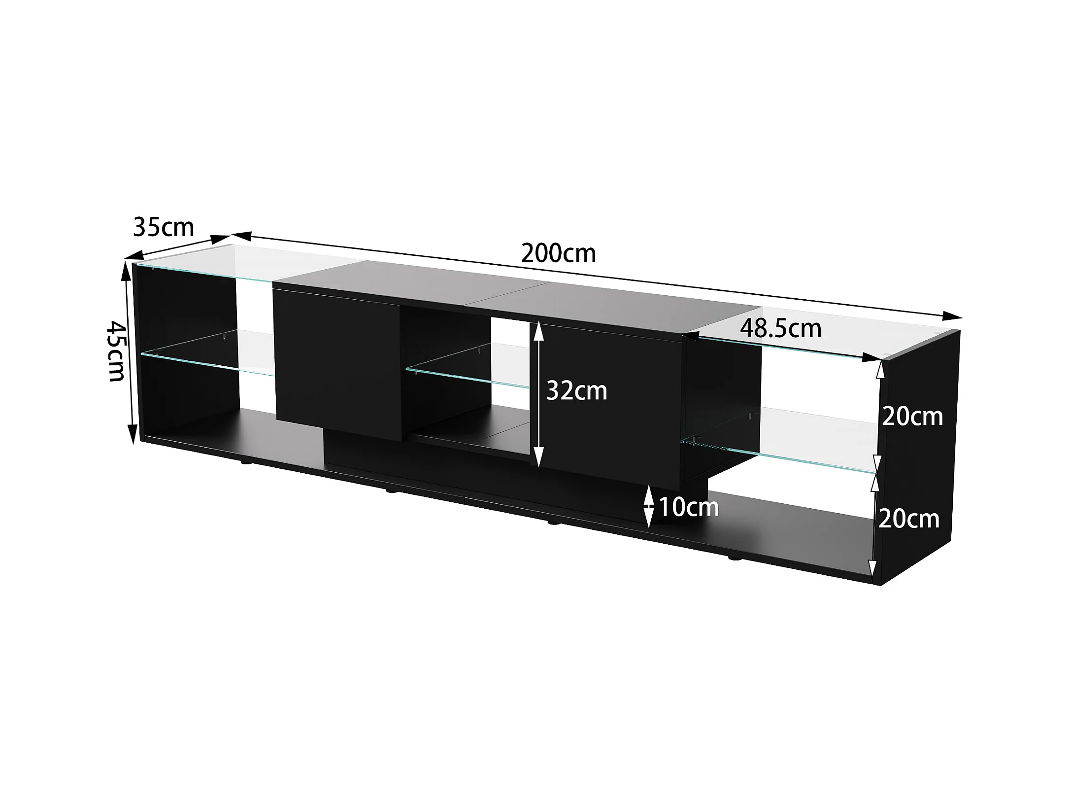 Meuble TV Moderne, Meuble TV Noir, Meuble TV Éclairage 24 LED RGB, Meuble Banc Télé avec 2 Tiroirs, Moderne, 200x35x45cm, Noir