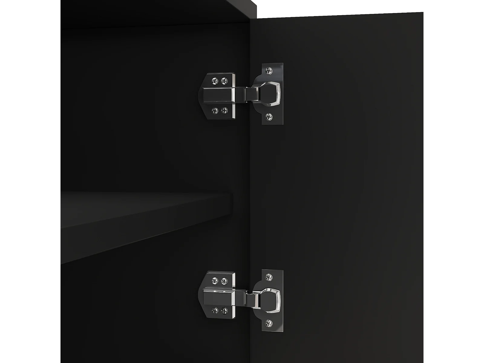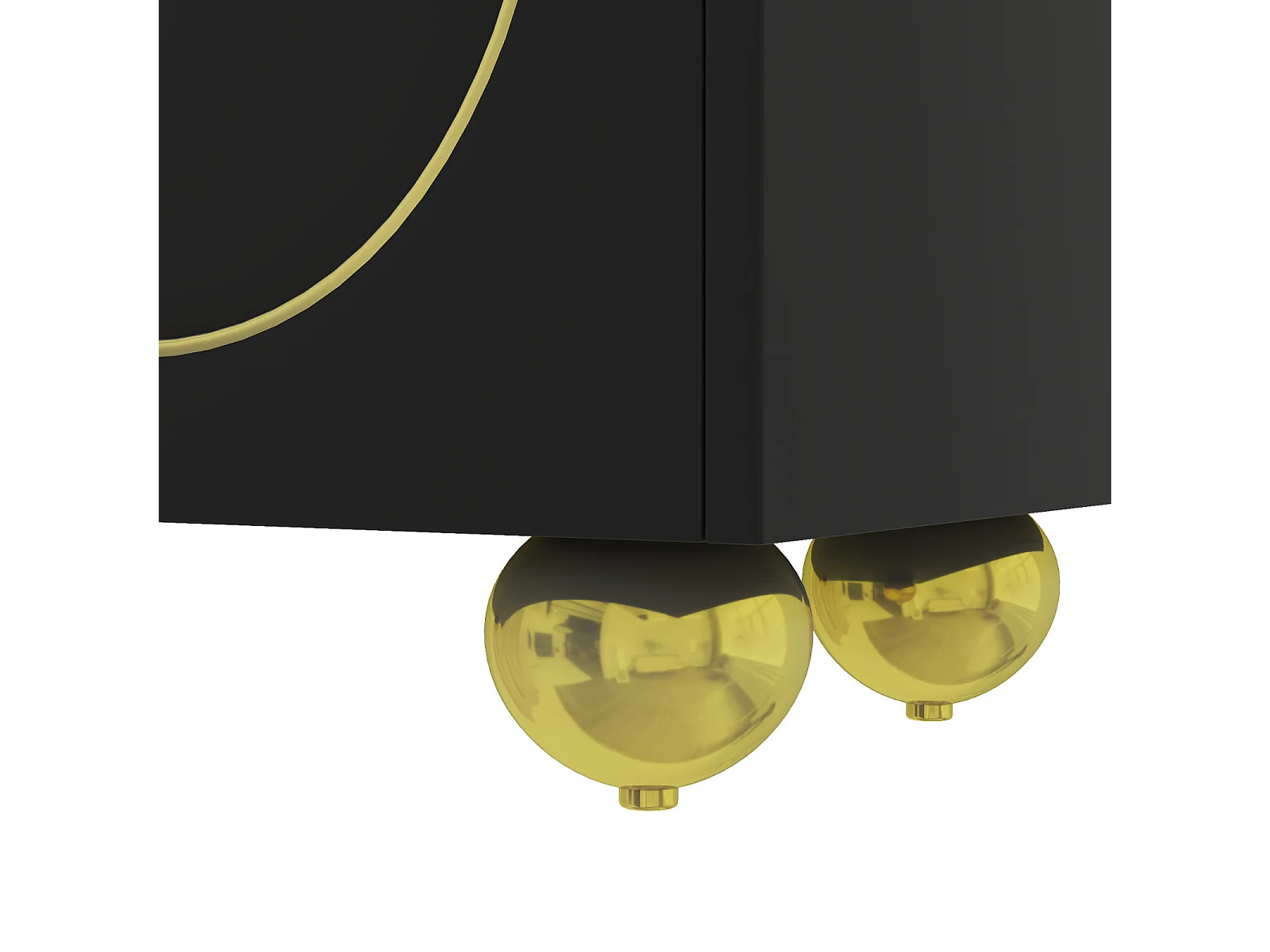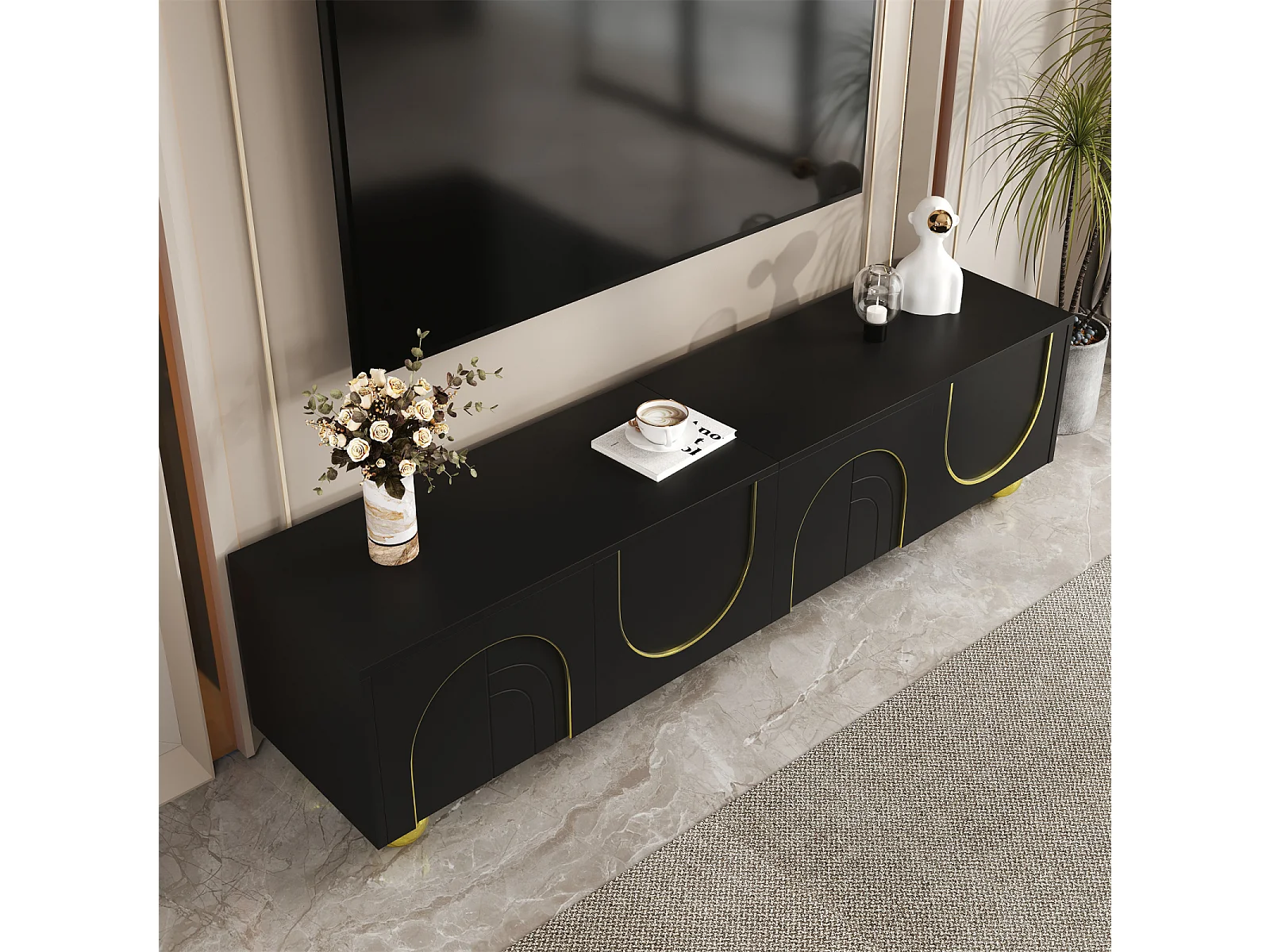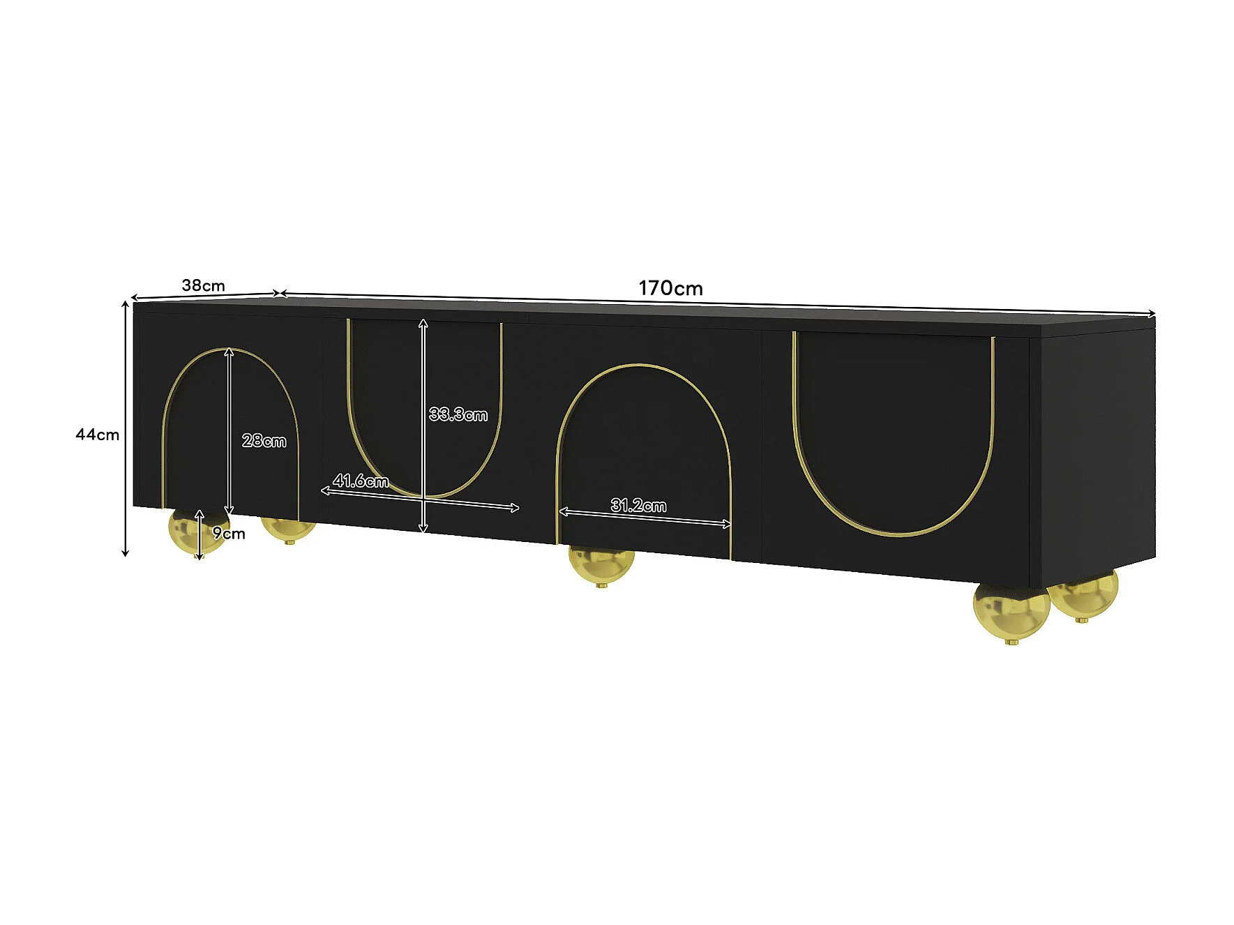 Meuble TV Moderne Noir avec Rangement, Meubles Bas avec 4 Portes et Pieds Ronds dorés, Noir+Gold