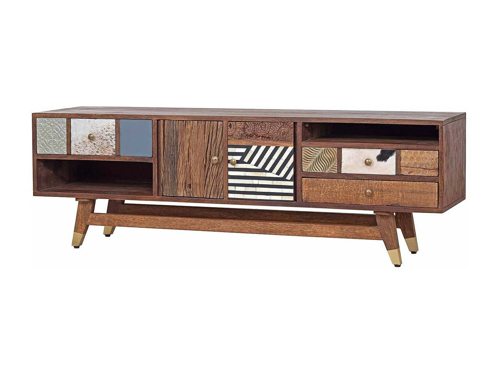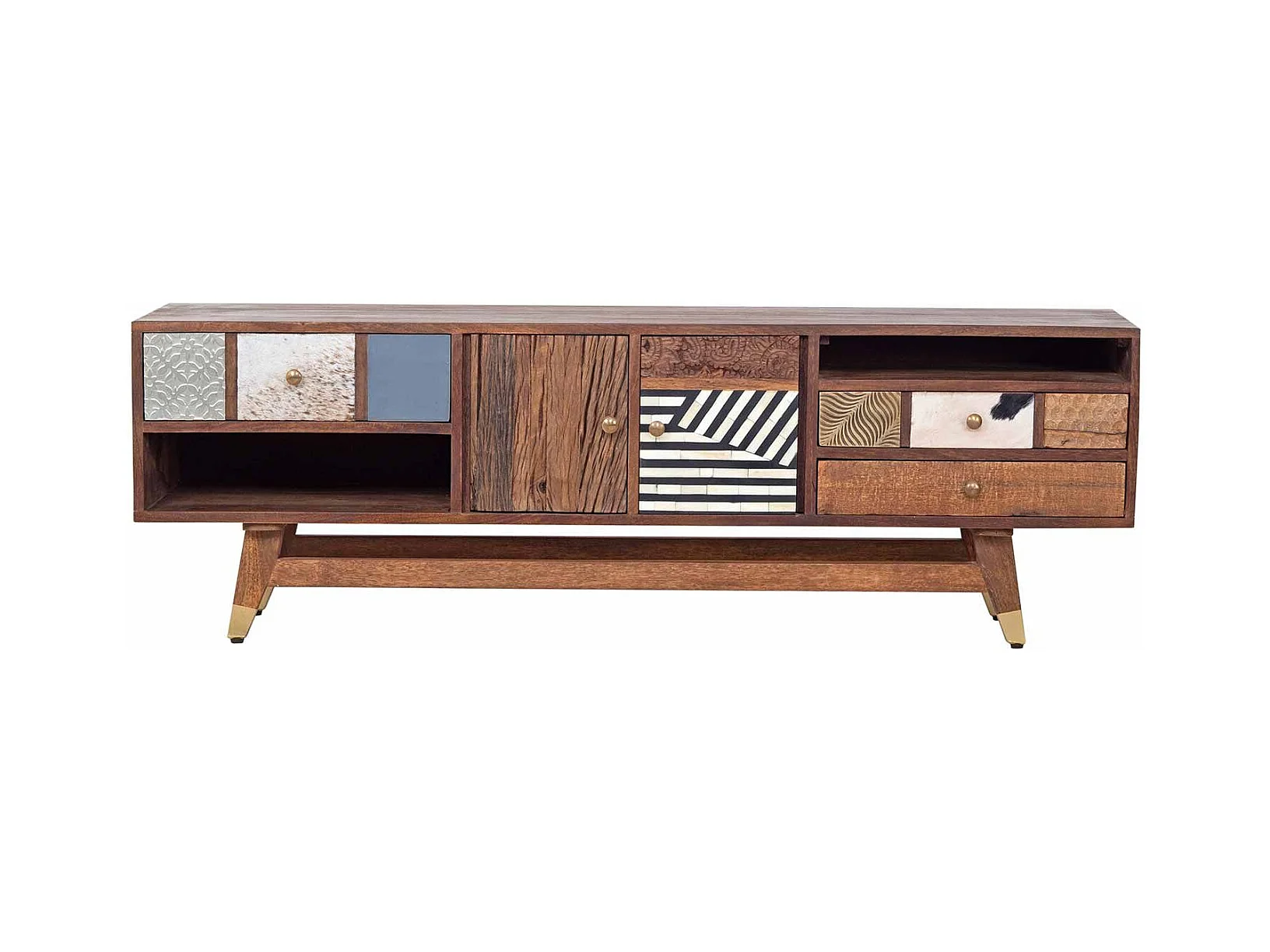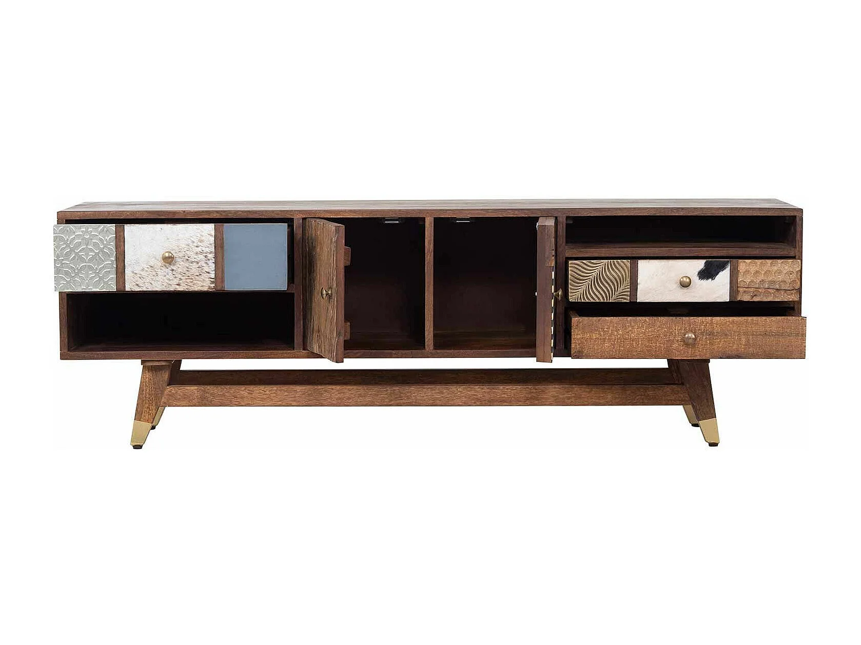 Meuble Tv multi-matériaux peau de vache bois sculpté | Manguier Terranova