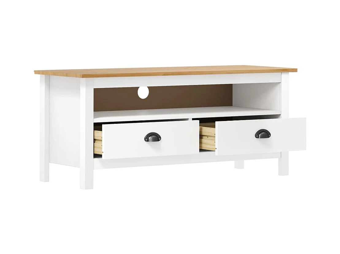 Meuble TV multimédia étagère bois blanc 110 x 40 x 47 cm 02_0027637